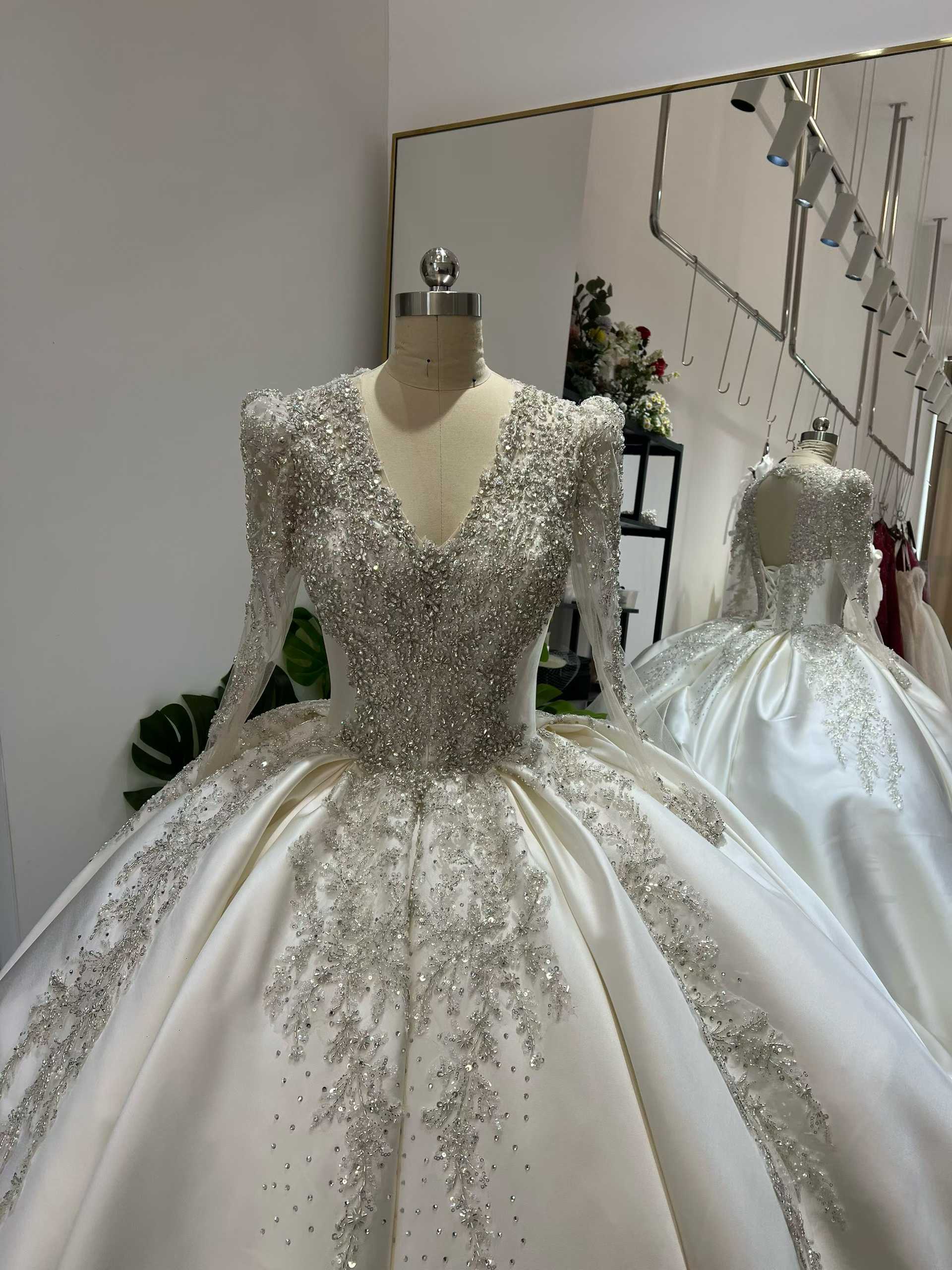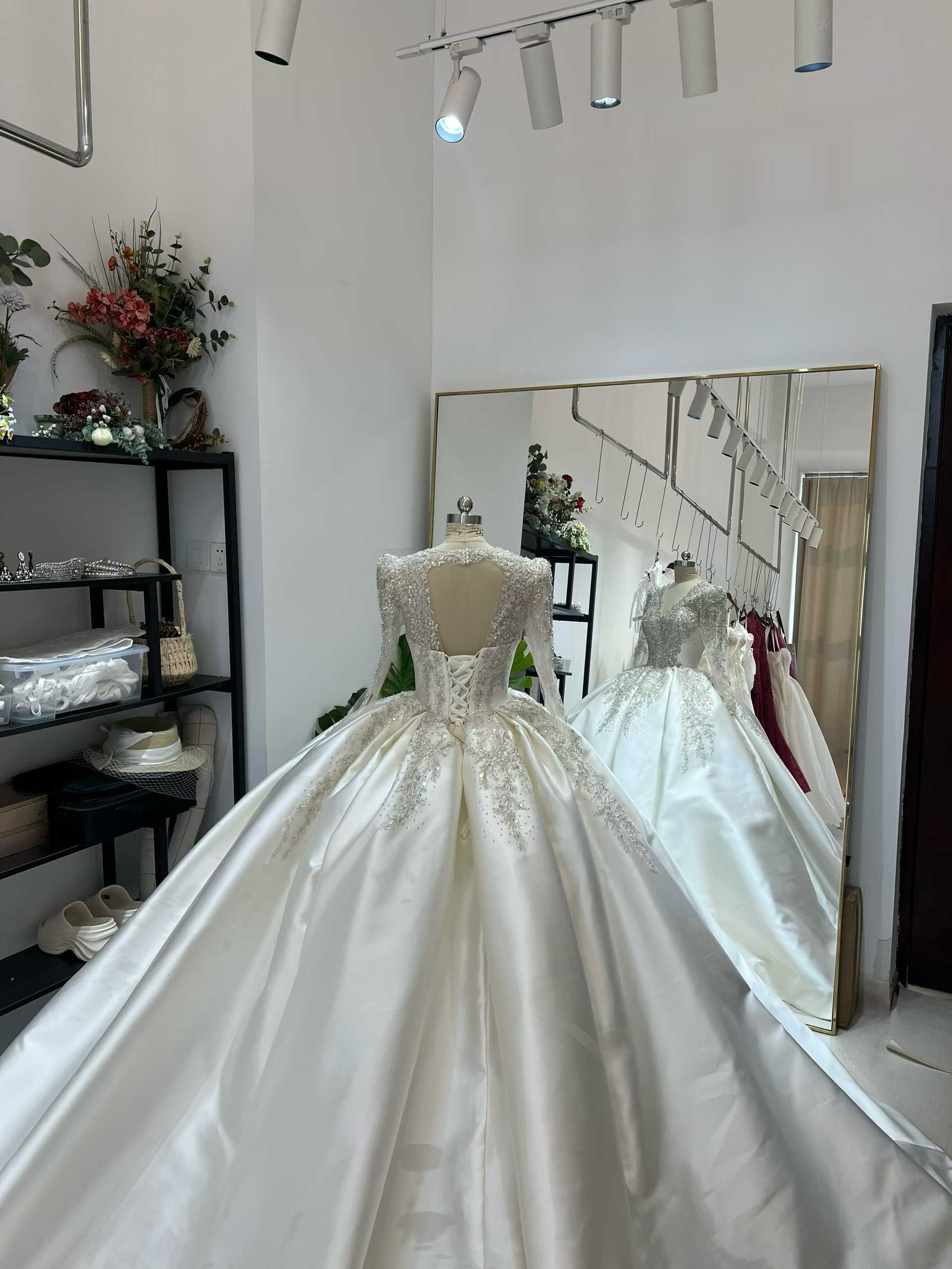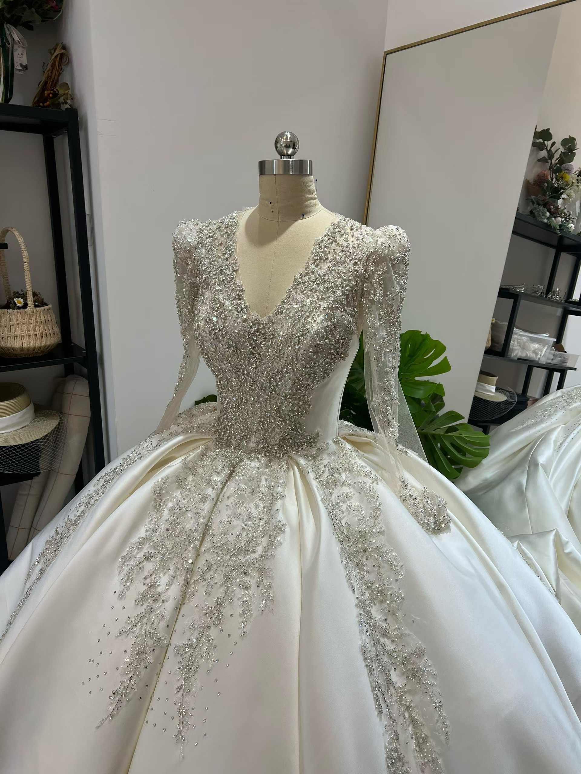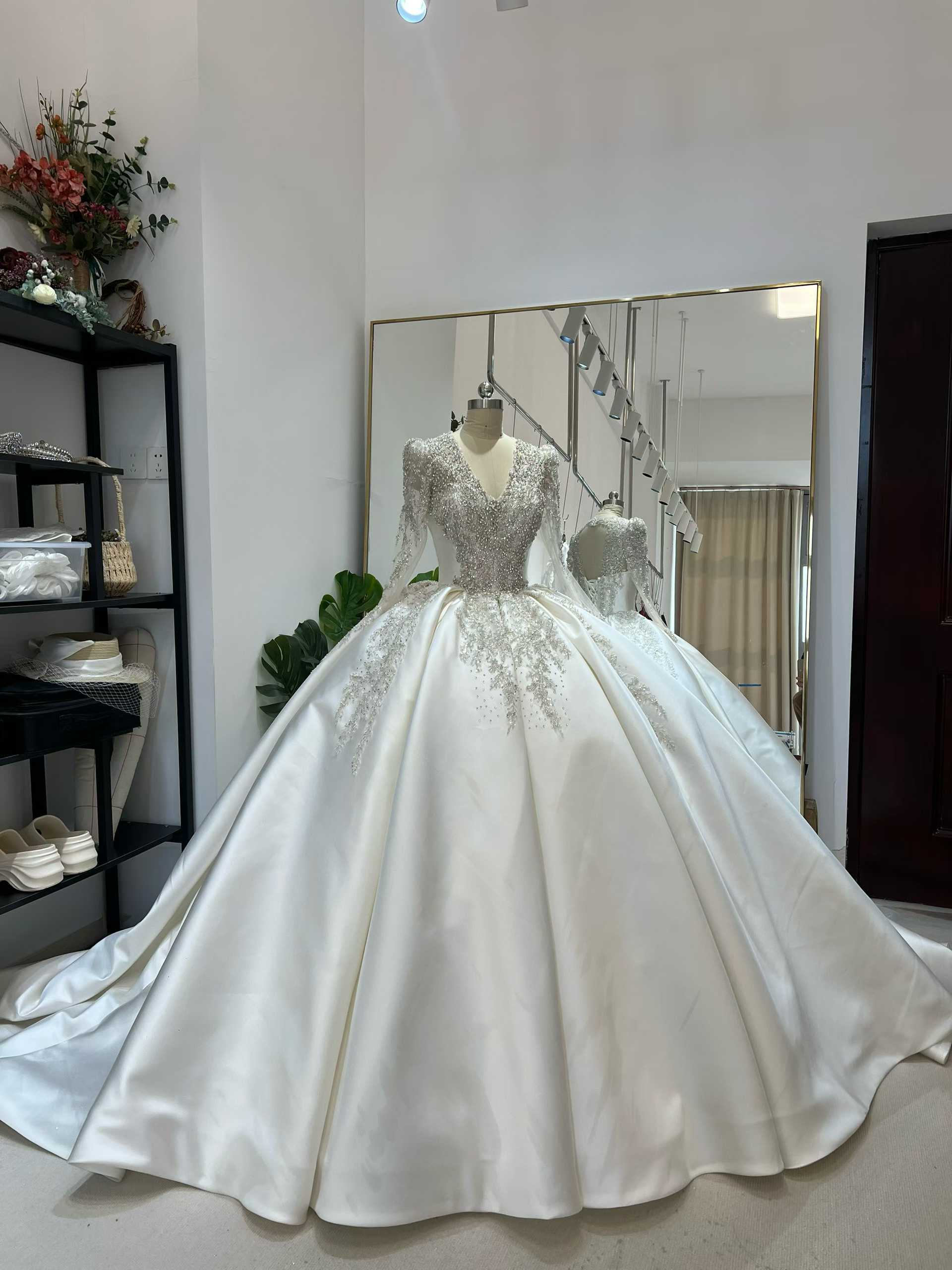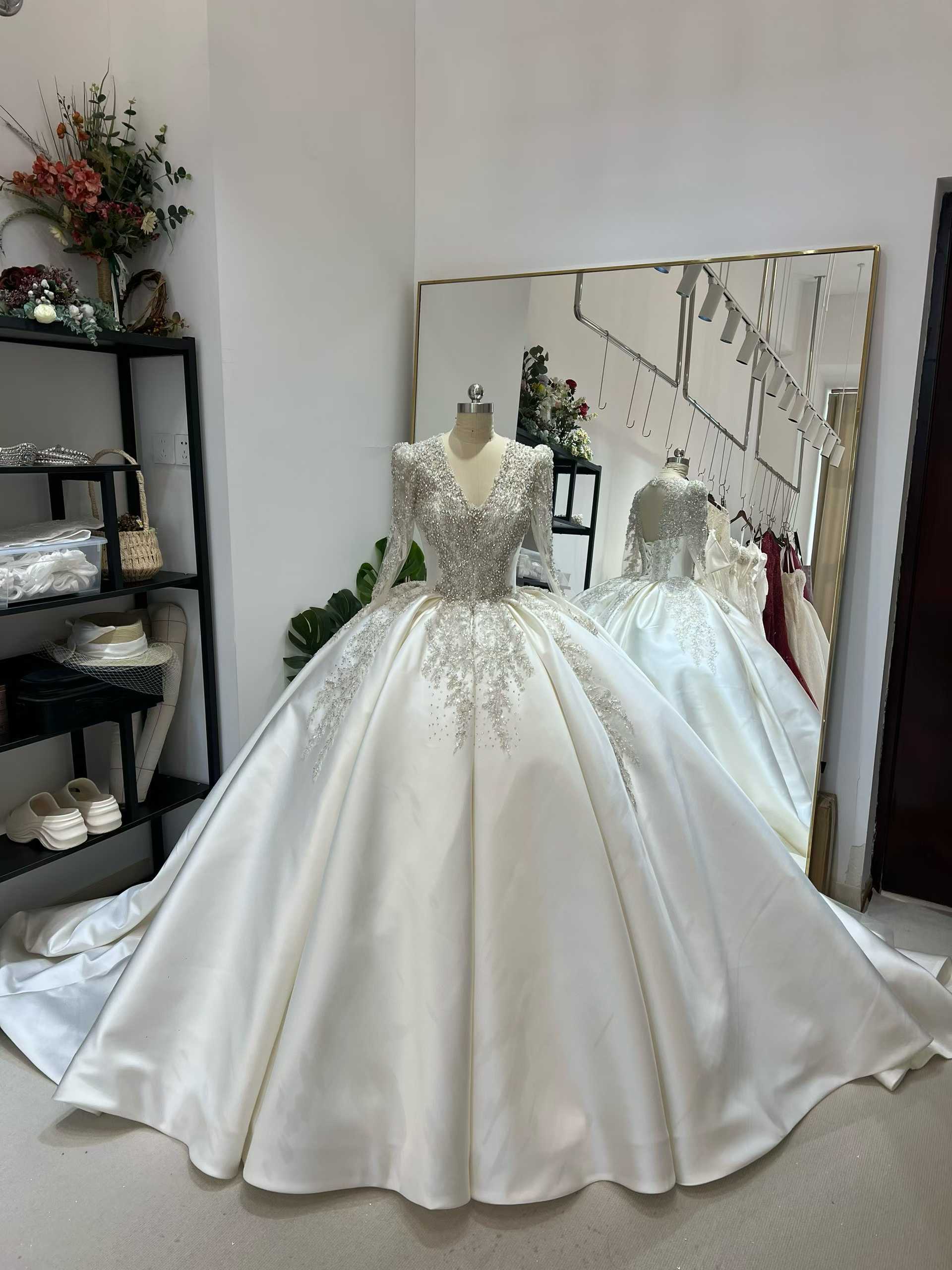 ウェディングドレス ビジュードレス 韓国風ドレス ロングスリーブ Vネックドレス 憧れのドレス 花嫁