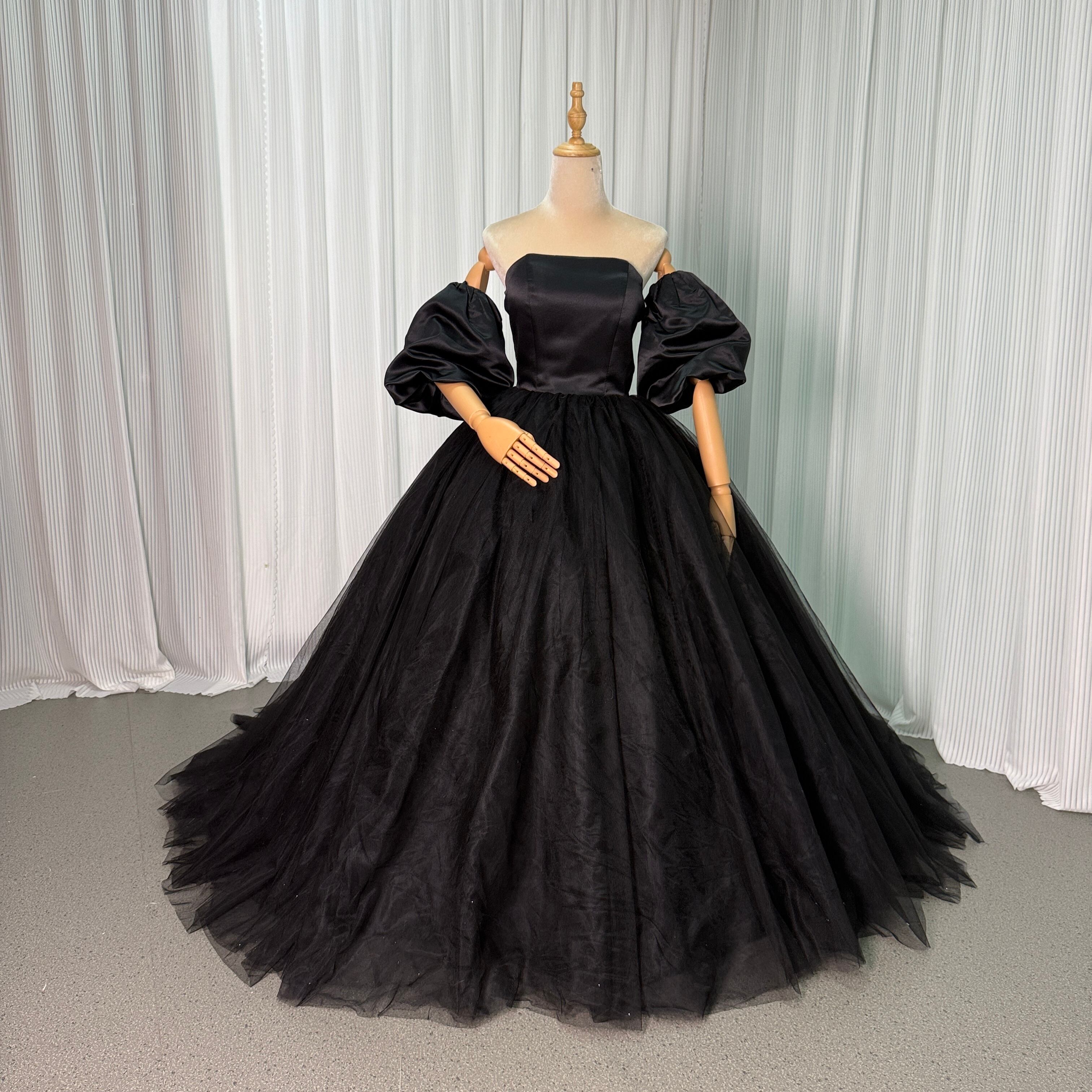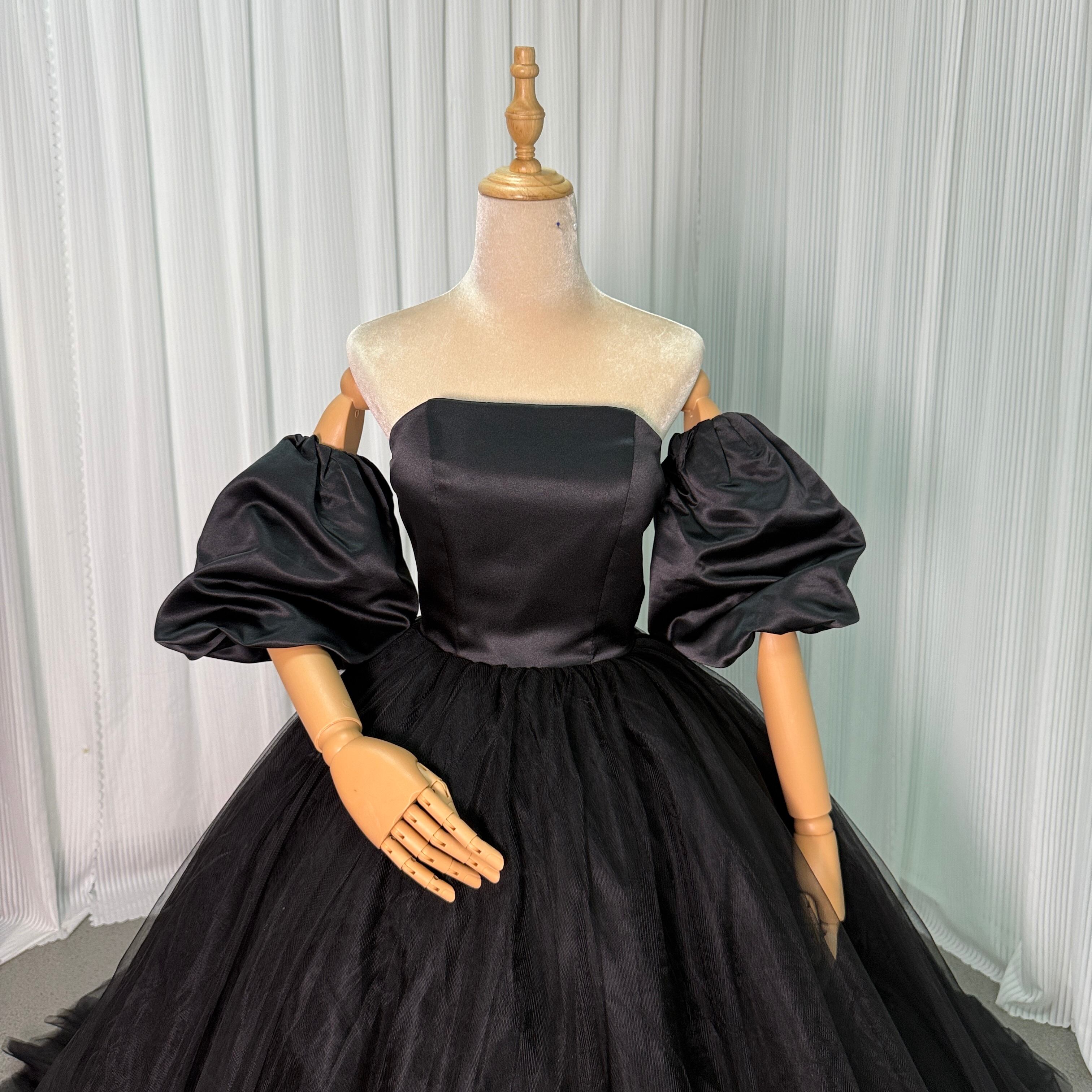 カラードレス パフスリーブ ブラック チュールスカート エレガント 前撮り