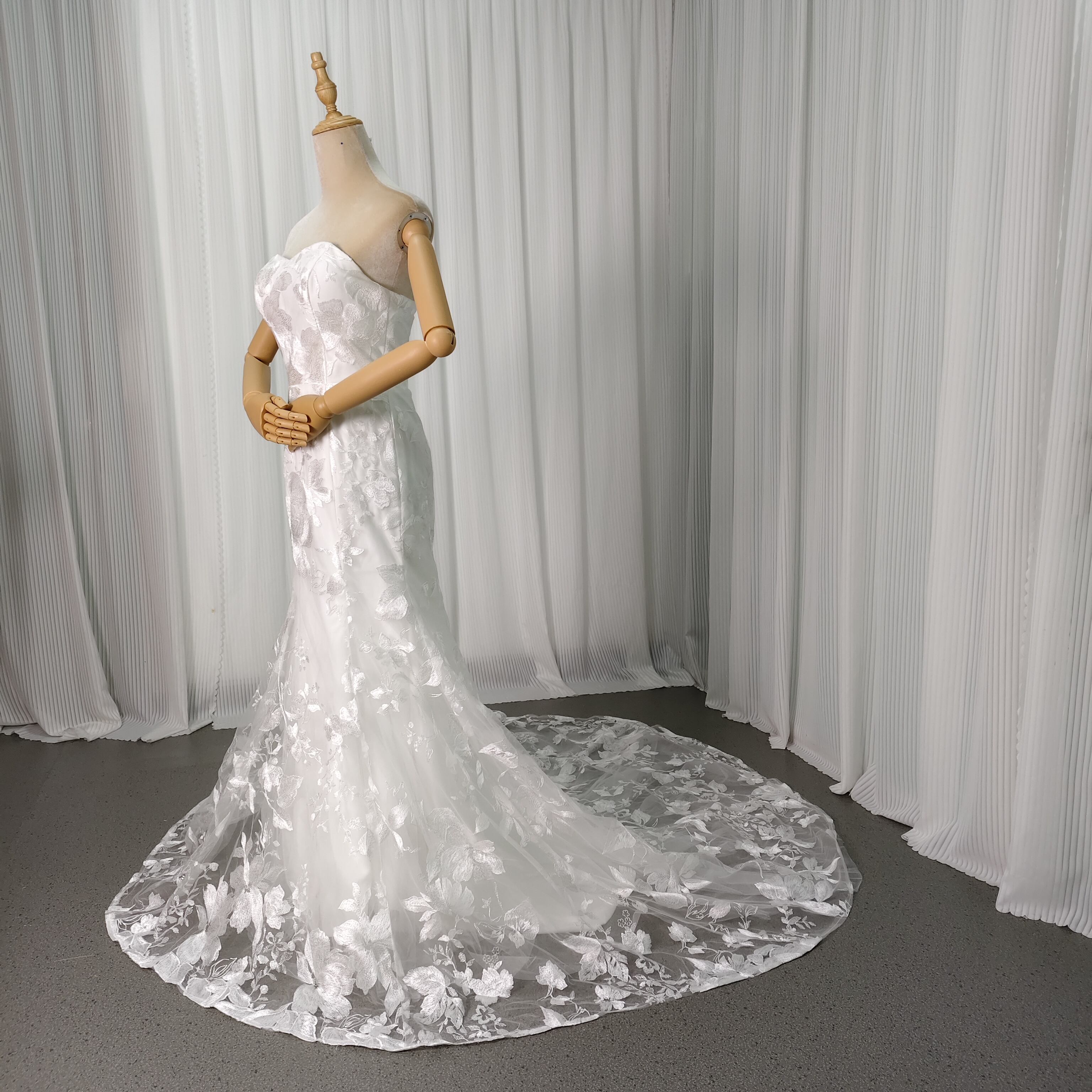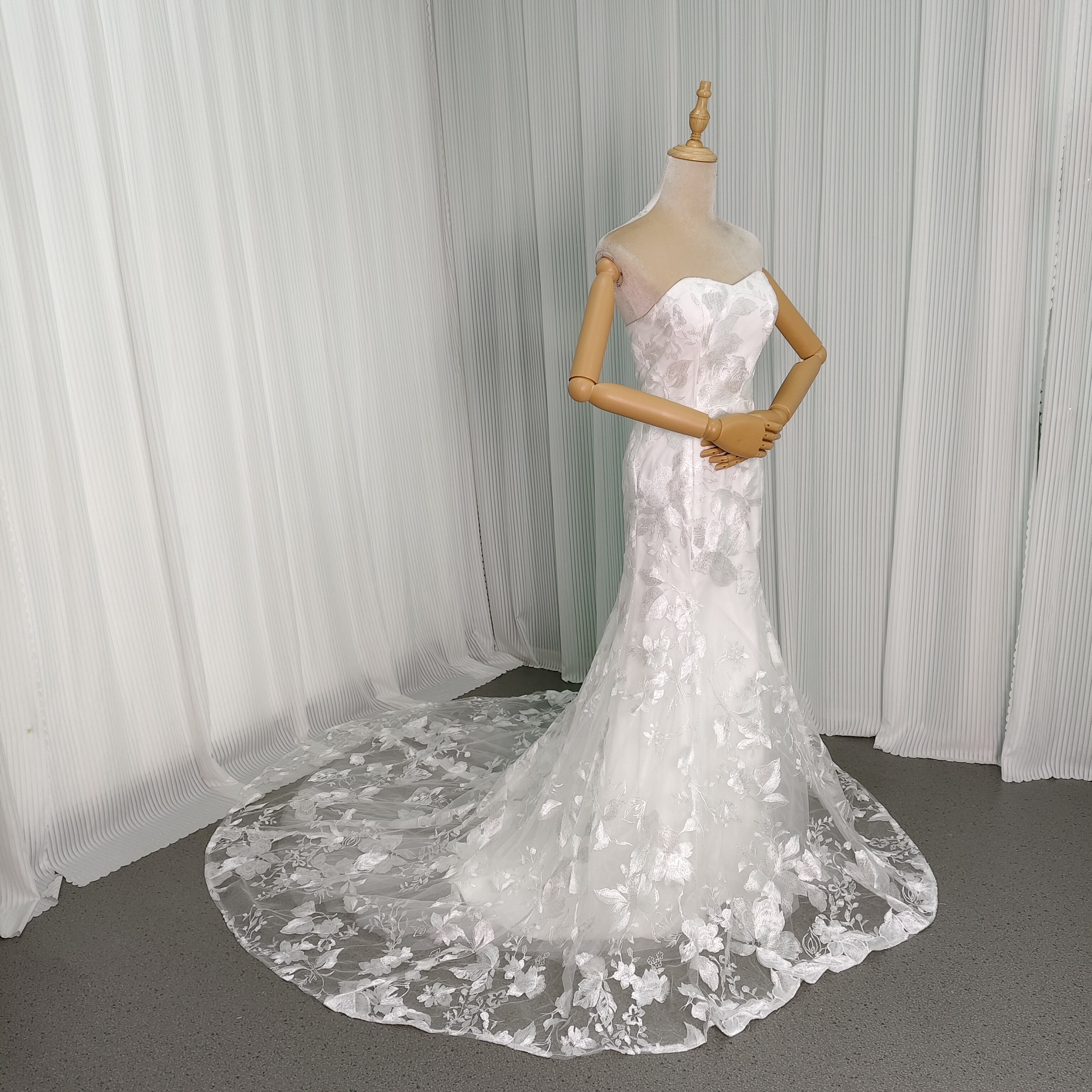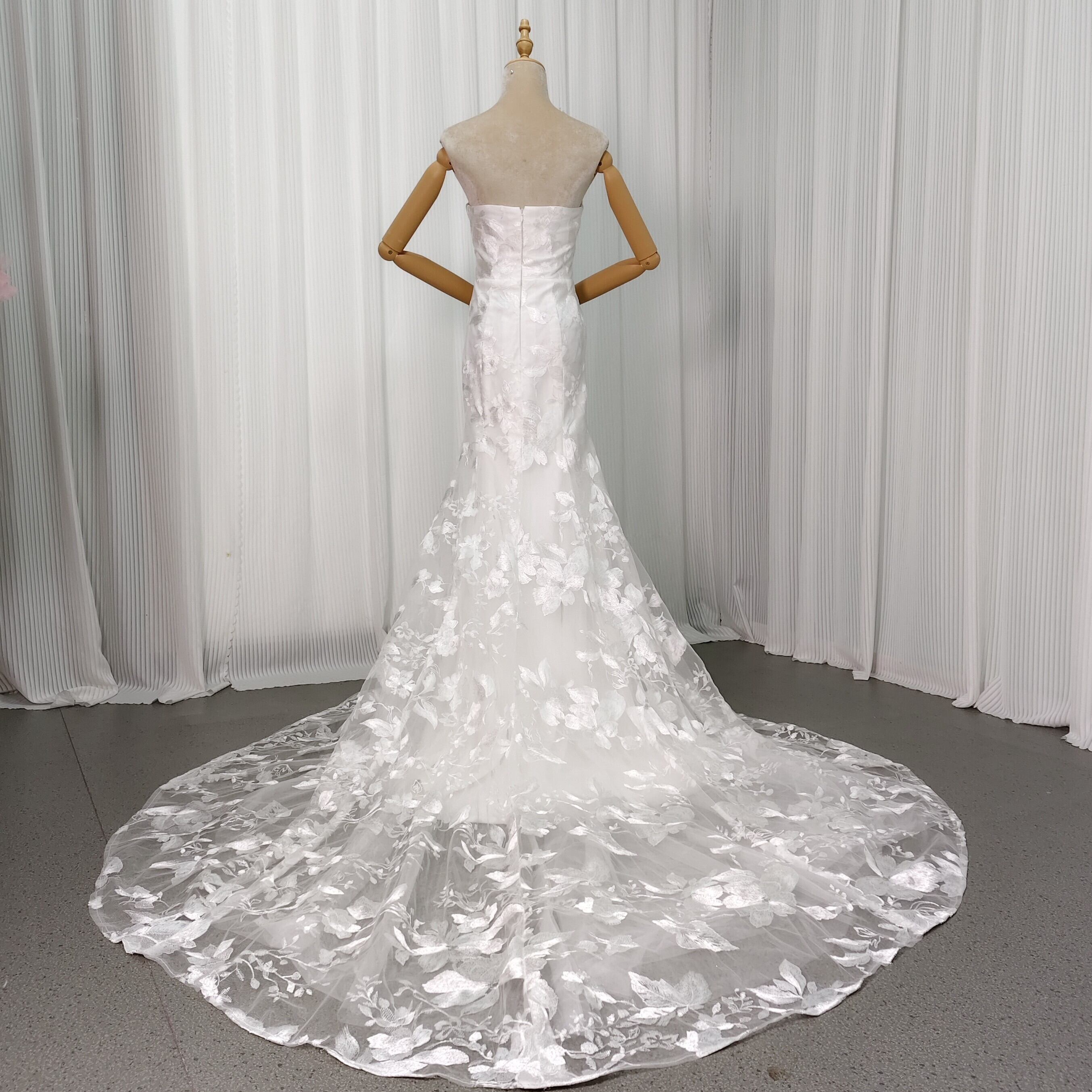 ウェディングドレス ビスチェドレス マーメイドライン 贅沢な小花柄の総レース ファスナー 優雅なシルエット