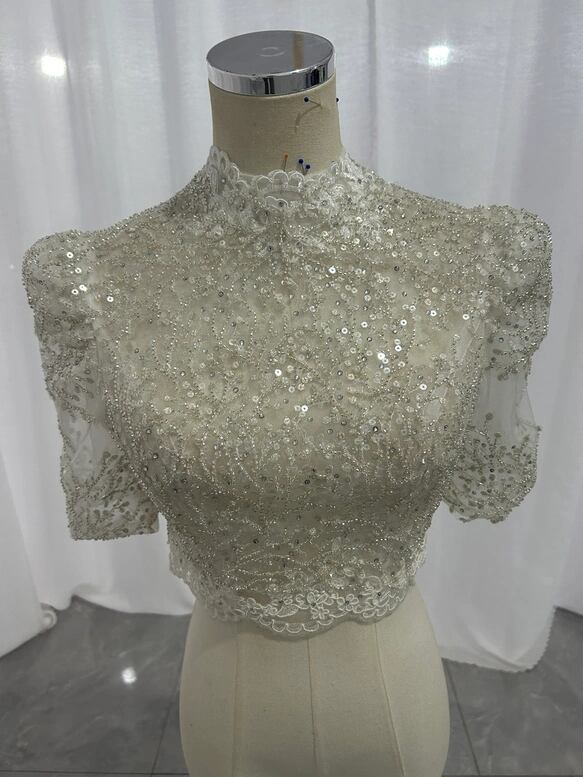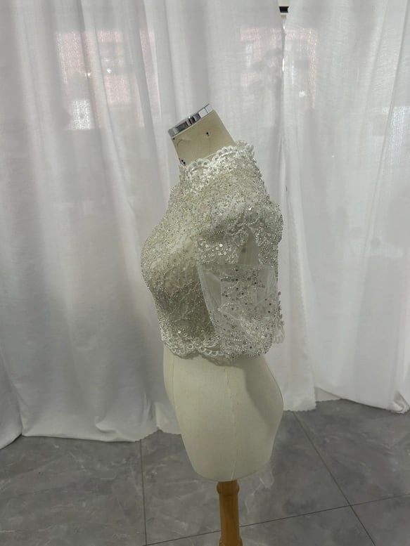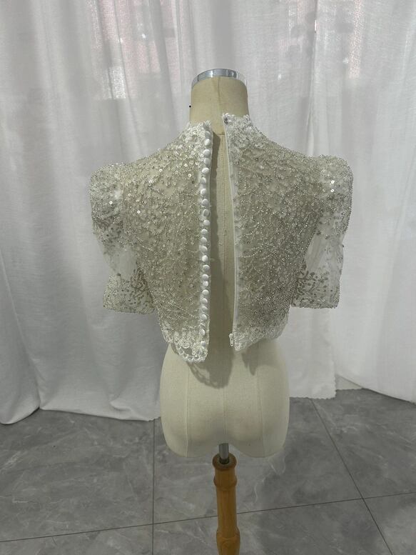 ボレロ 半袖 キラキラ光る刺繍 くるみボタン キラキラスパンコール 華やか 結婚式