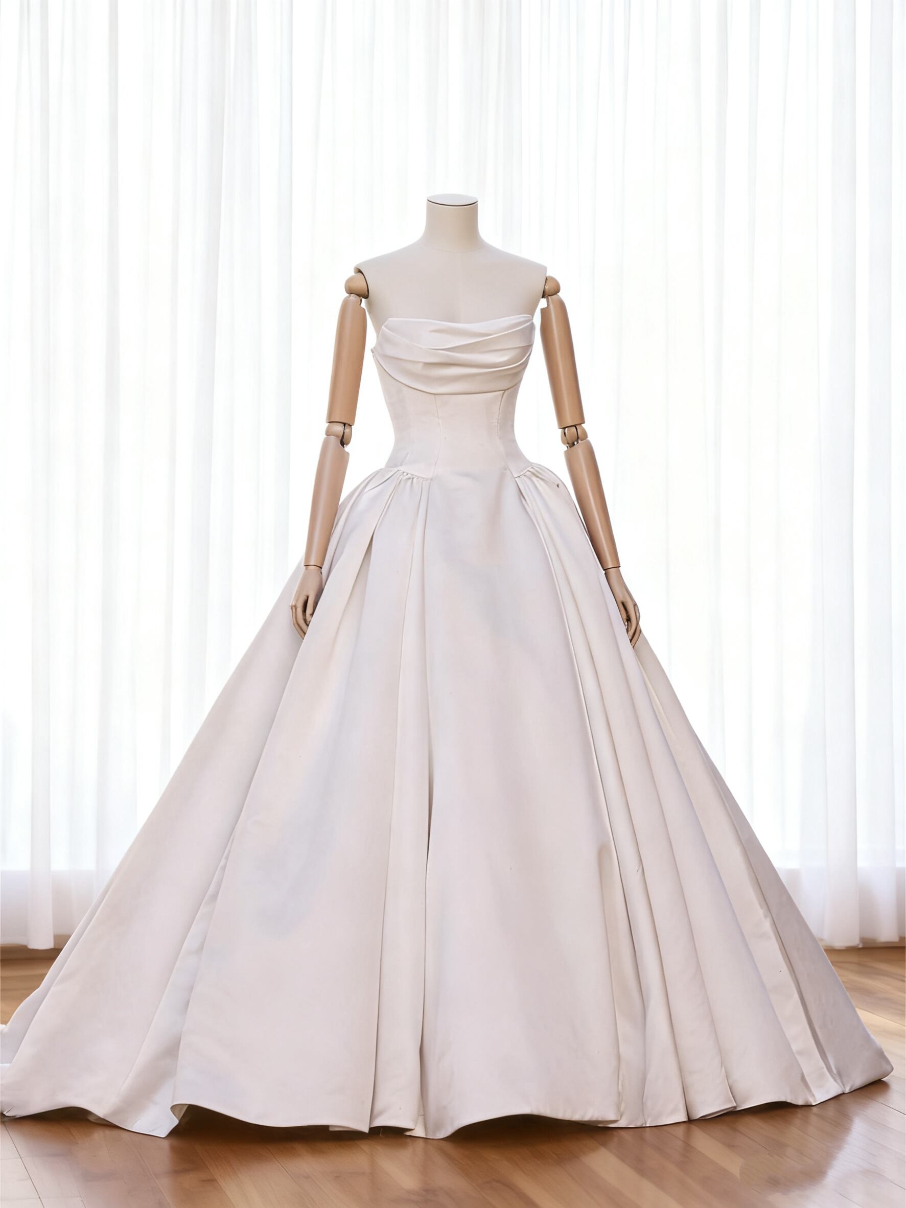 ウェディングドレス ビスチェドレス ハンドドレープ フレアスカート オフホワイト 細見えシルエット