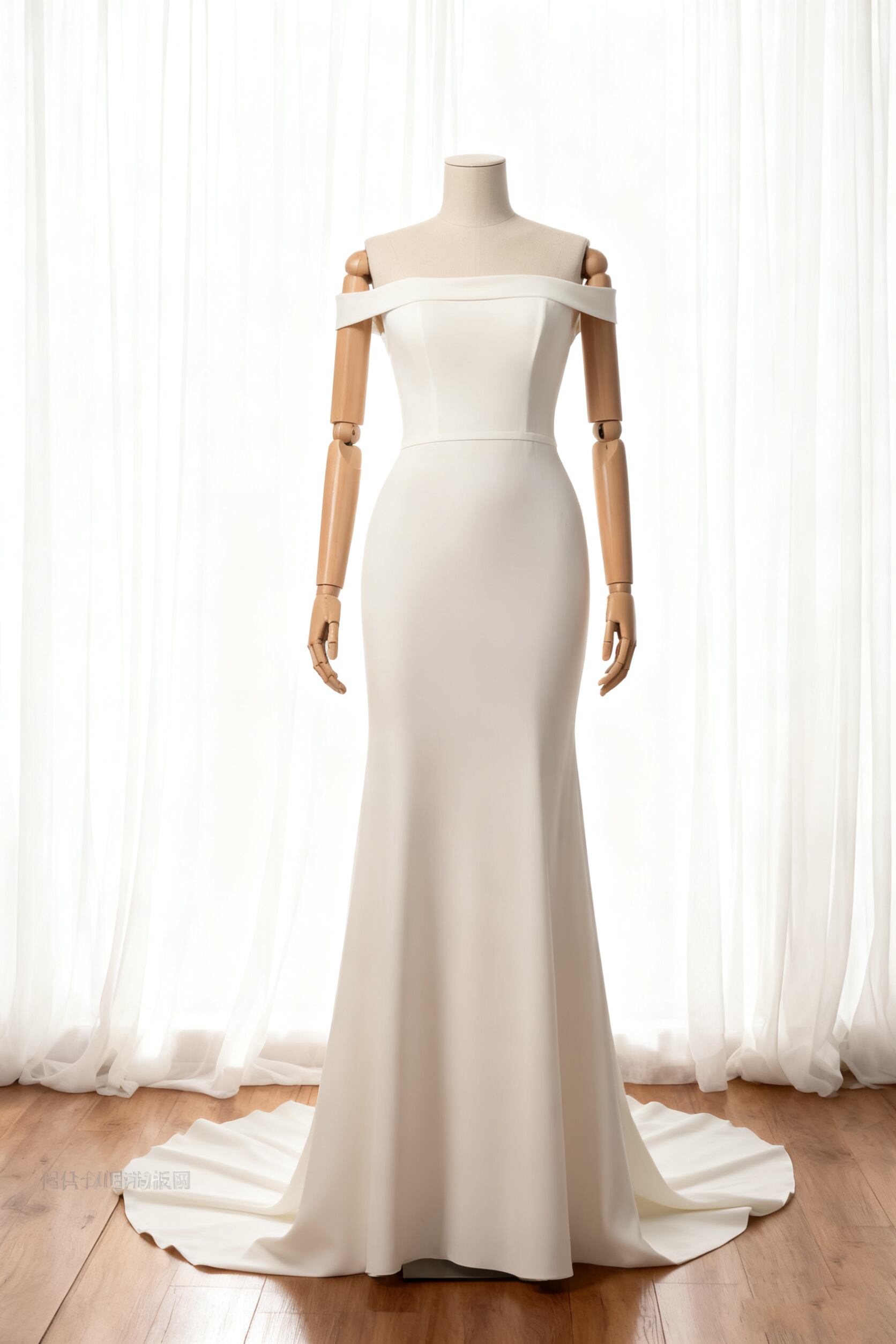 パーティードレス クレープ生地 マーメイドライン 細見えシルエット オフショルダー 前撮り 二次会
