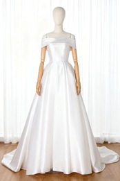 ウェディングドレス 光沢サテン ミカドサテン Aライン オフショルダー スレンダーライン ブライダル