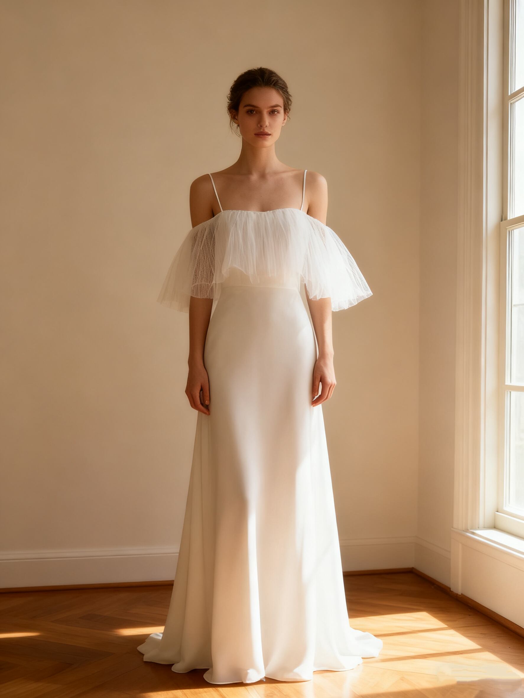 パーティードレス キャミソール オフショルダー ソフトマーメイドライン Aライン ミニマリズム 前撮り
