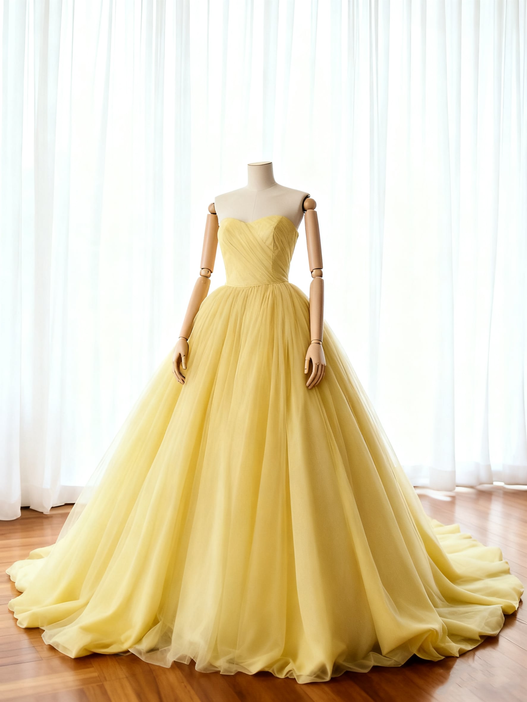 カラードレス イエロー プリンセスライン ビスチェドレス 抜群におしゃれ度が際立つ フレアスカート