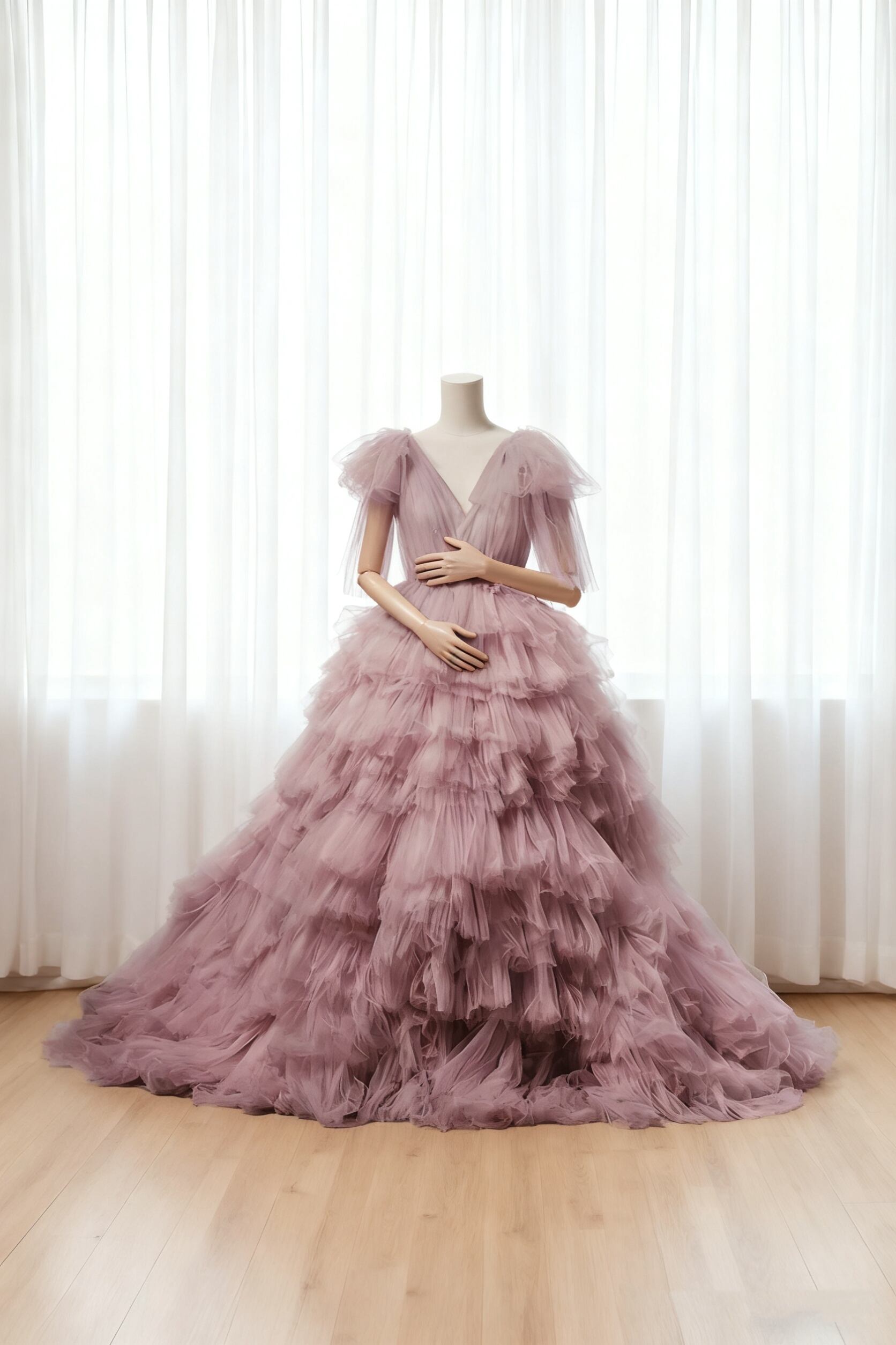 カラードレス Vネックドレス キャミソール パープル もこもこドレス ブライダル プリンセスライン 花嫁