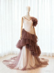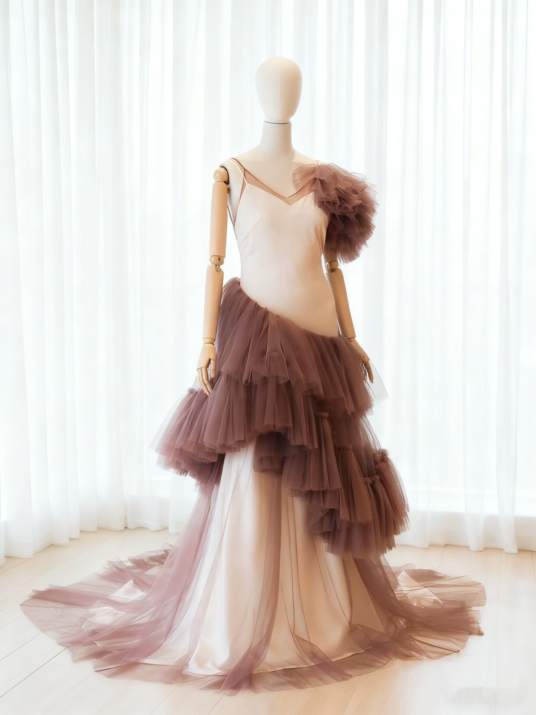 パーティードレス ツーピース アシンメトリードレス キャミソール 結婚式/披露宴 前撮り 抜群におしゃれ度が際立つ ブラウン