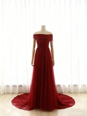 カラードレス えんじ色 オフショルダー チュールスカート アンティークなドレス 前撮り 二次会