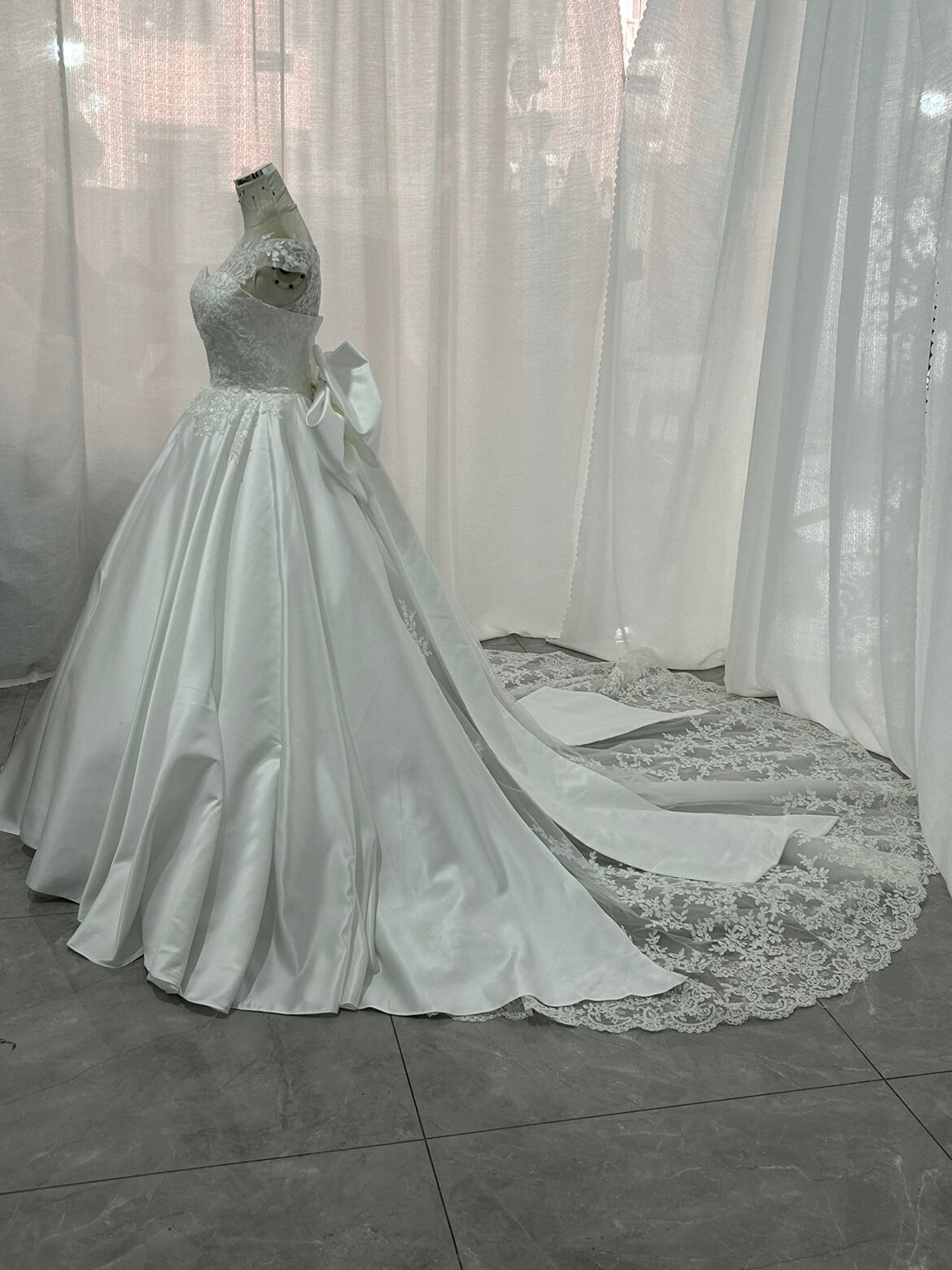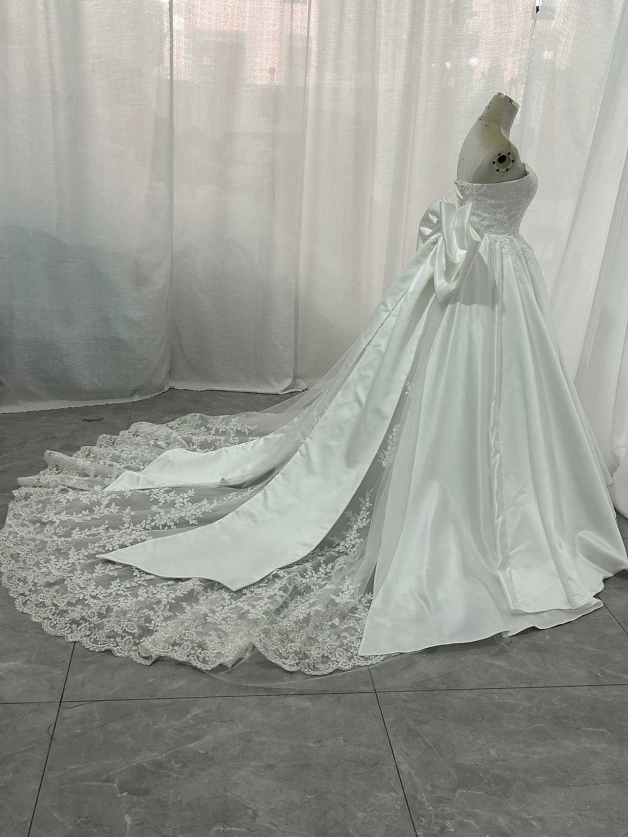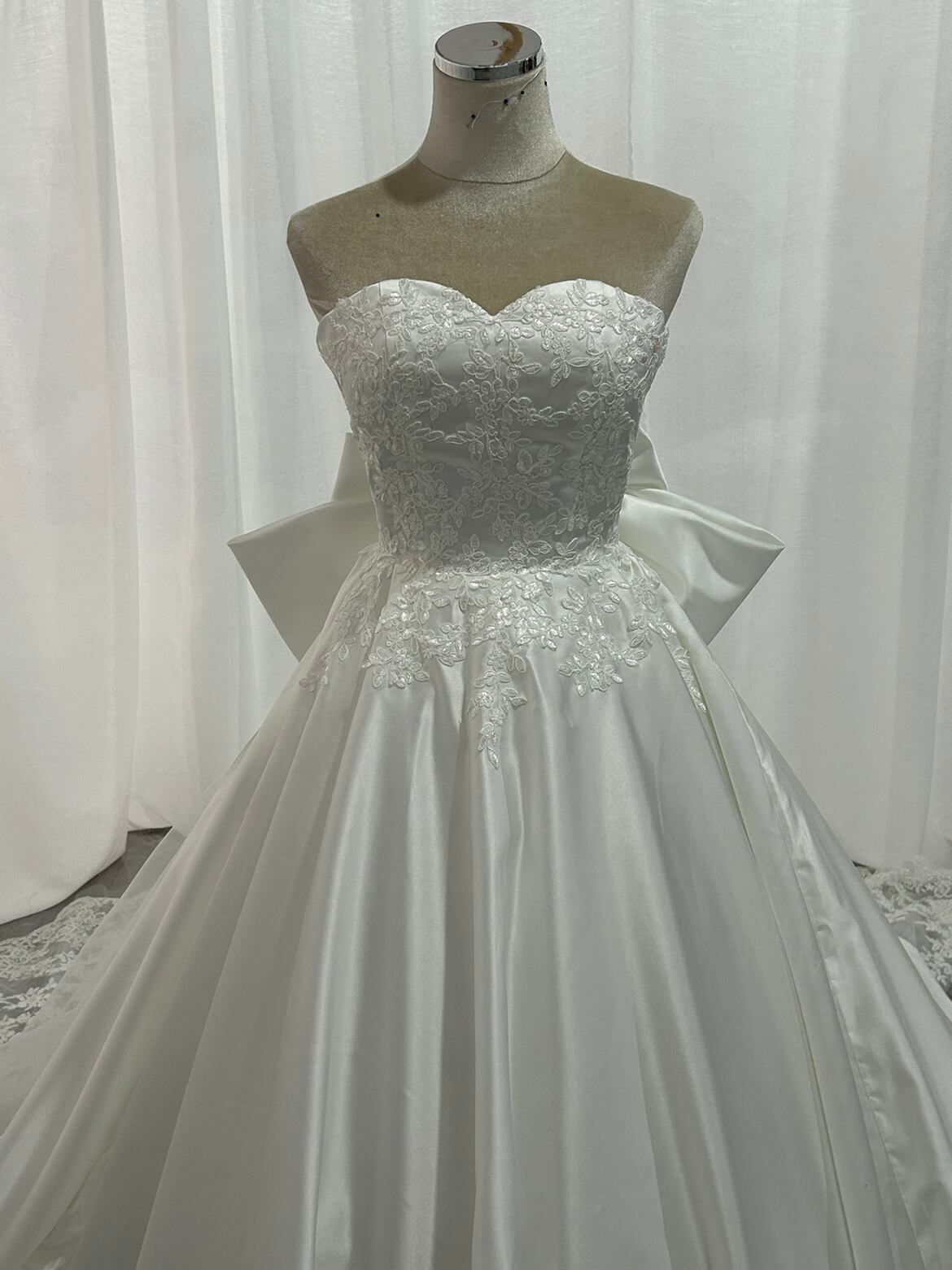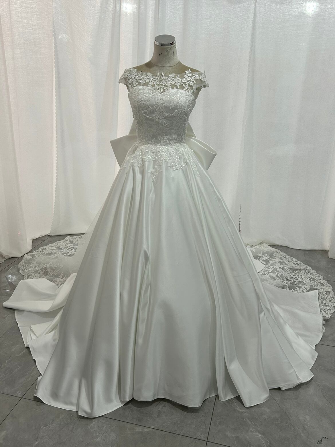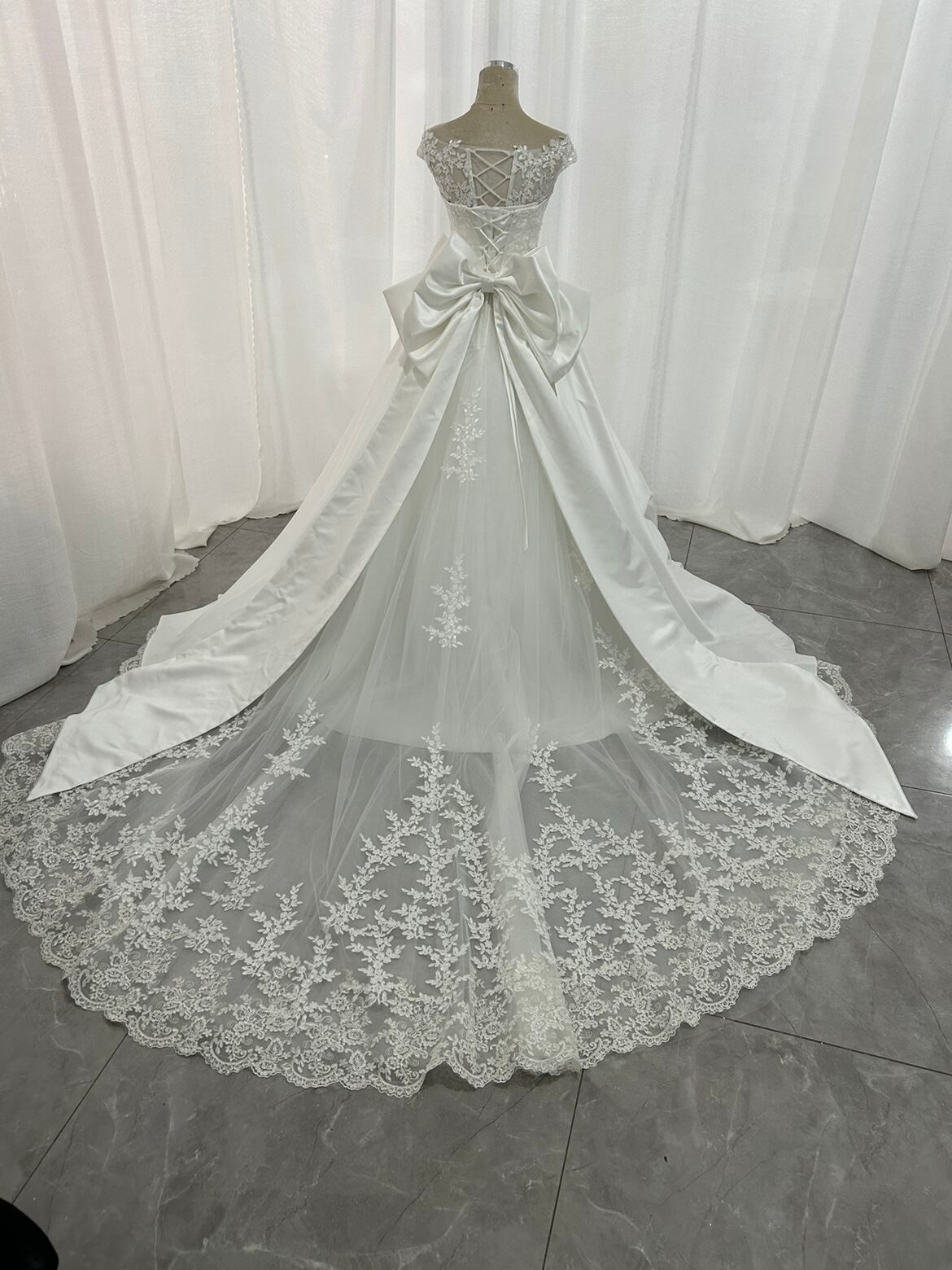 ウェディングドレス ボレロ 2ways ふっくら柔らかなバックリボン 華やかなトレーン 繊細なレース エレガント