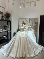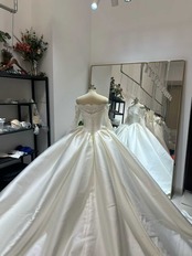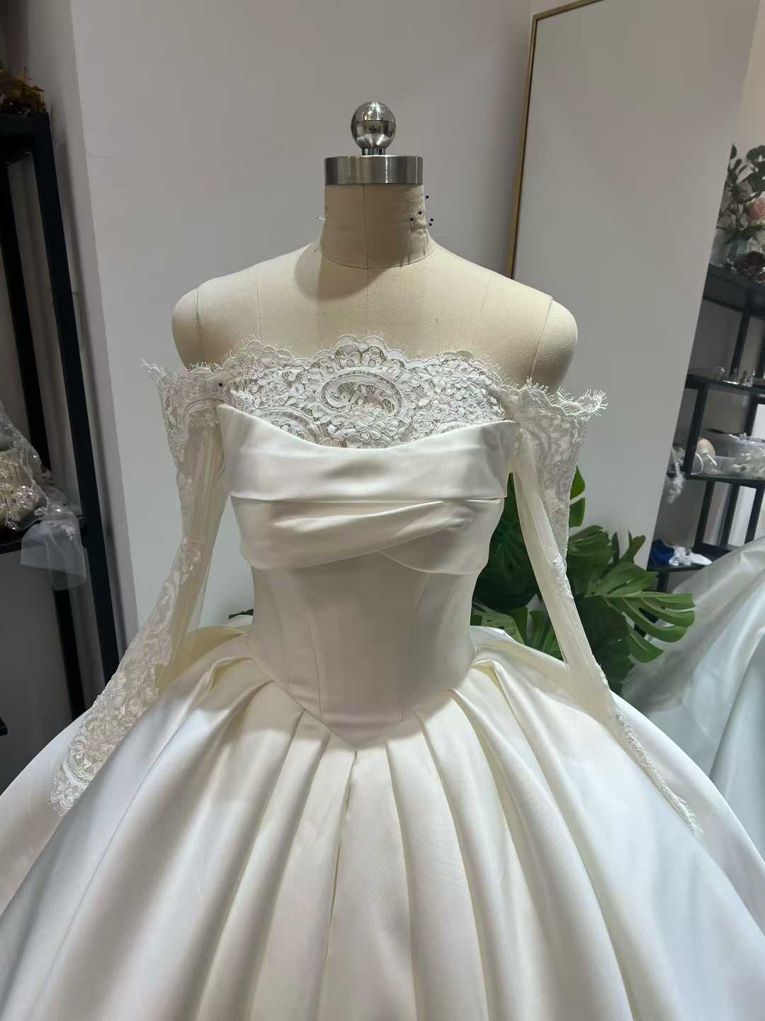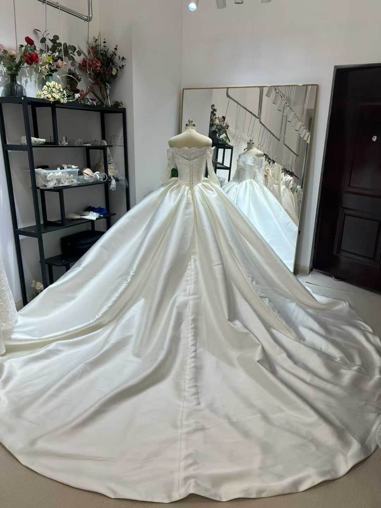 ウエディングドレス ボレロ フレアスカート ミカドサテン 韓国風ドレス ロングスリーブ 花嫁