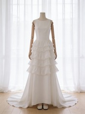パーティードレス ノースリーブ ラウンドネック ラッフルフリル 結婚式/披露宴 プリンセスライン