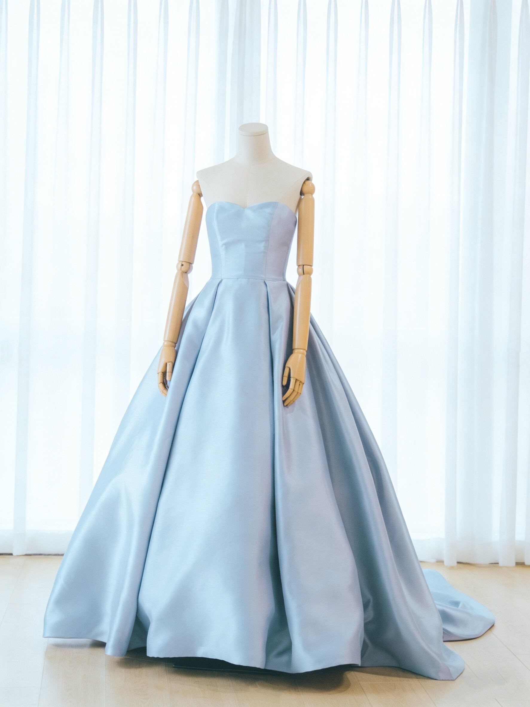 パーティードレス 爽やかで優しいブルー ベアトップ スレンダーライン Aライン 前撮り 花嫁
