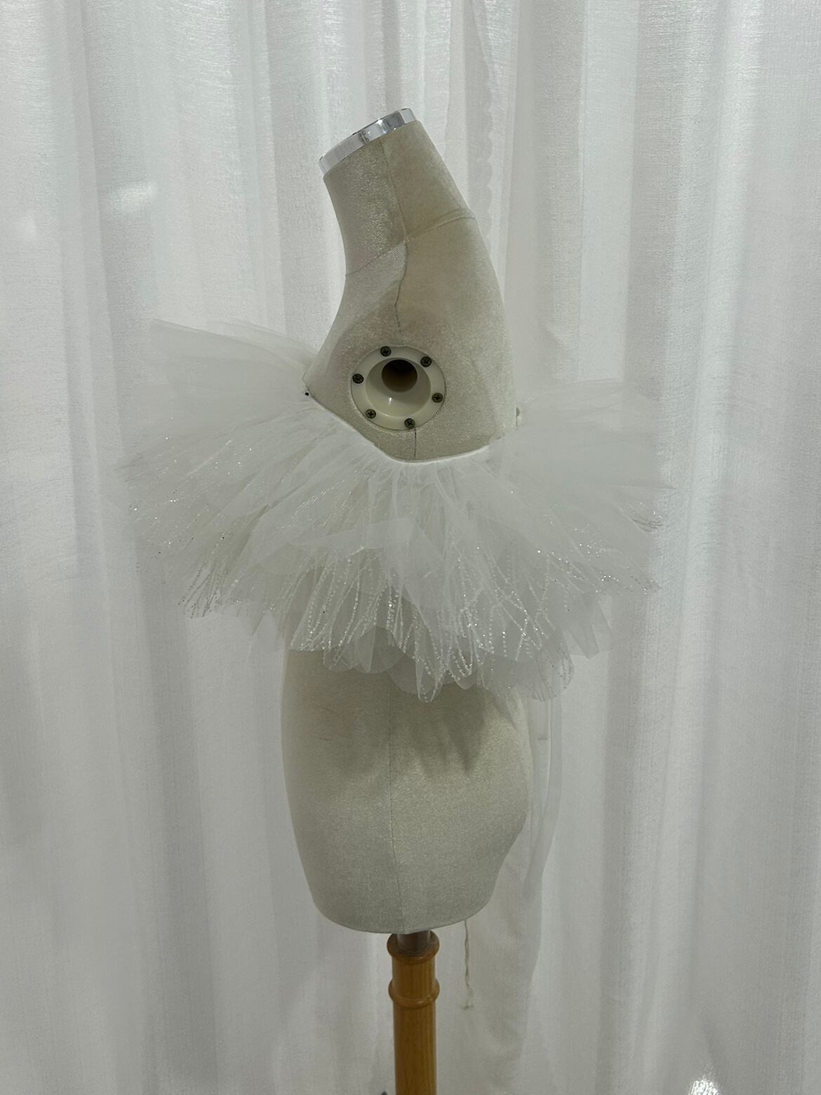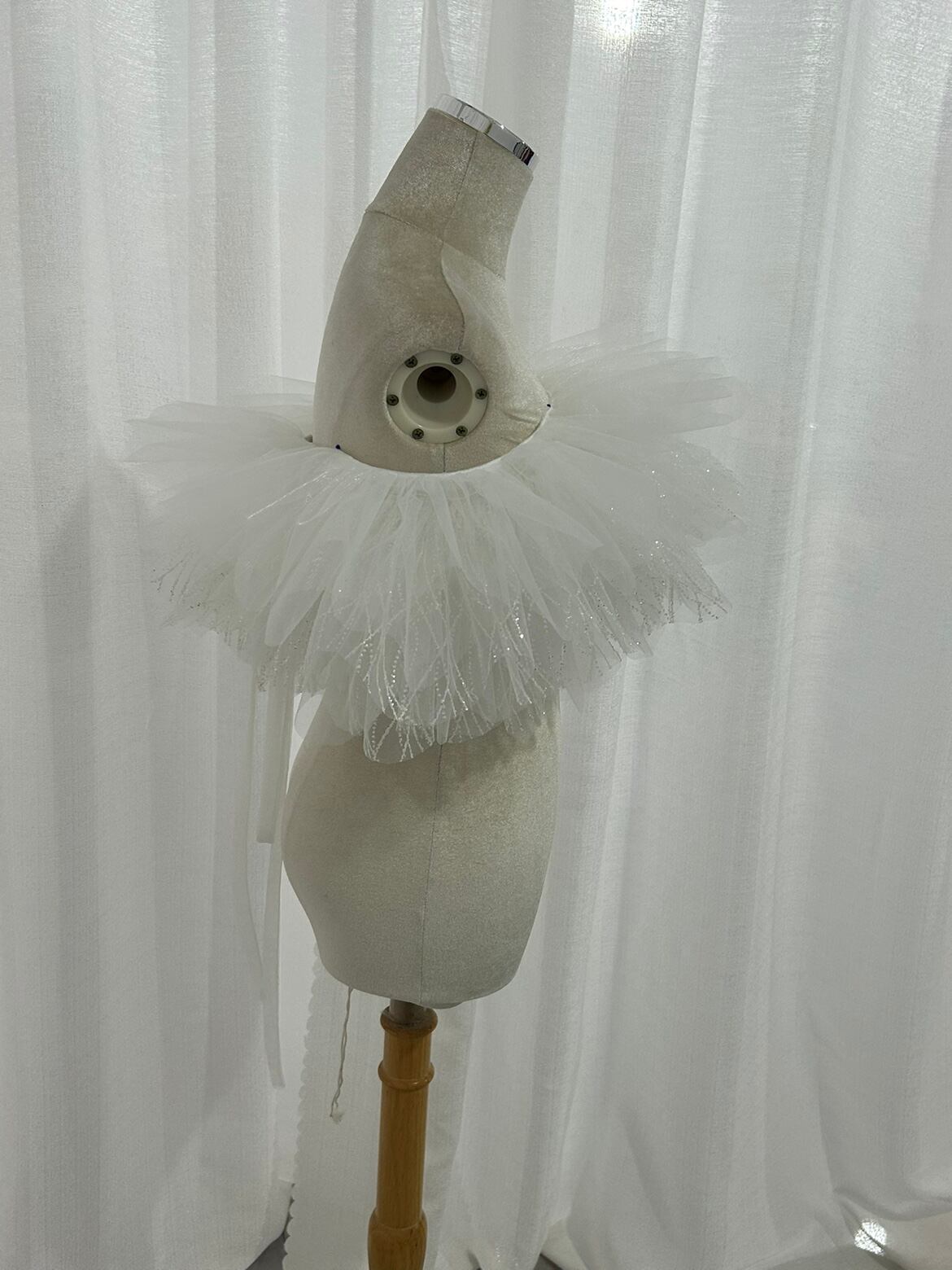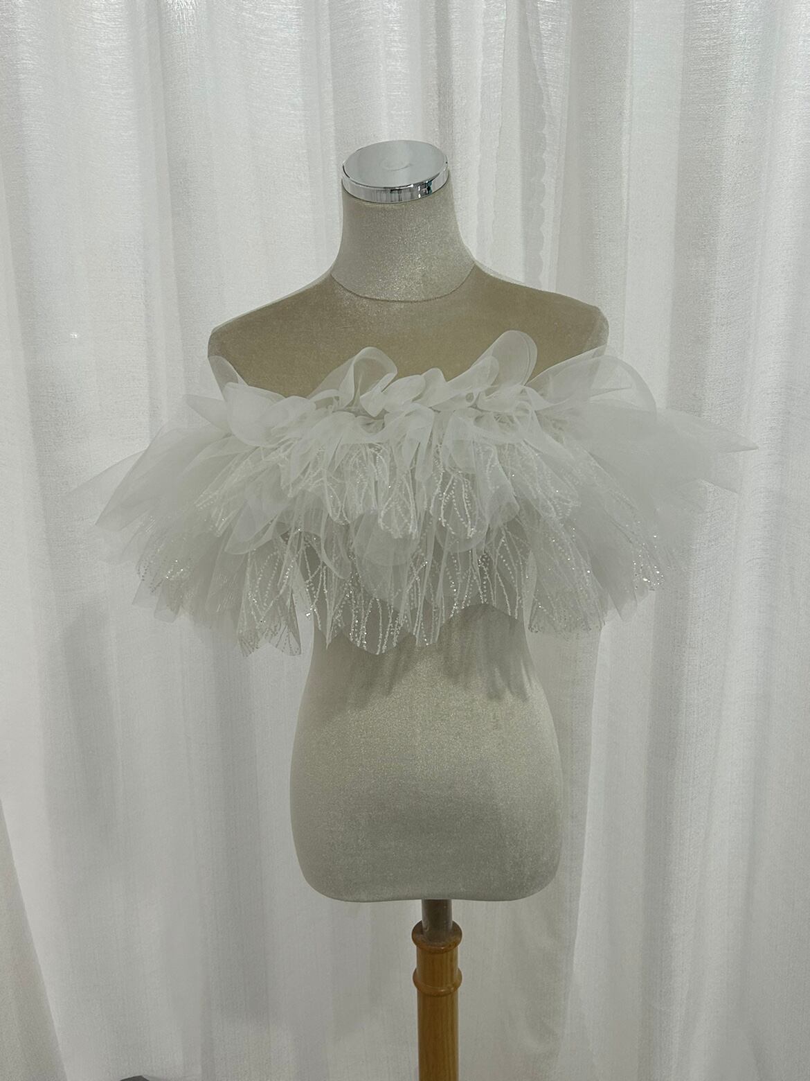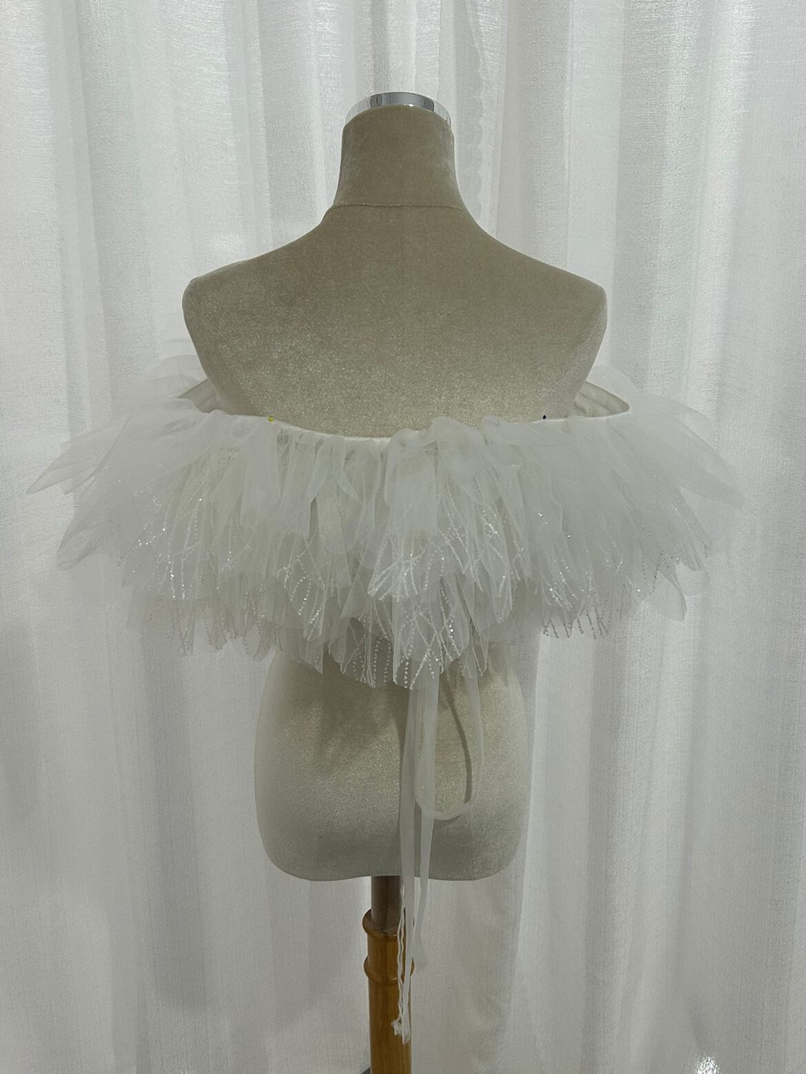取り外し可能なオフショルダー オフホワイト 可愛い キラキラグリッターチュール 結婚式 ふわふわ