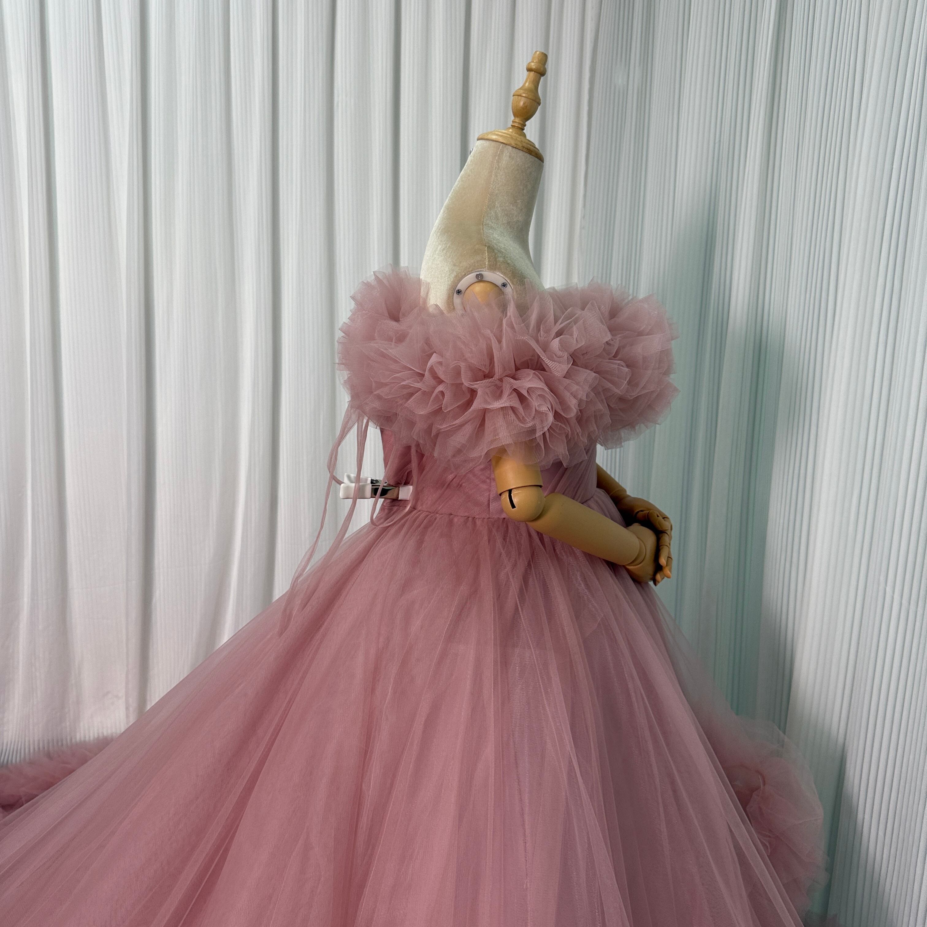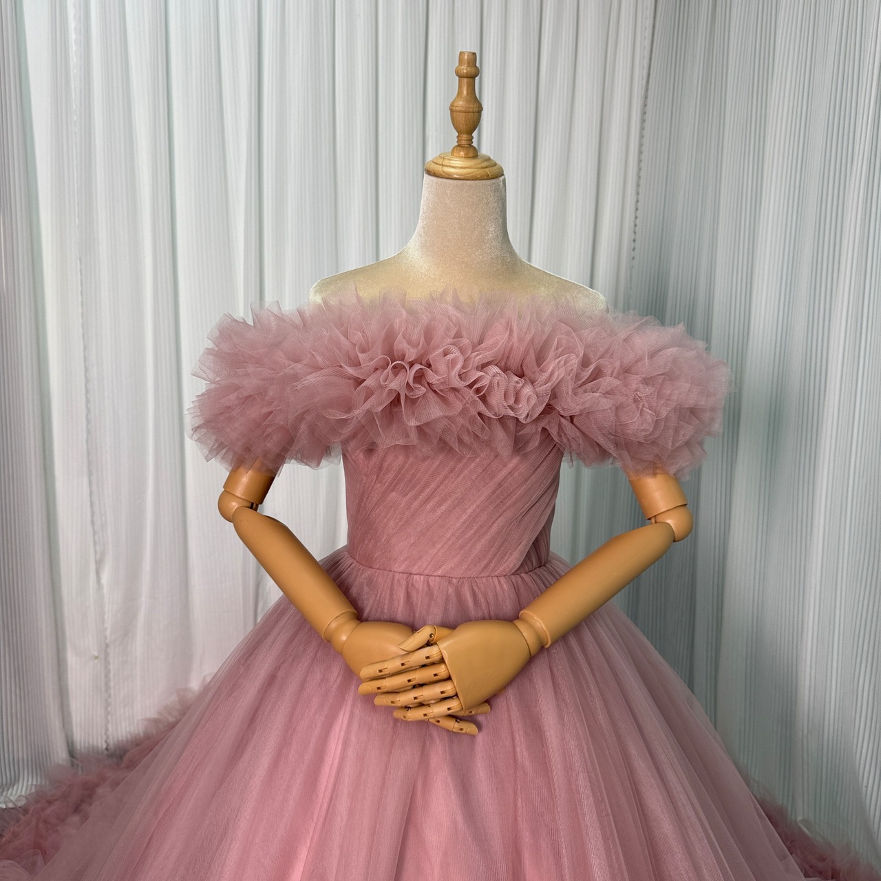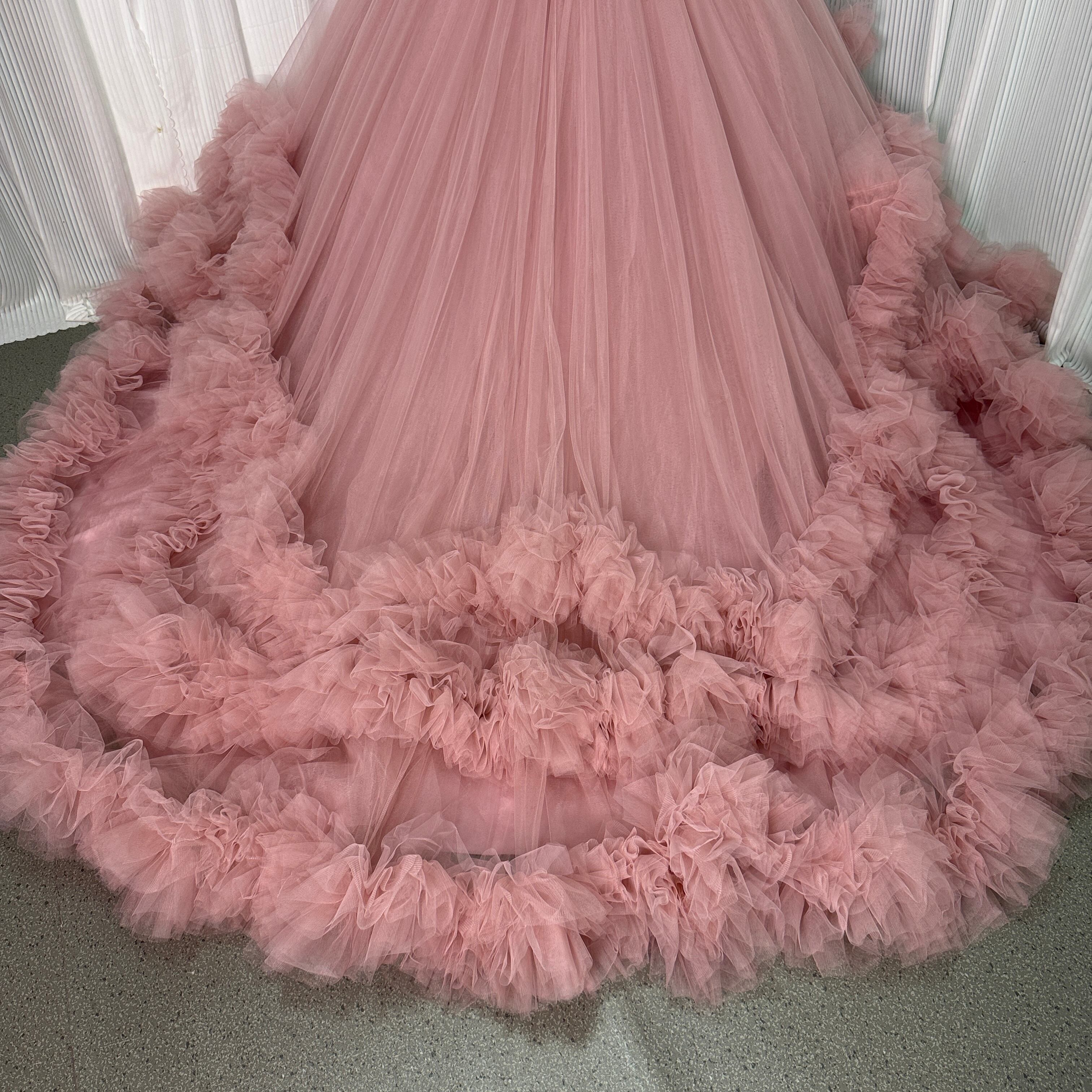カラードレス ピンク オフショルダー ファスナー アシンメトリードレス ふわふわドレス プリンセスライン 花嫁