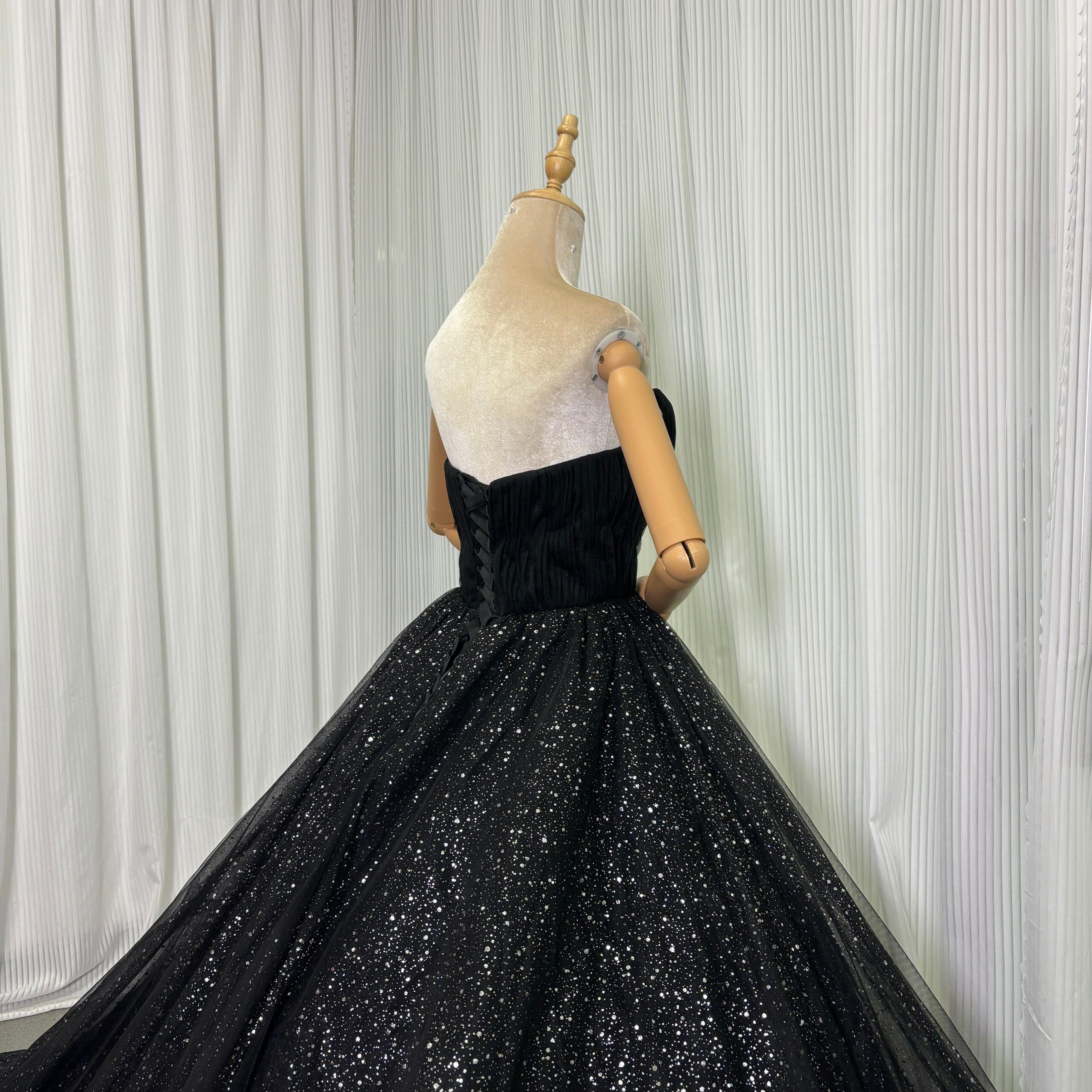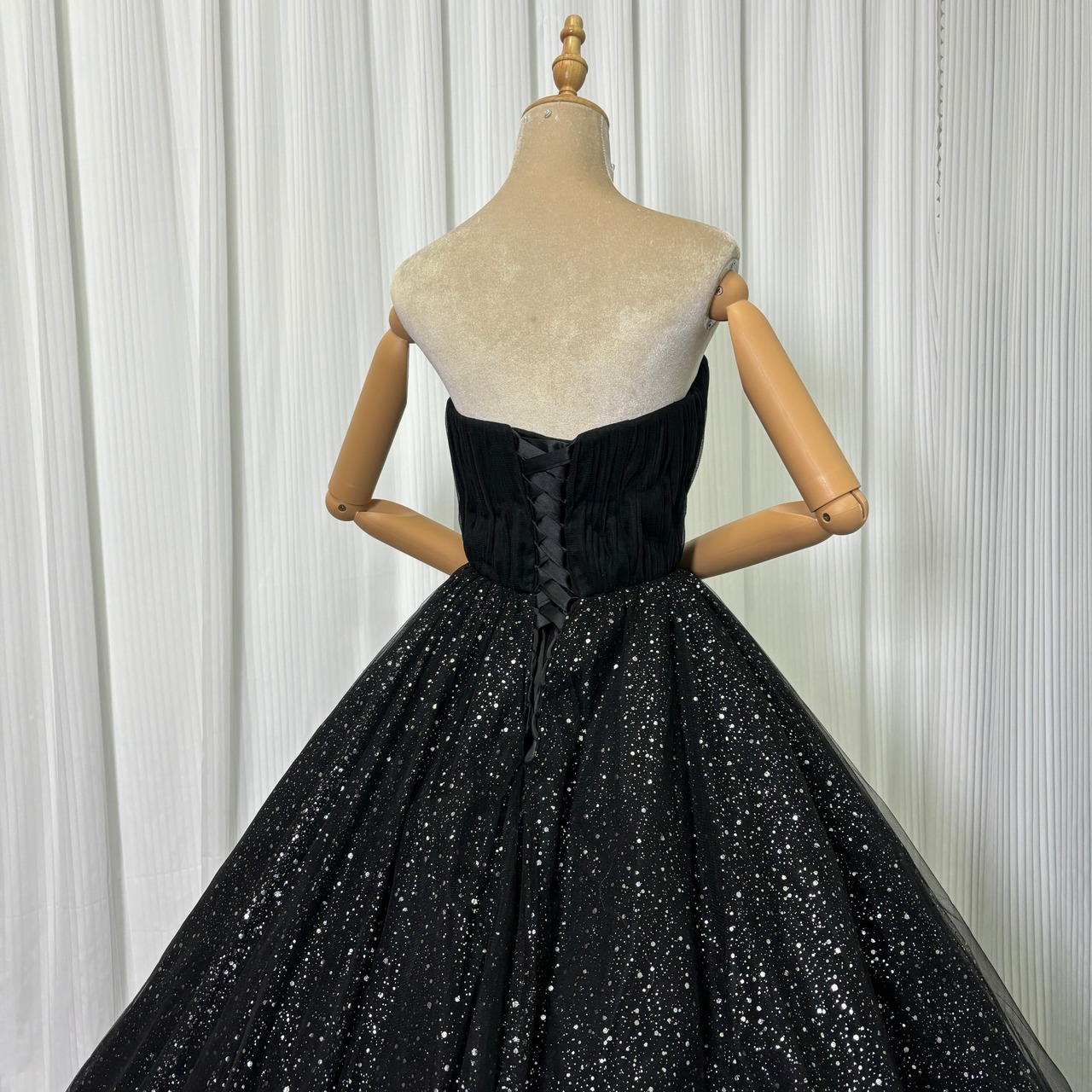 カラードレス ブラック ビスチェタイプ キラキラグリッターチュール 編み上げ エレガント チュールスカート