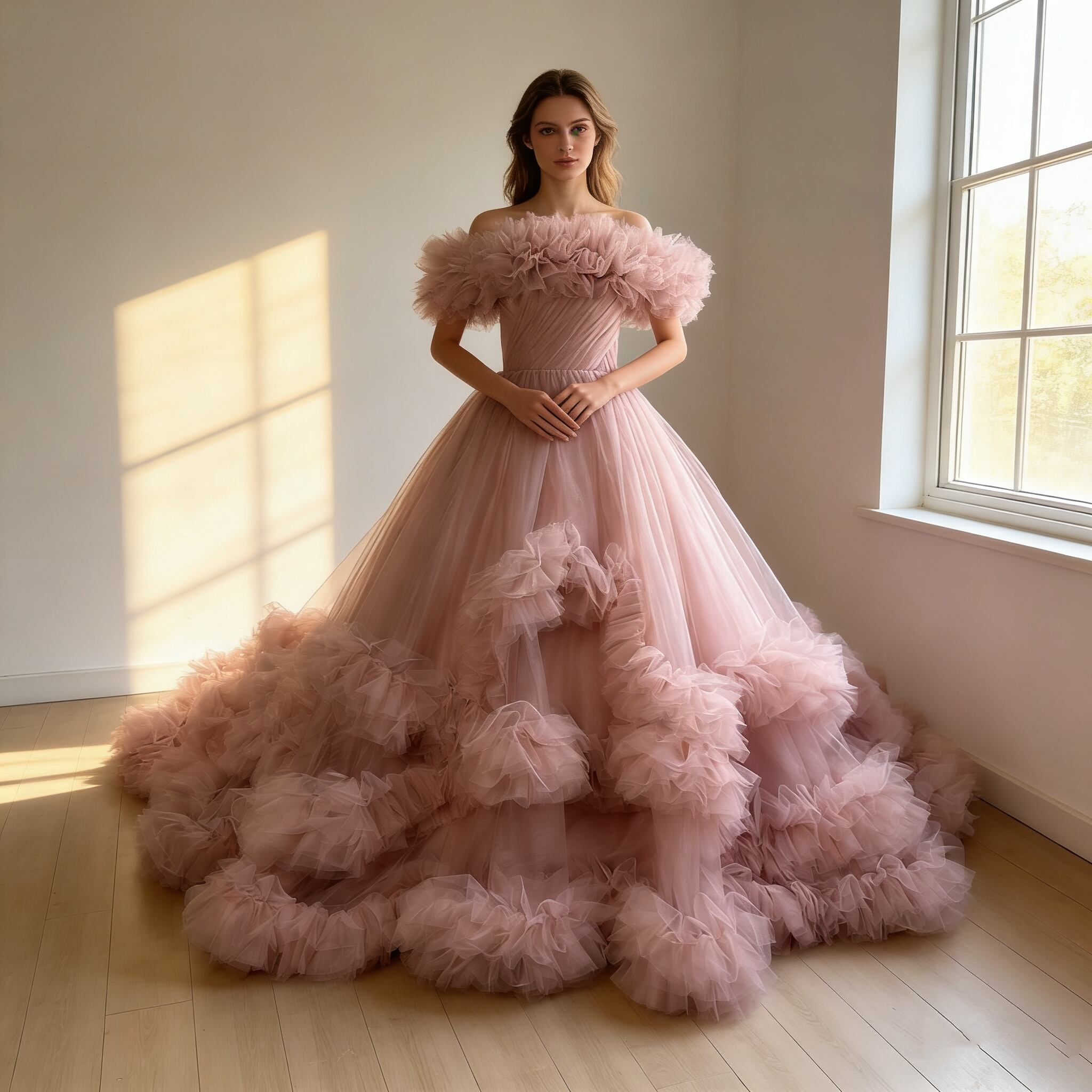 カラードレス ピンク オフショルダー ファスナー アシンメトリードレス ふわふわドレス プリンセスライン 花嫁