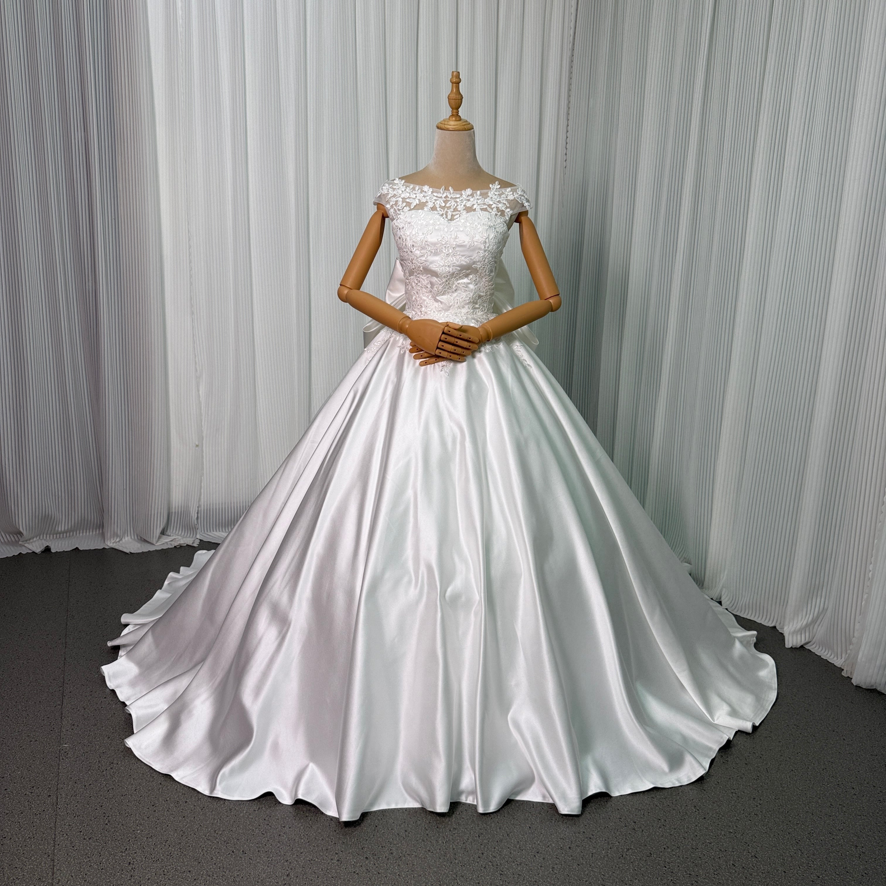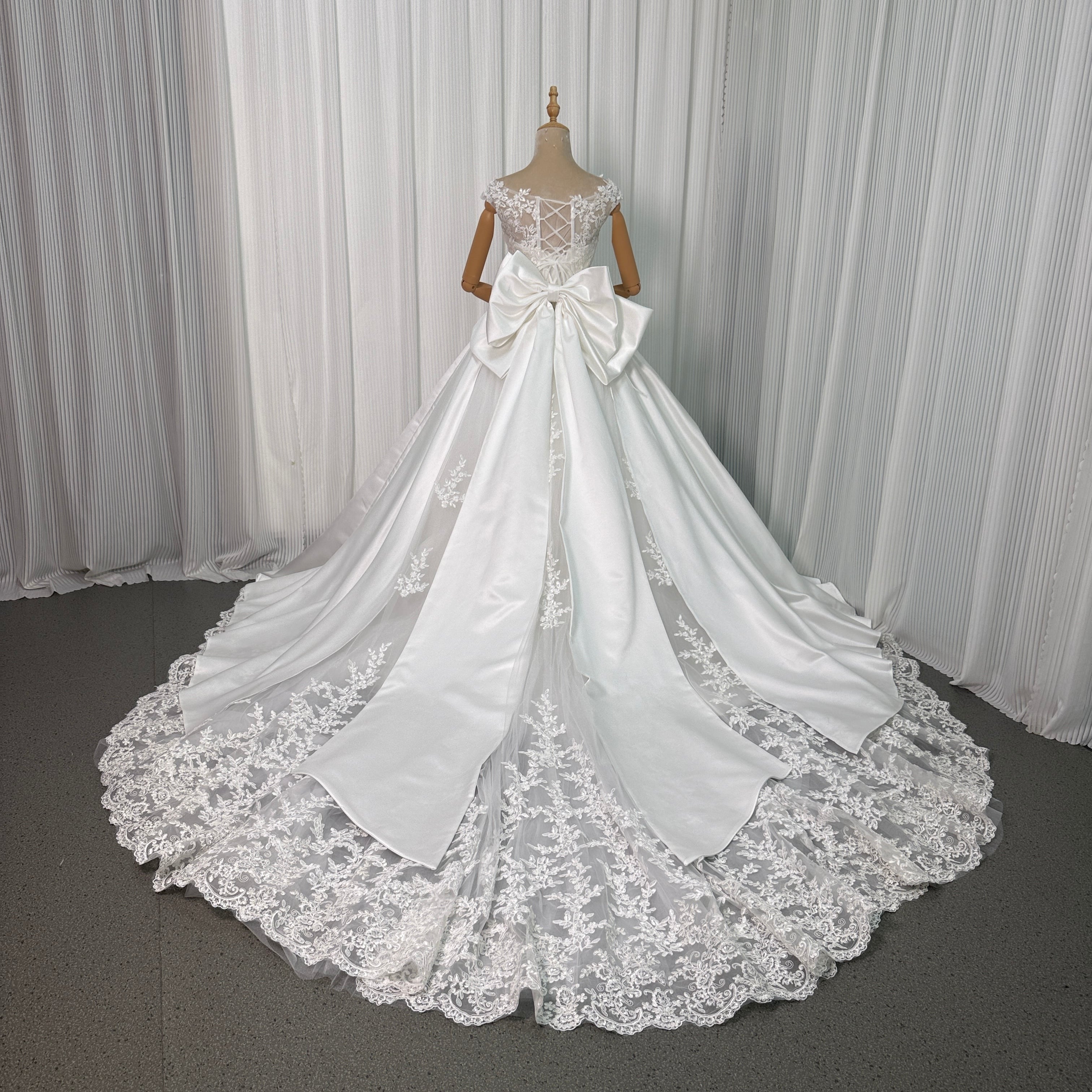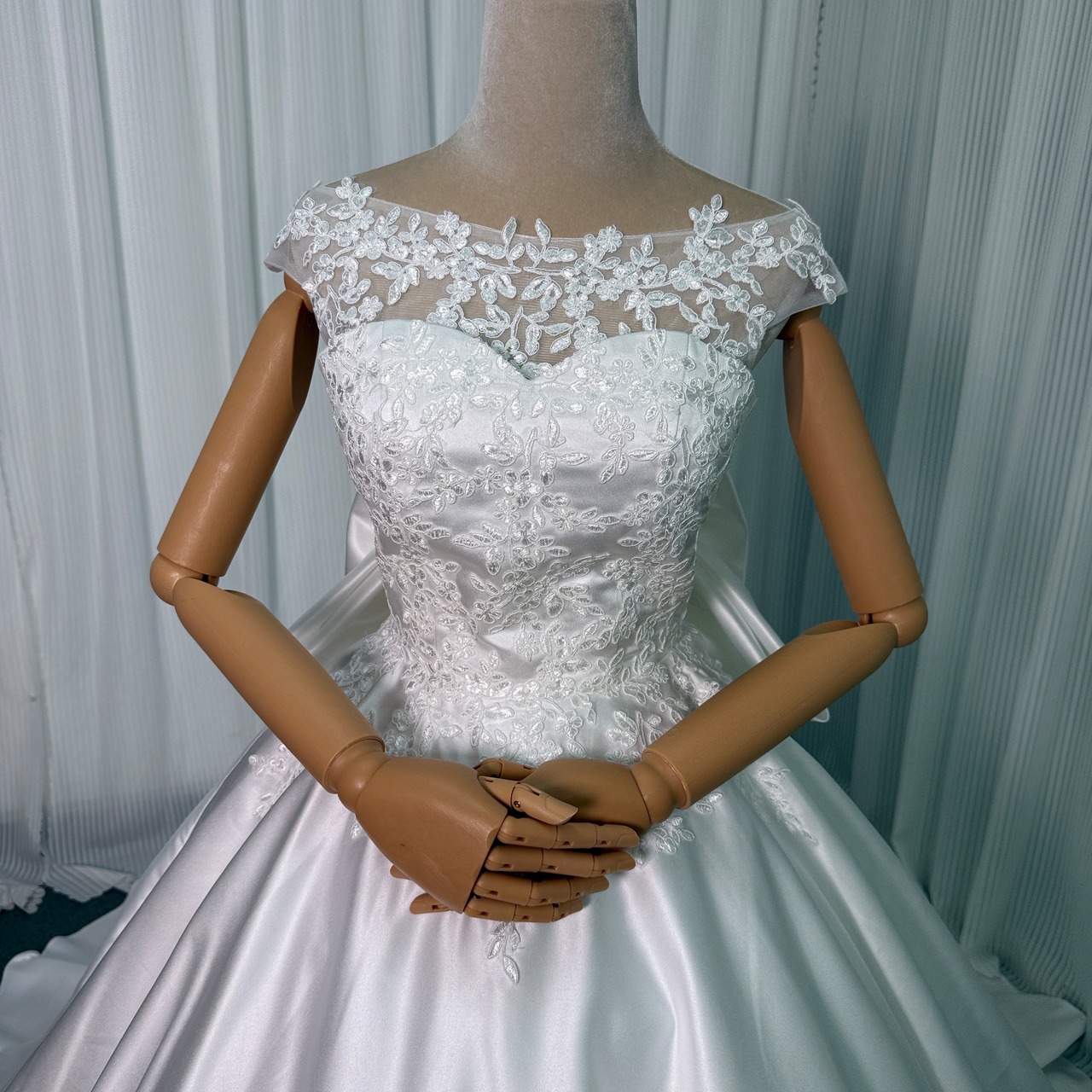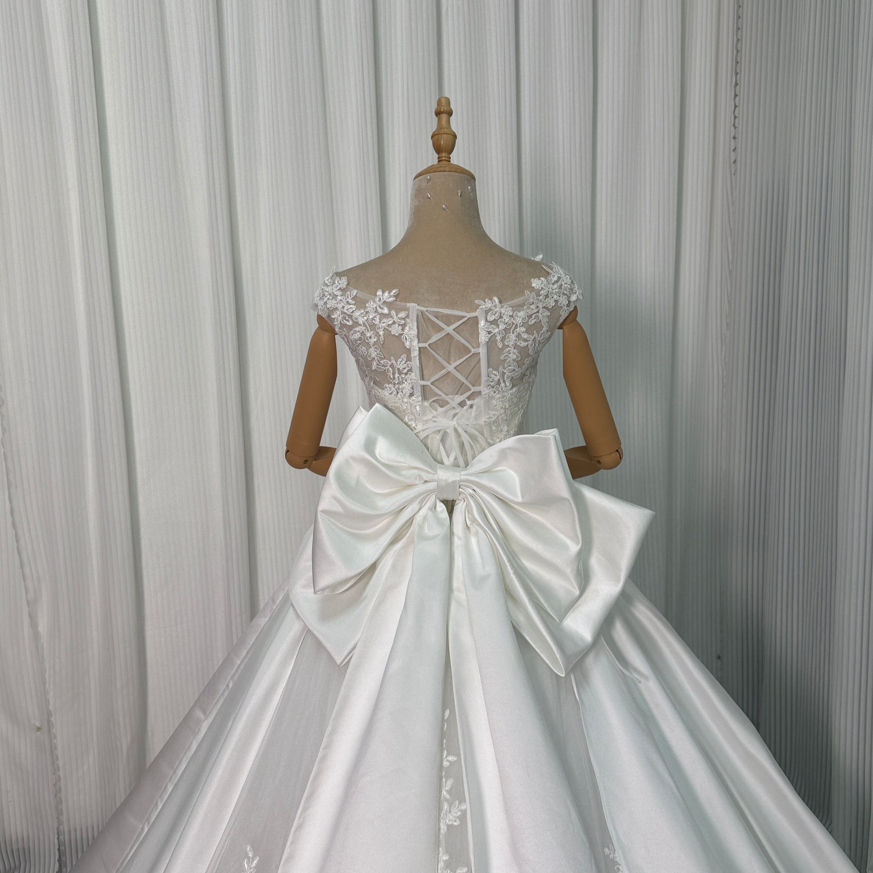 ウェディングドレス ボレロ 2ways ふっくら柔らかなバックリボン 華やかなトレーン 繊細なレース エレガント