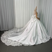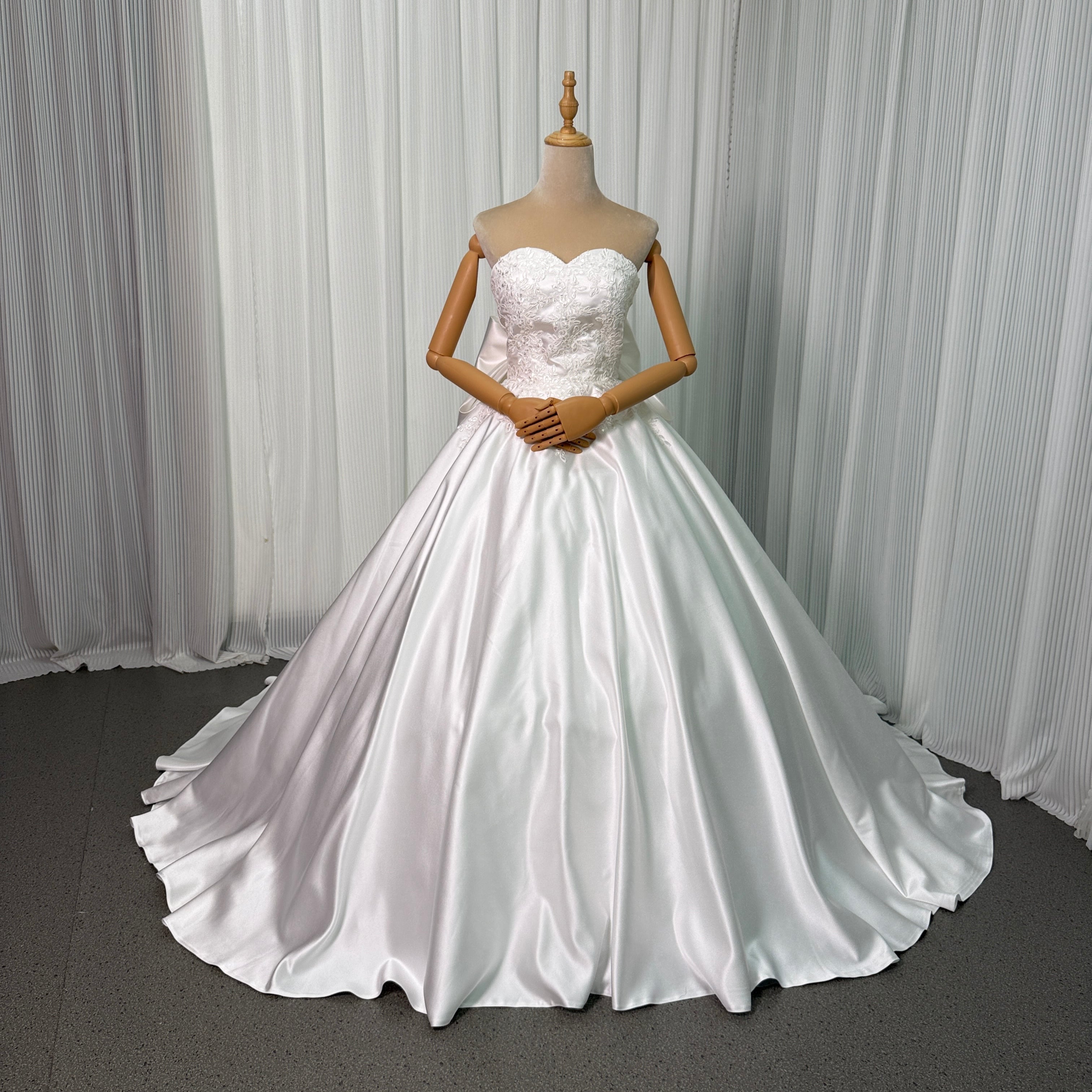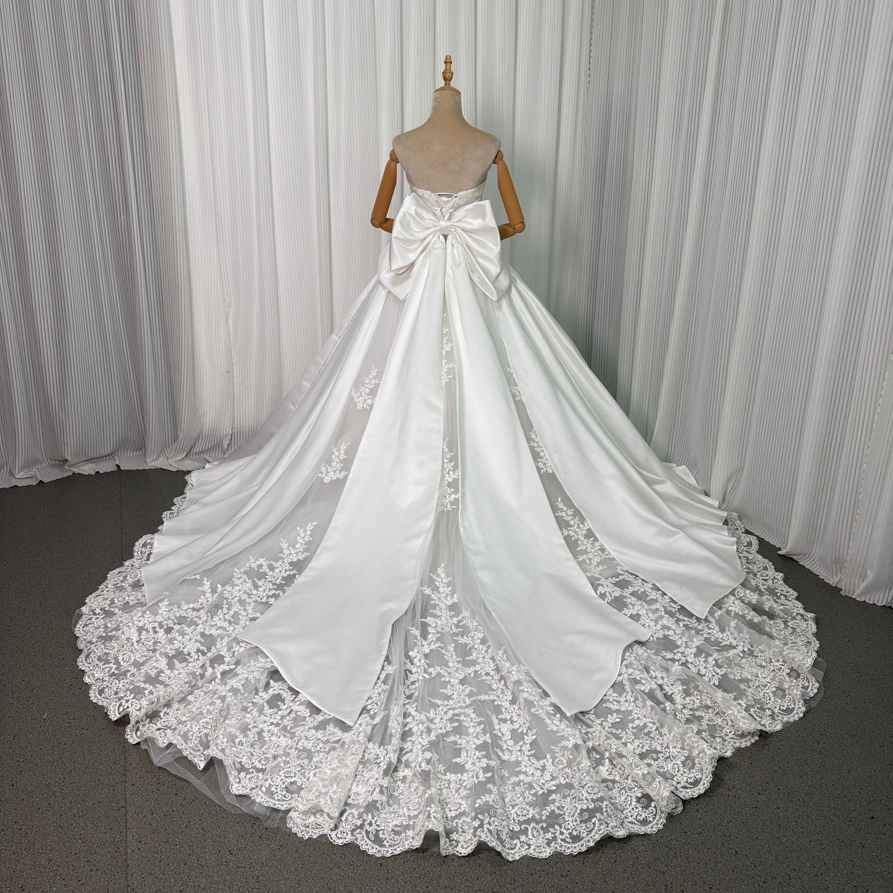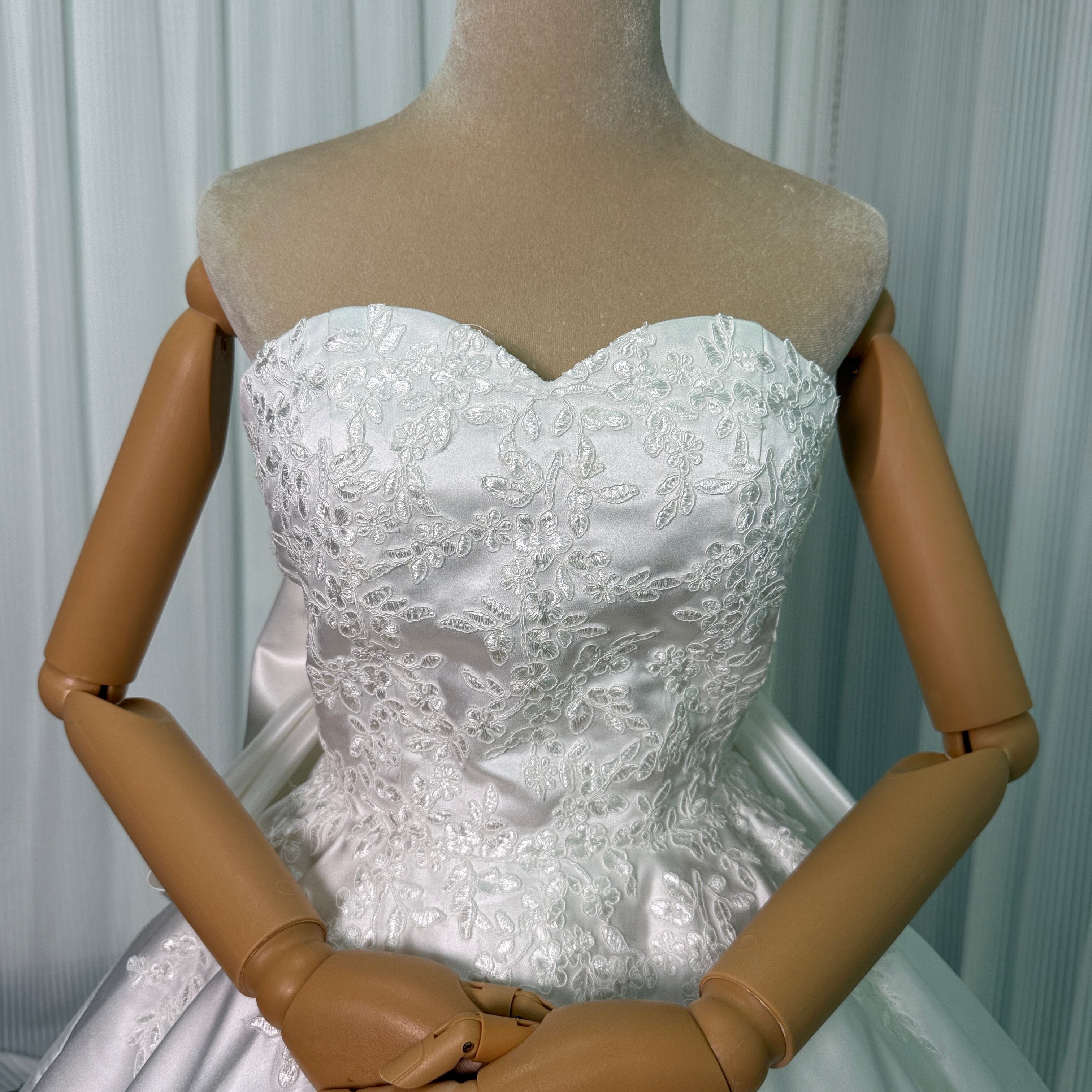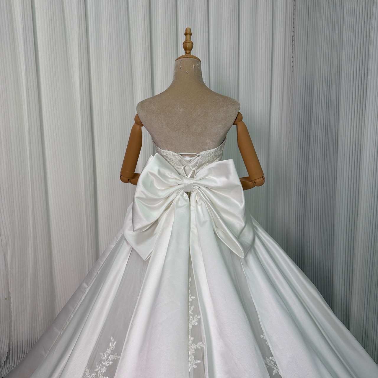 ウェディングドレス ベアトップ ふっくら柔らかなバックリボン 華やかなトレーン 繊細なレース エレガント