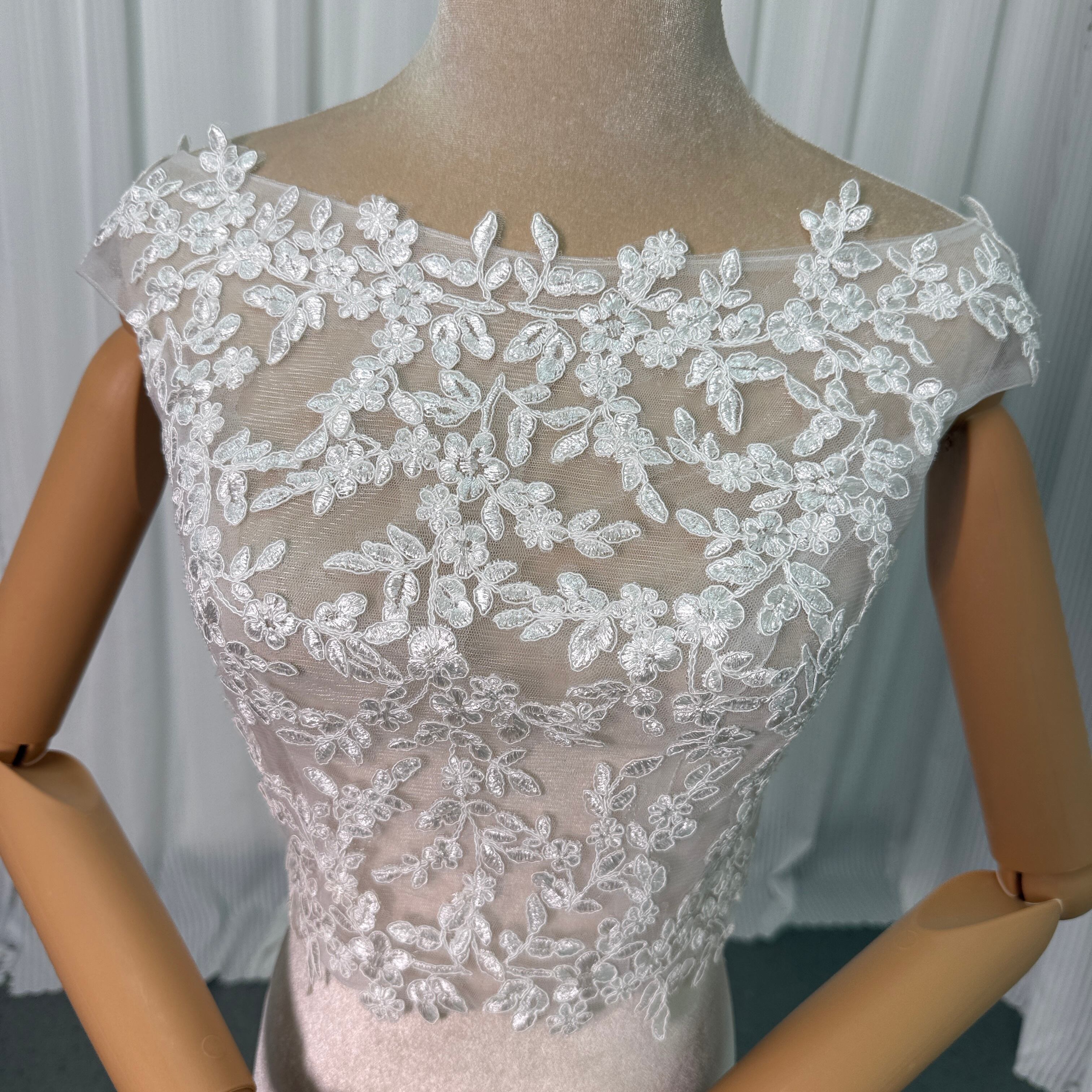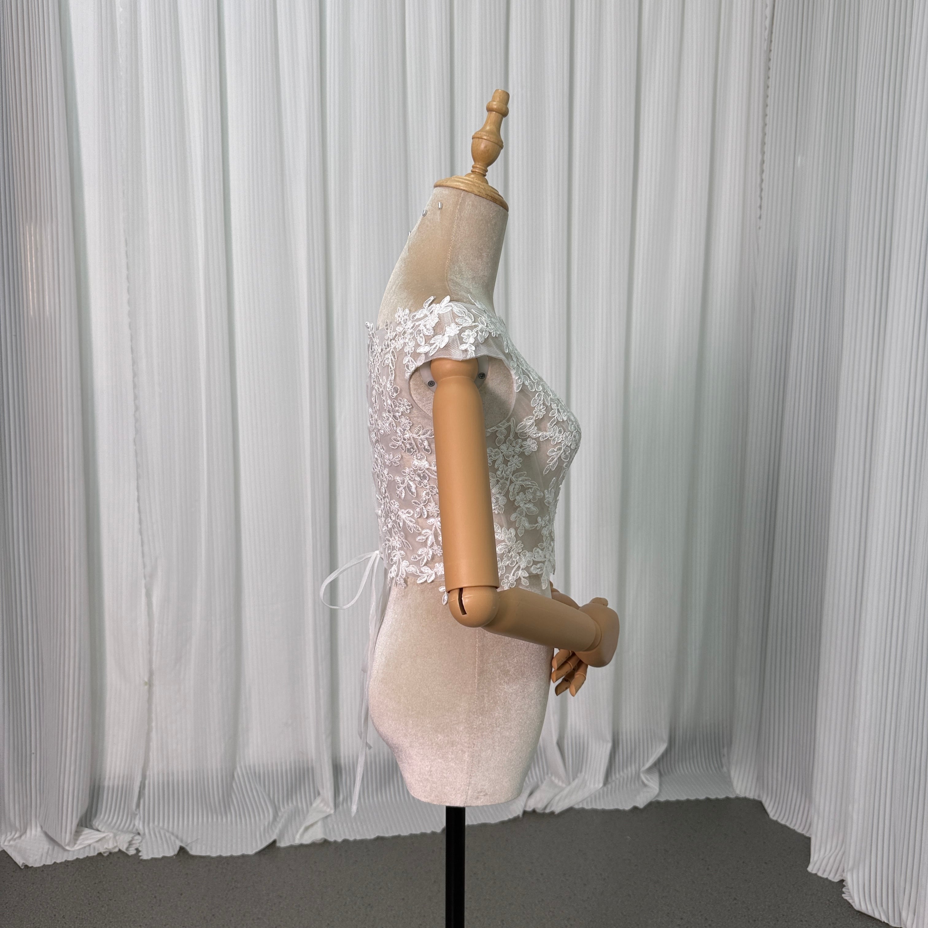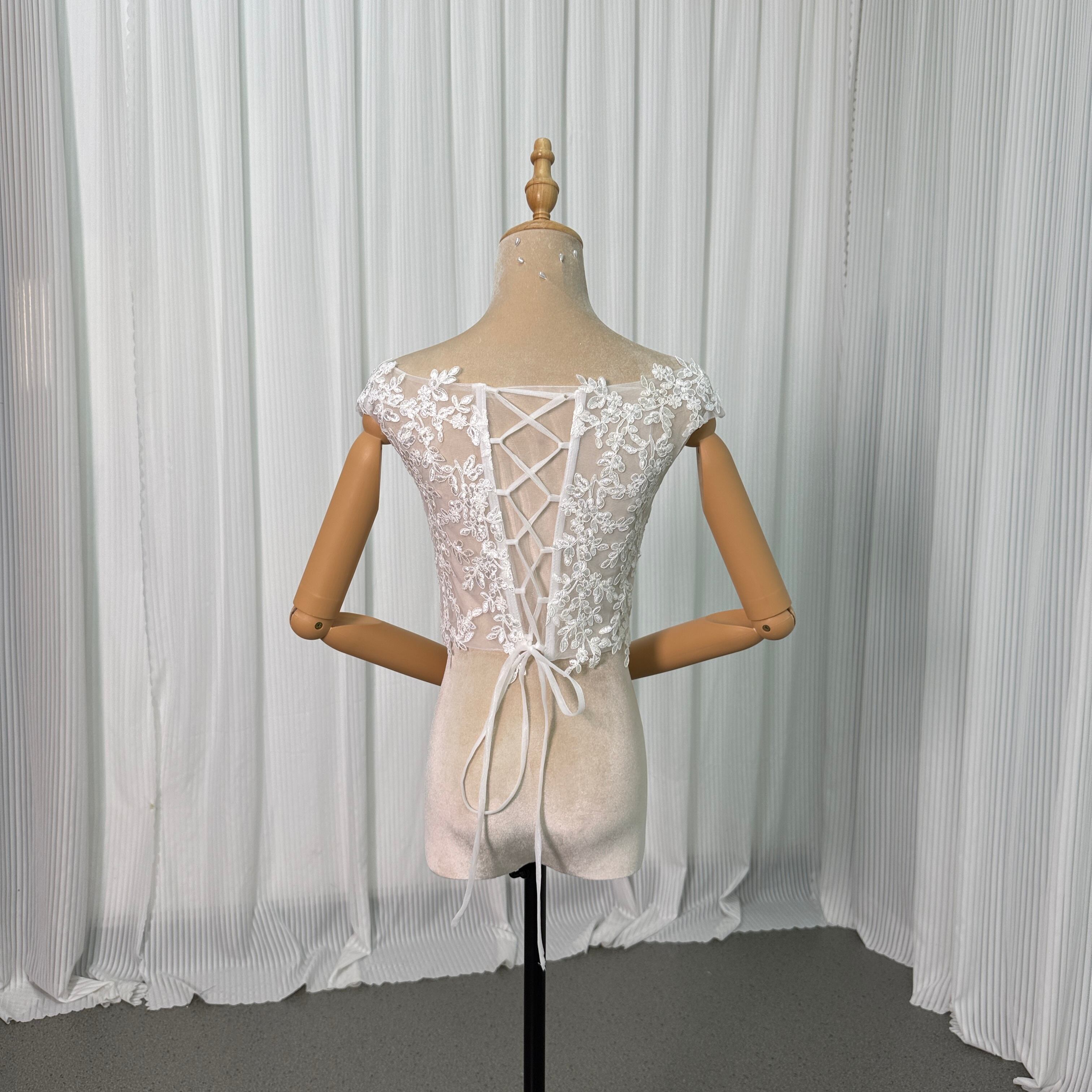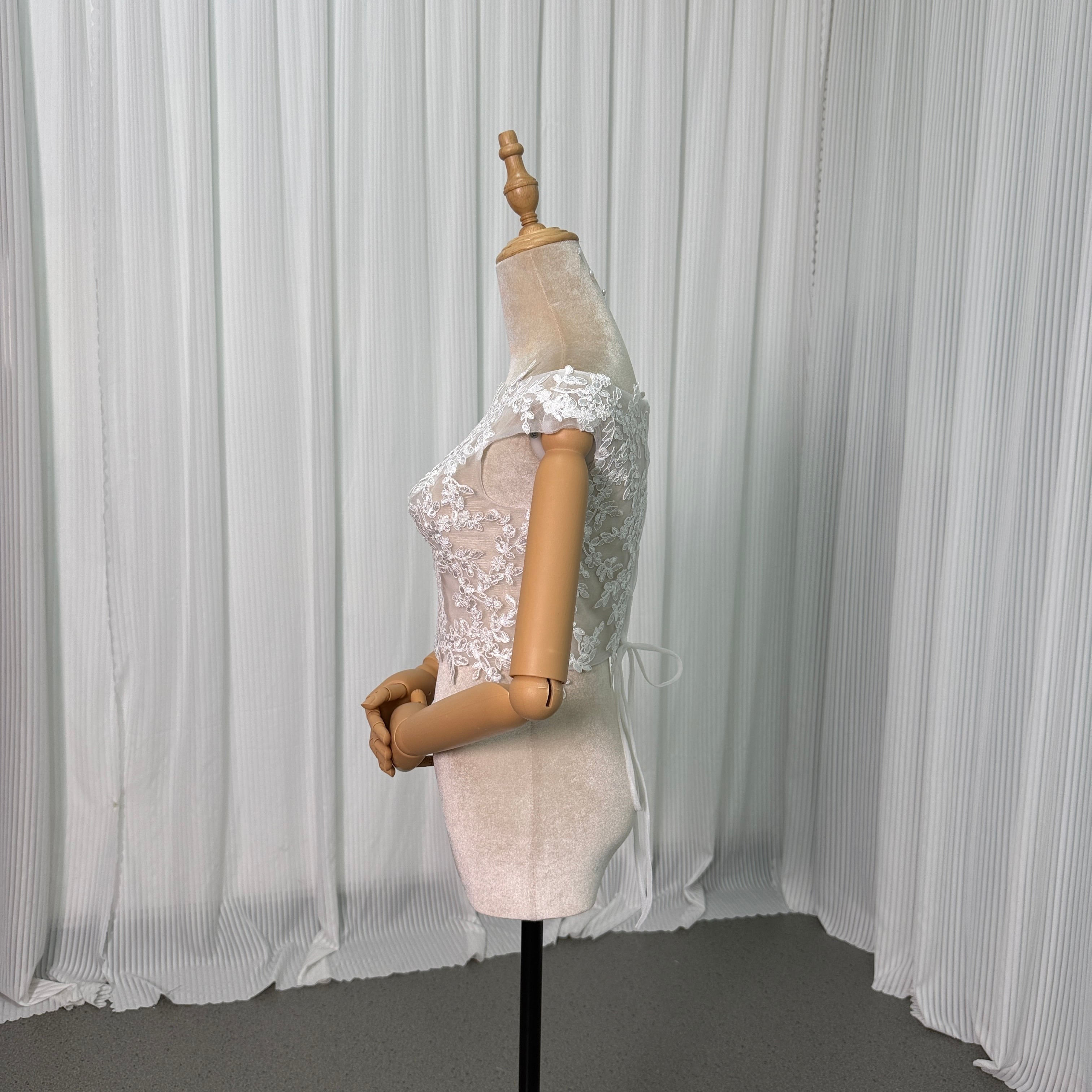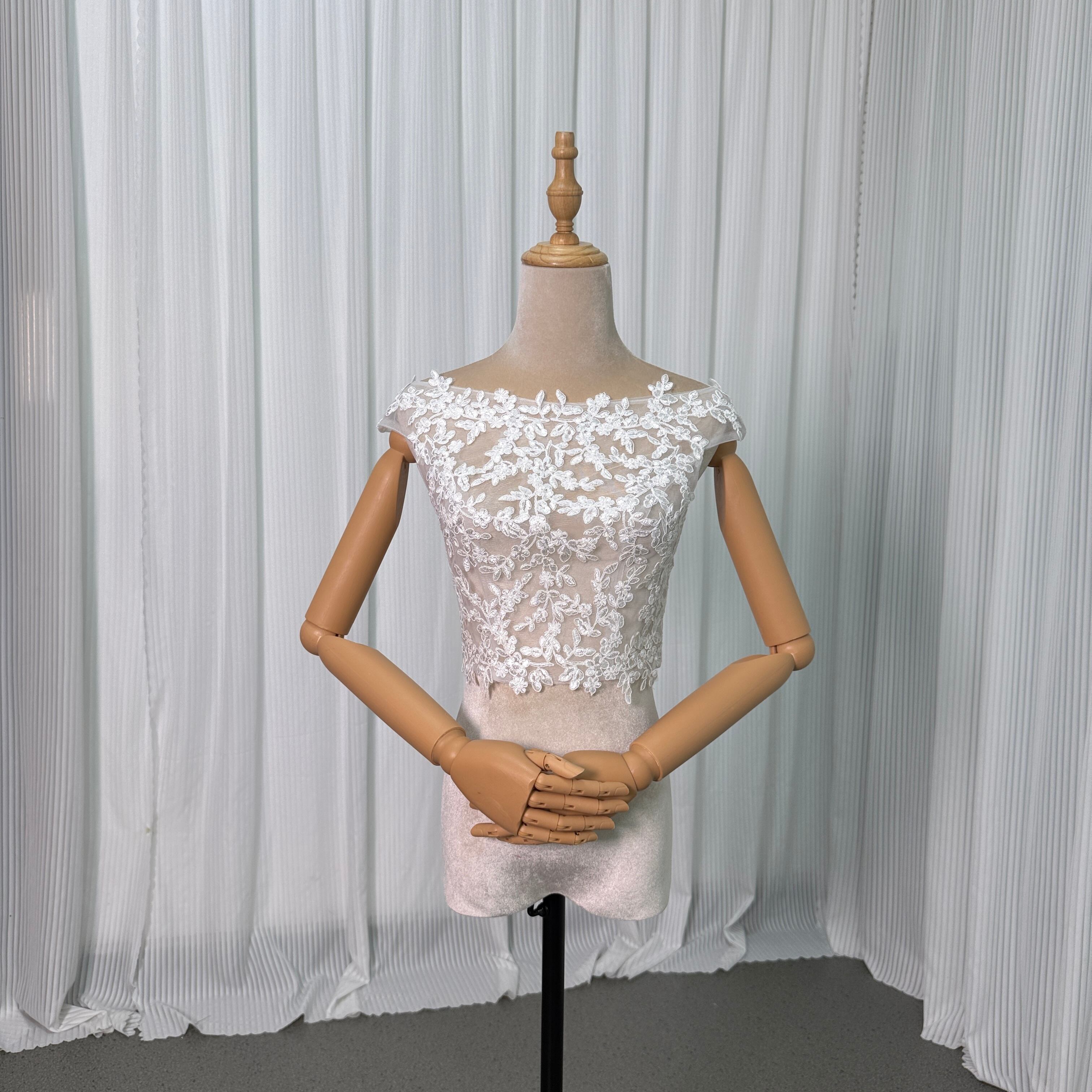 ボレロ ラウンドネック 編み上げ フレンチスリーブ 贅沢な小花柄の総レース 花嫁/ウェディングドレス