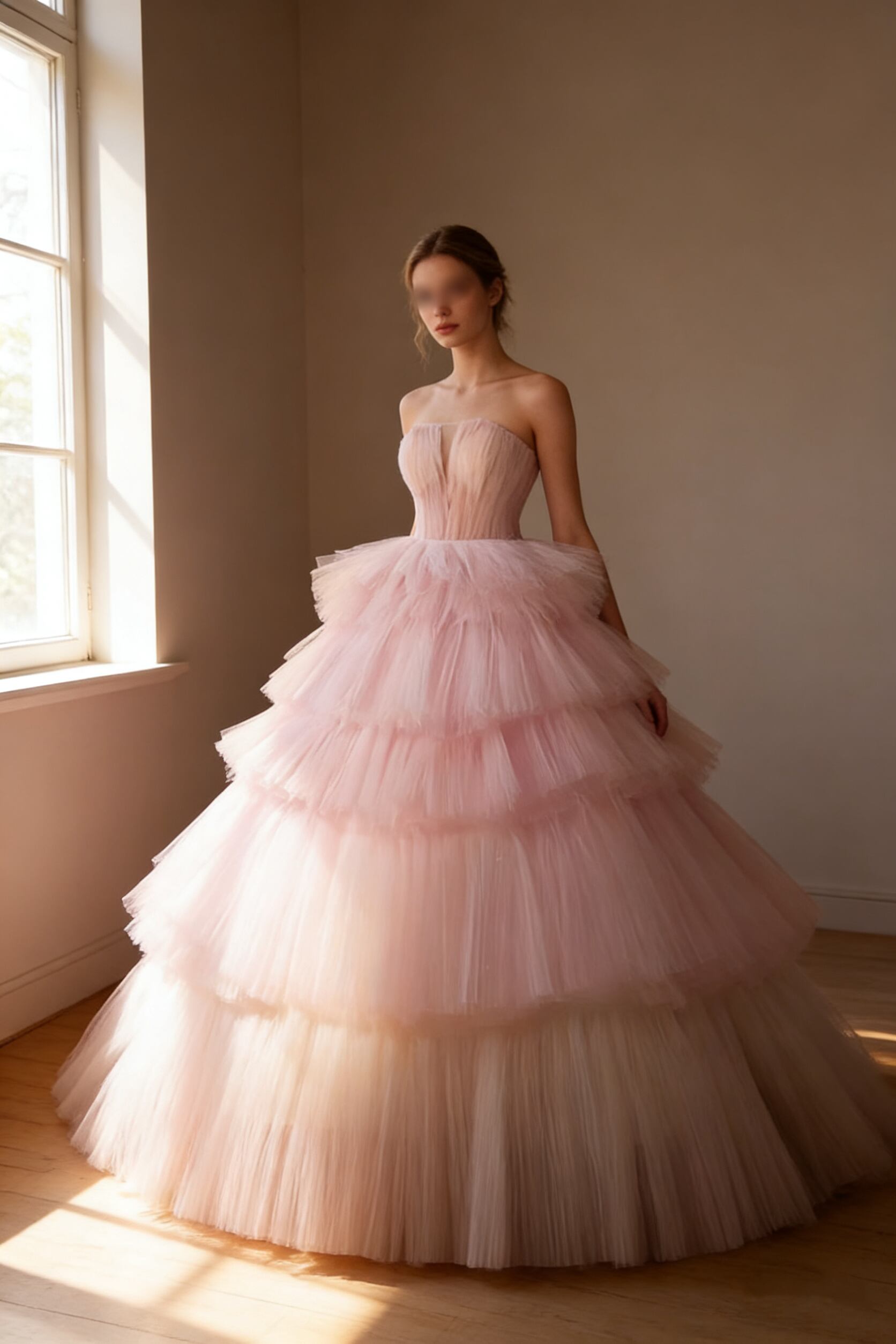 カラードレス ベアトップ ティアードのドレス ピンク フレアスカート プリンセスライン 結婚式 前撮り