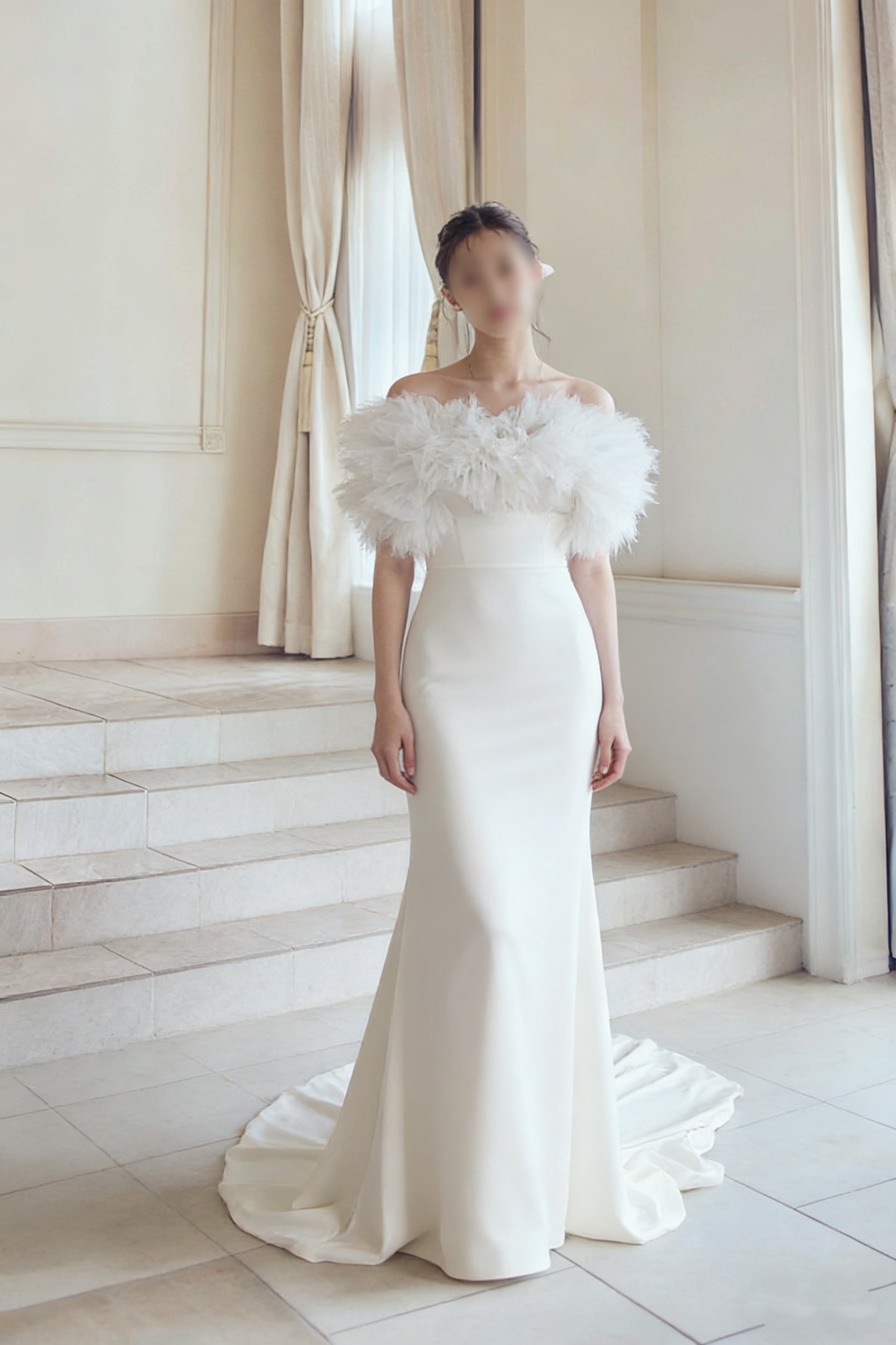 ウェディングドレス ロングワンピース マーメイドライン ベアトップ クレープ生地 花嫁 高見え 細見えシルエット