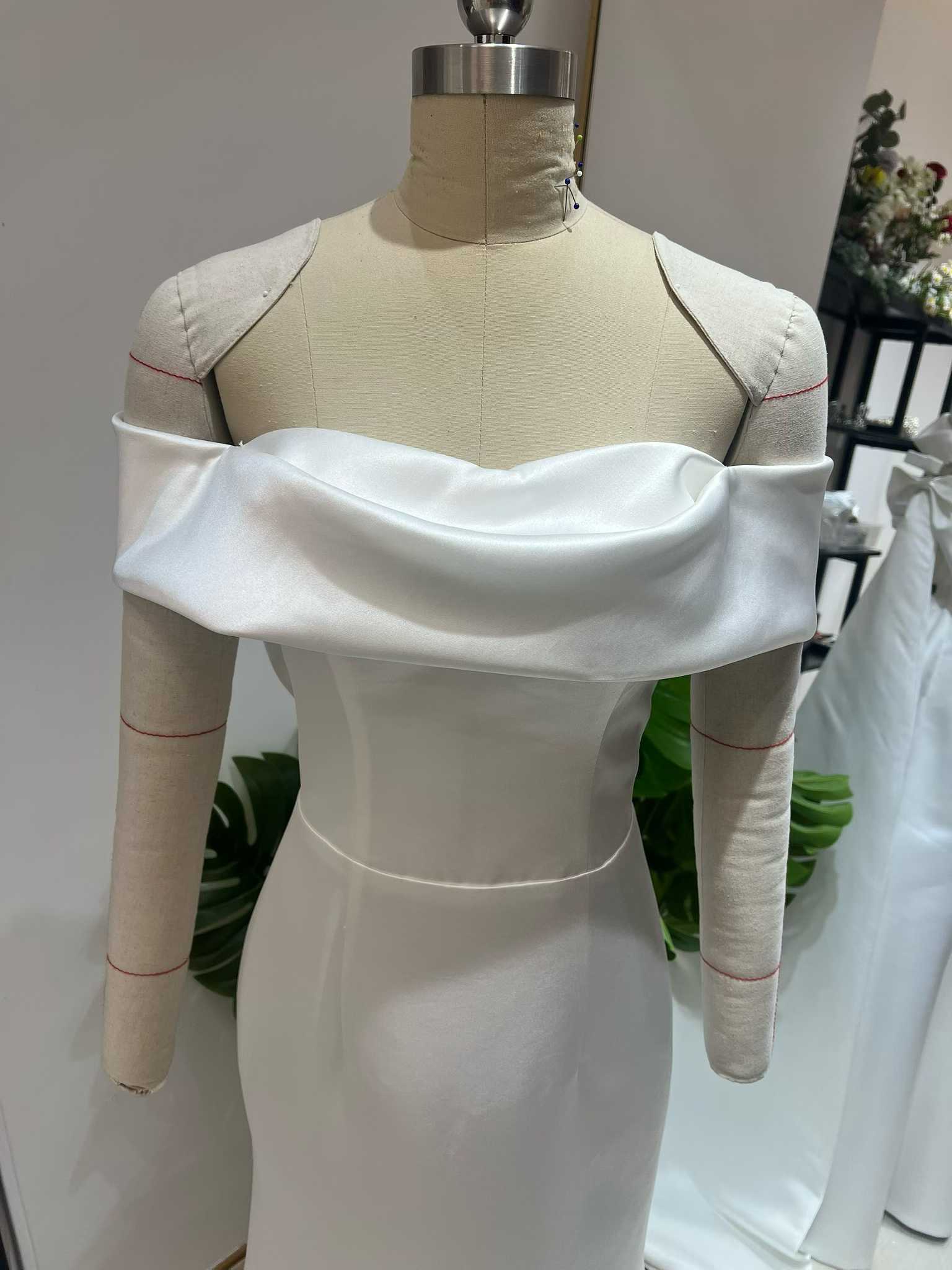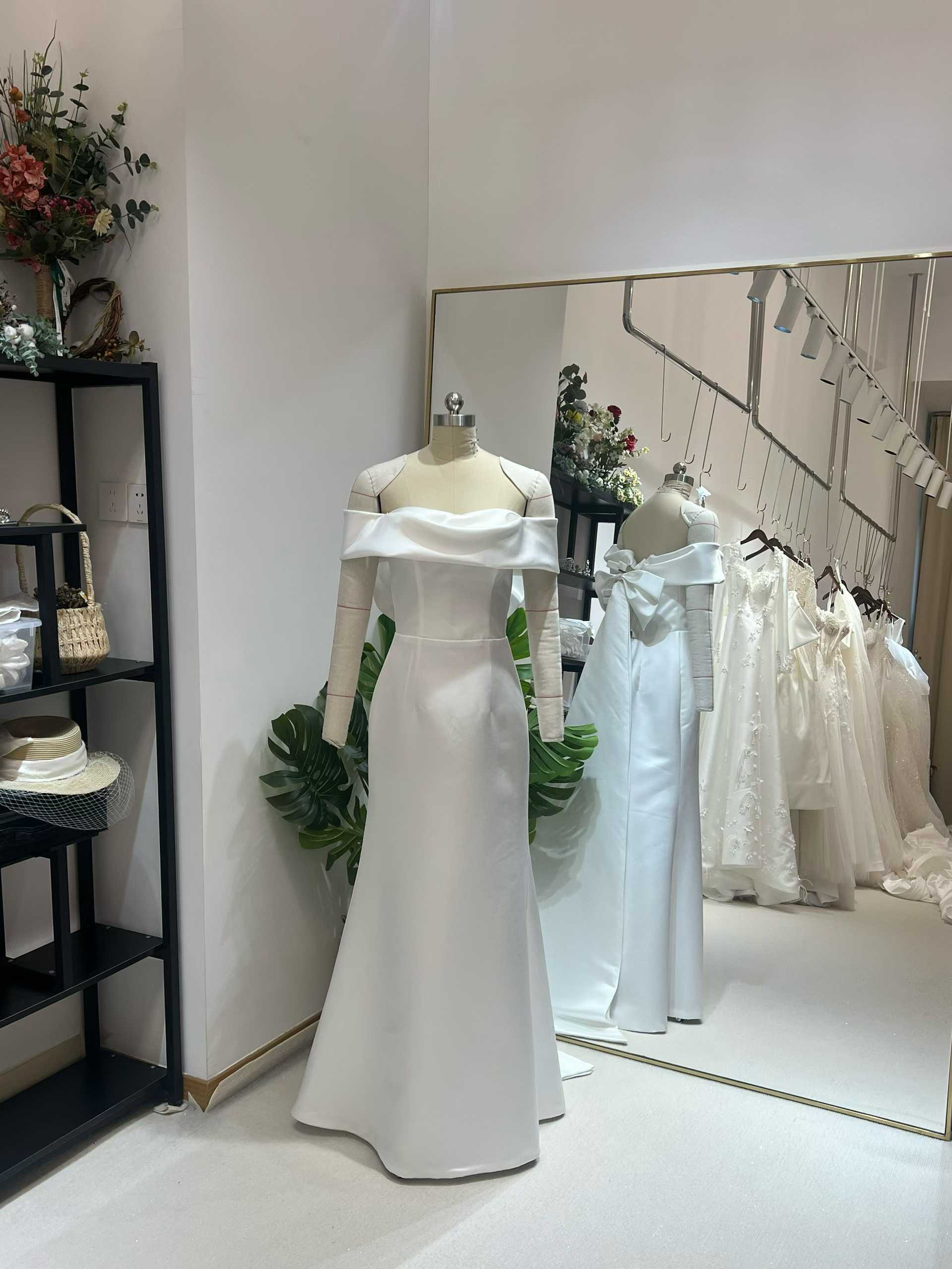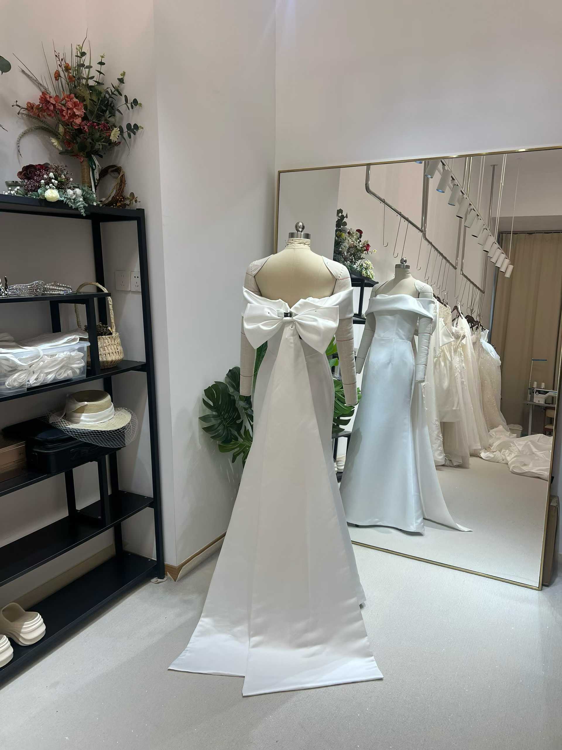 ウェディングドレス オフショルダー ふっくら柔らかなバックリボン 優雅なシルエット マーメイドライン