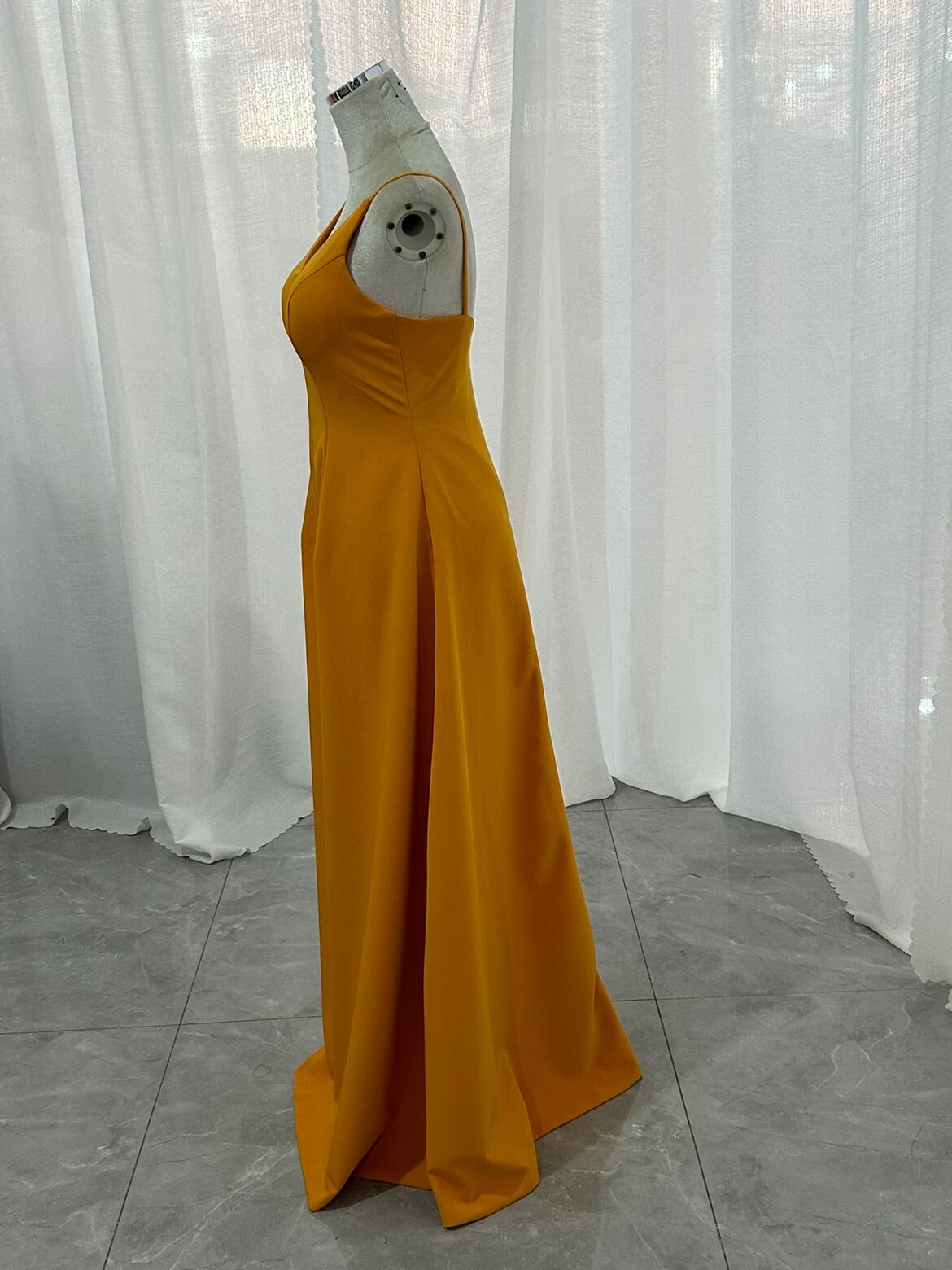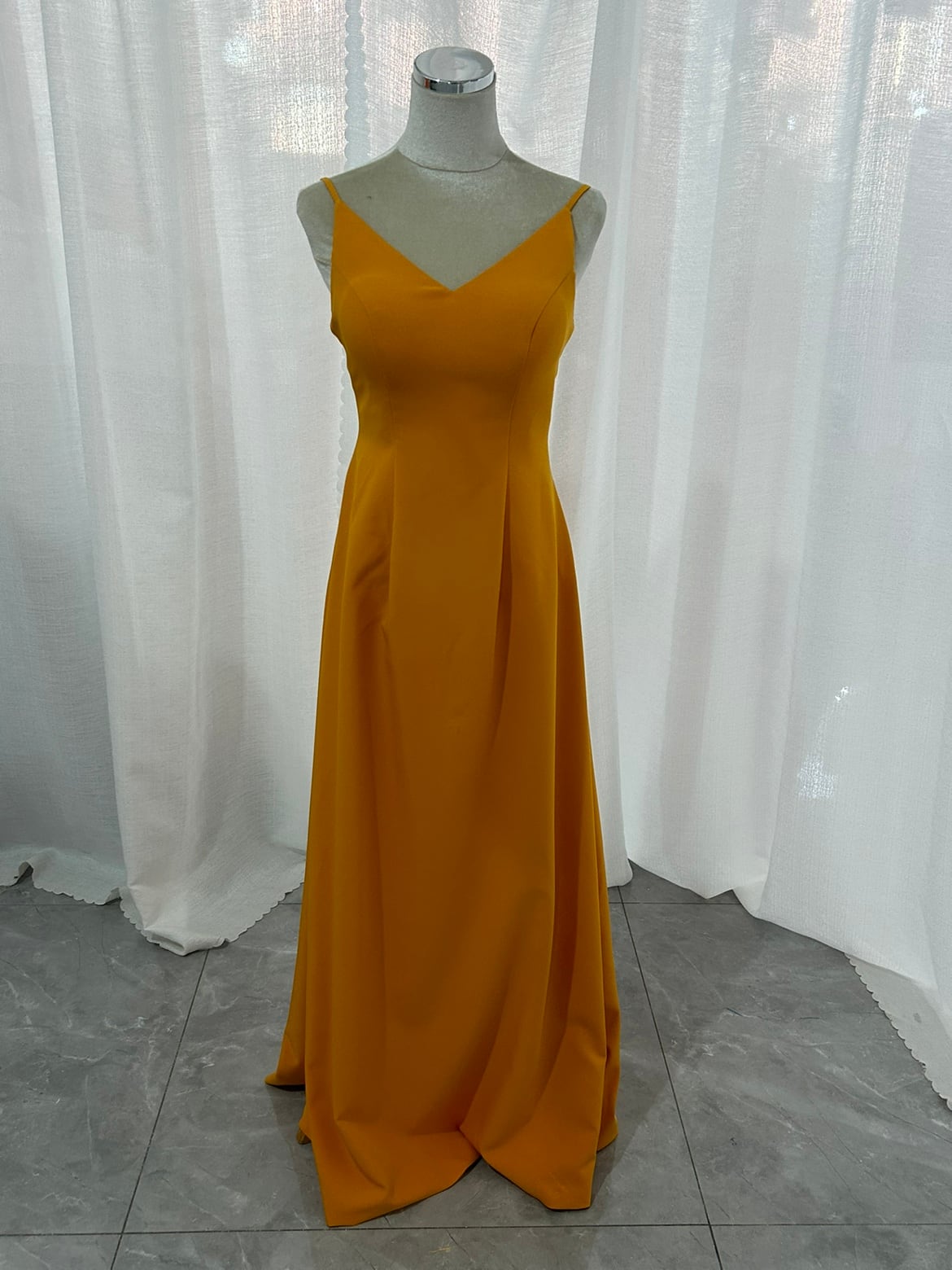 パーティードレス キャミソール オレンジ 細見えシルエット クレープ生地 前撮り 二次会