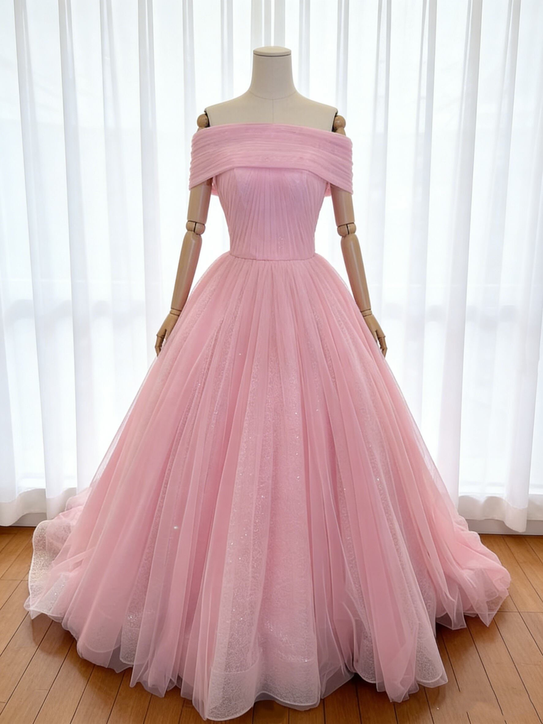 カラードレス ピンク キラキラグリッターチュール Aライン プリンセスライン ハンドドレープ 前撮り