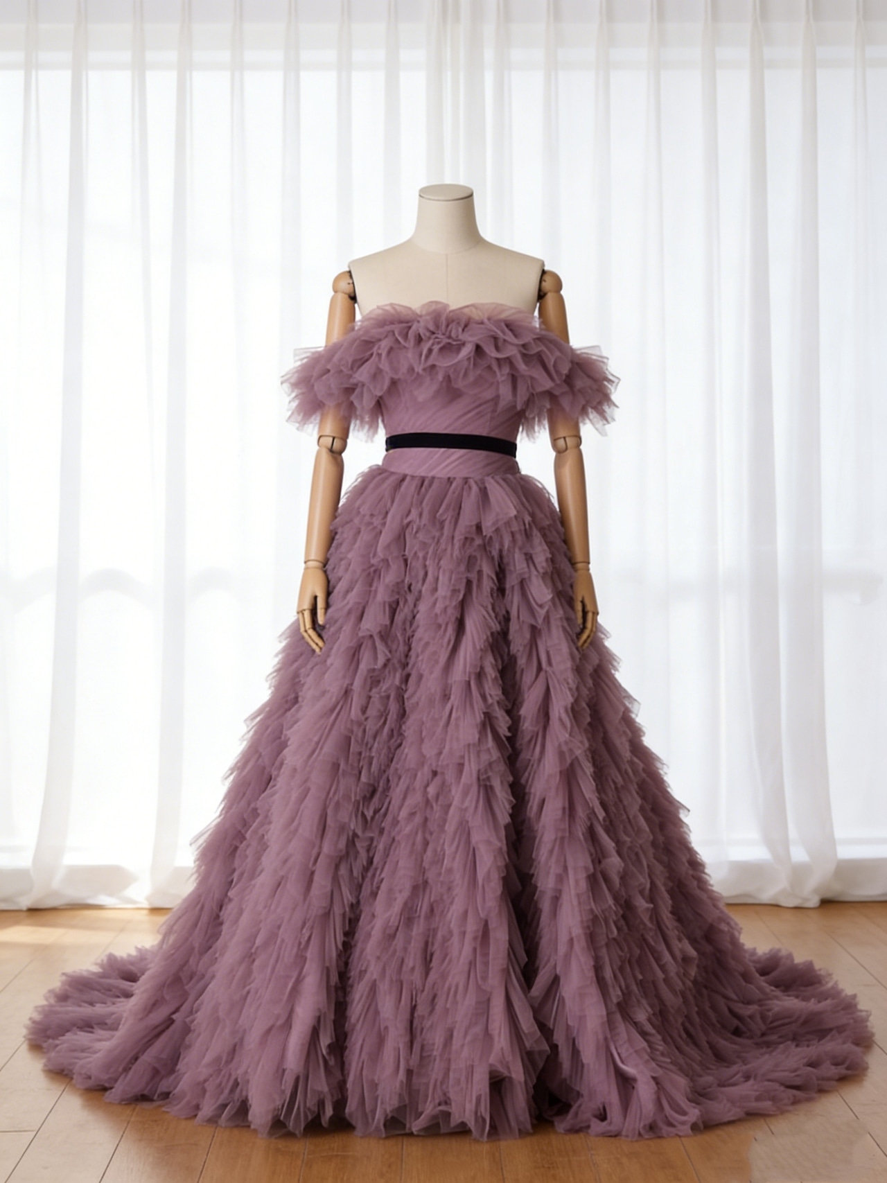 カラードレス パープル オフショルダー もこもこドレス チュールドレス ブライダル 憧れのドレス