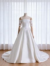 ウェディングドレス 半袖 ビスチェドレス 光沢サテン 花嫁 オフホワイト Aライン