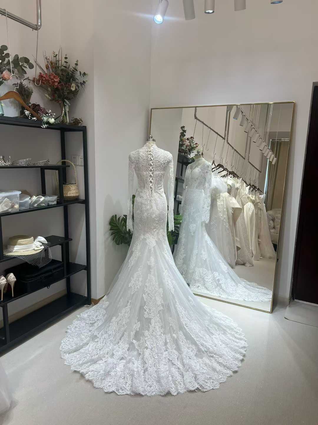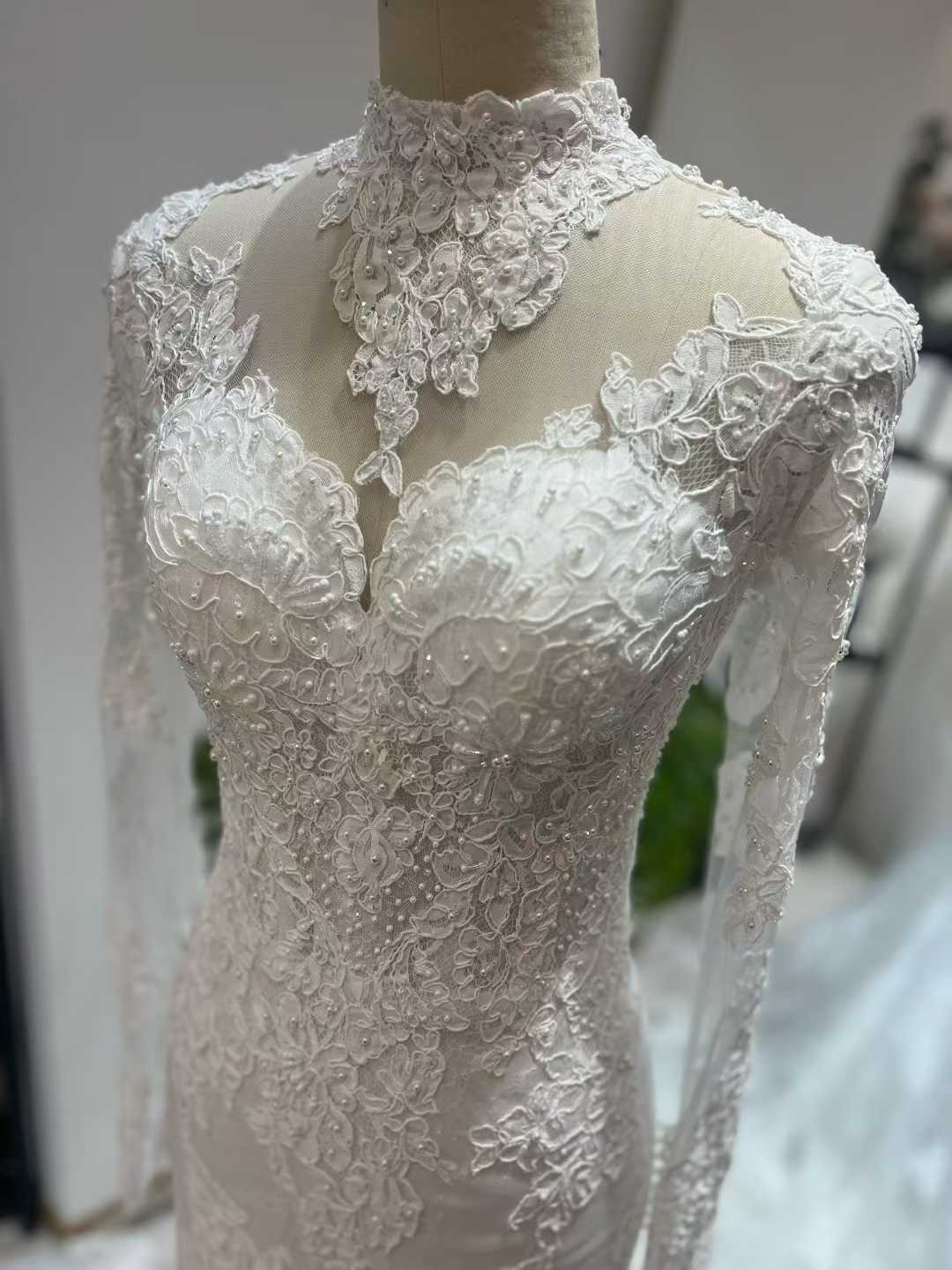 ウェディングドレス ハイネック 長袖 トレーン マーメイド 結婚式 憧れのドレス 優雅なシルエット