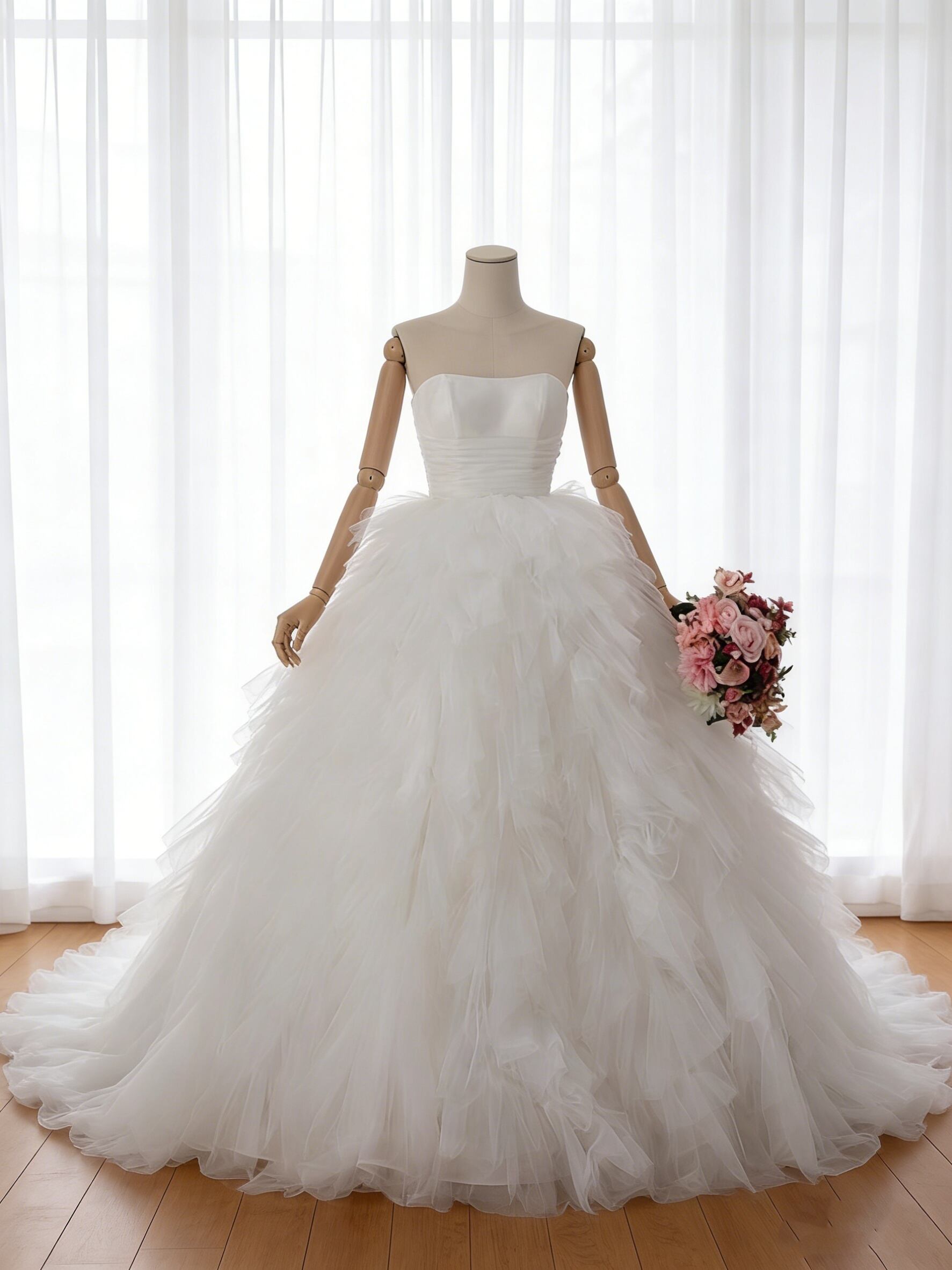 ウエディングドレス ベアトップ もこもこドレス オフホワイト 結婚式/披露宴 憧れのドレス オートクチュール