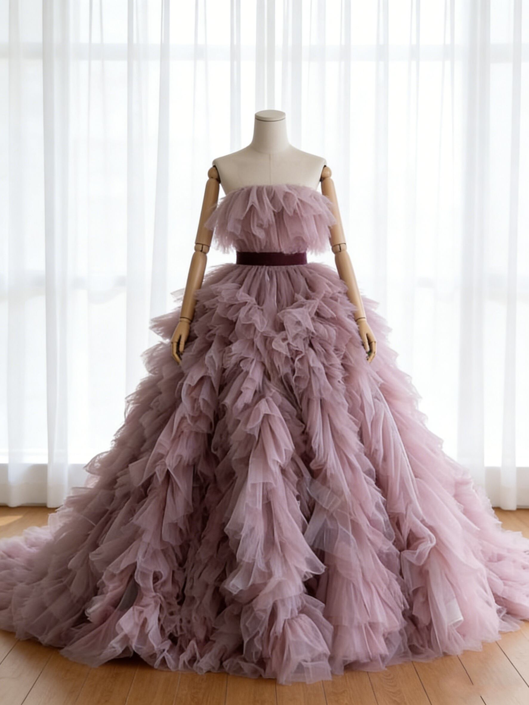 カラードレス ビスチェドレス ボリュームドレス チュールドレス パープル プリンセスライン 結婚式/披露宴
