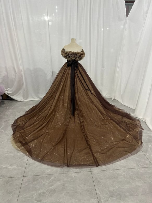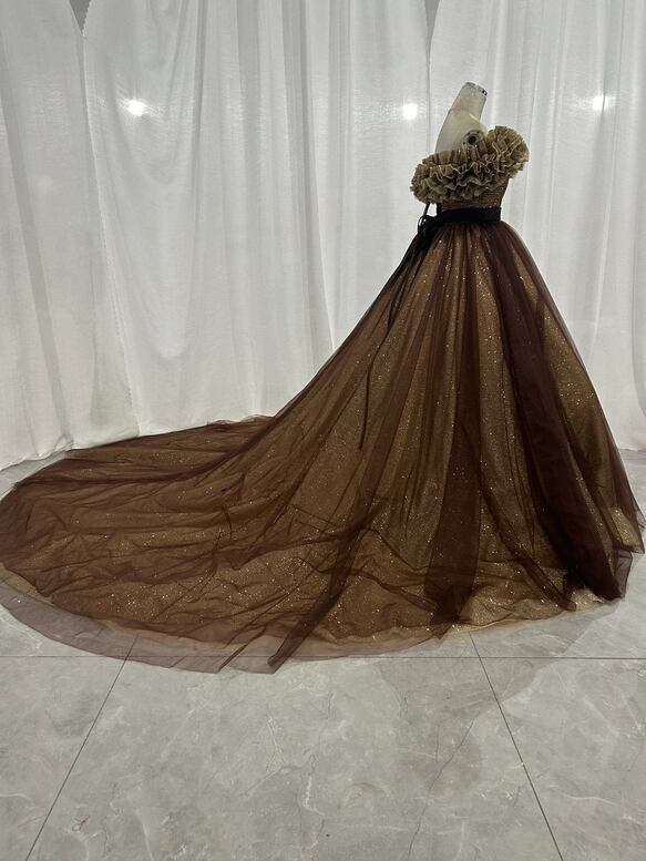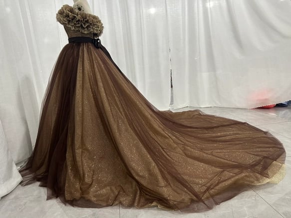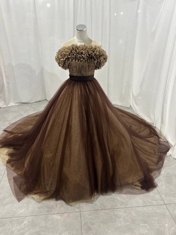 取り外しオフショルダー コーヒーの色 カラードレス キラキラチュール ソフトチュール ト華やかなトレ/前撮り