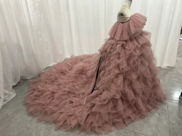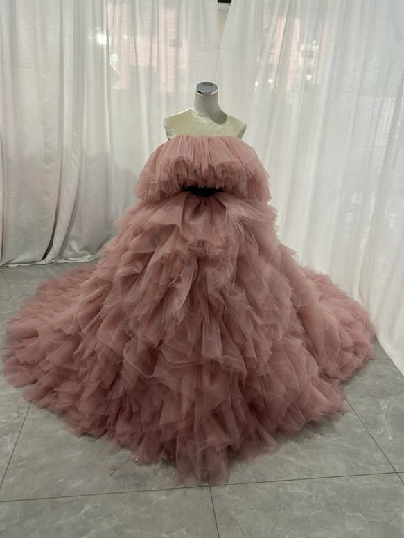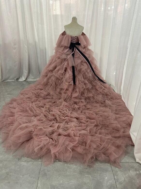 カラードレス ピンクソフィア 取り外しオフショルダー ふわふわドレス 抜群のおしゃれ見え 前撮り 花嫁