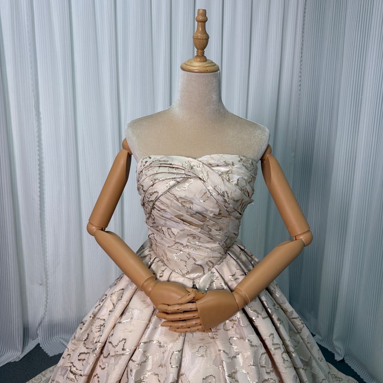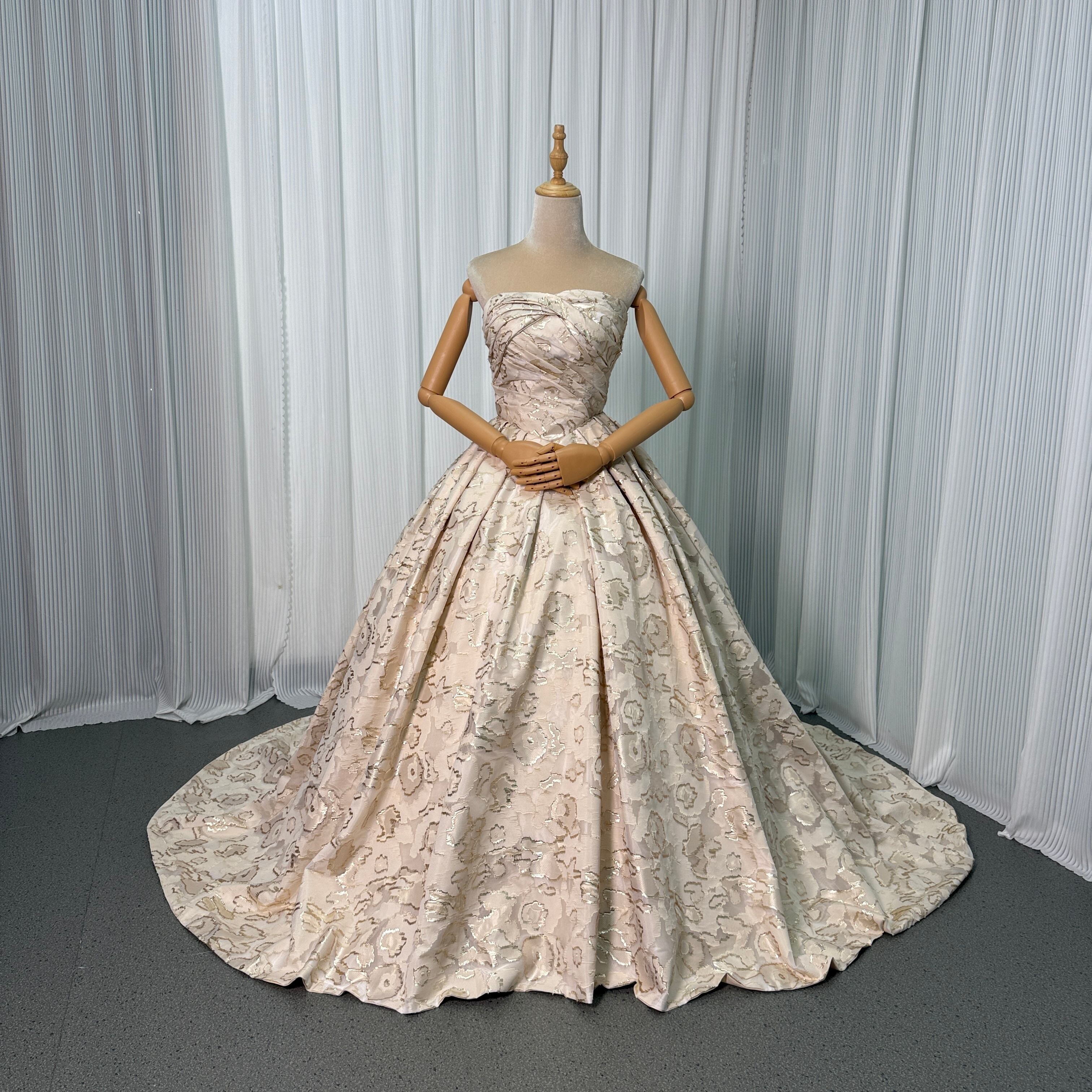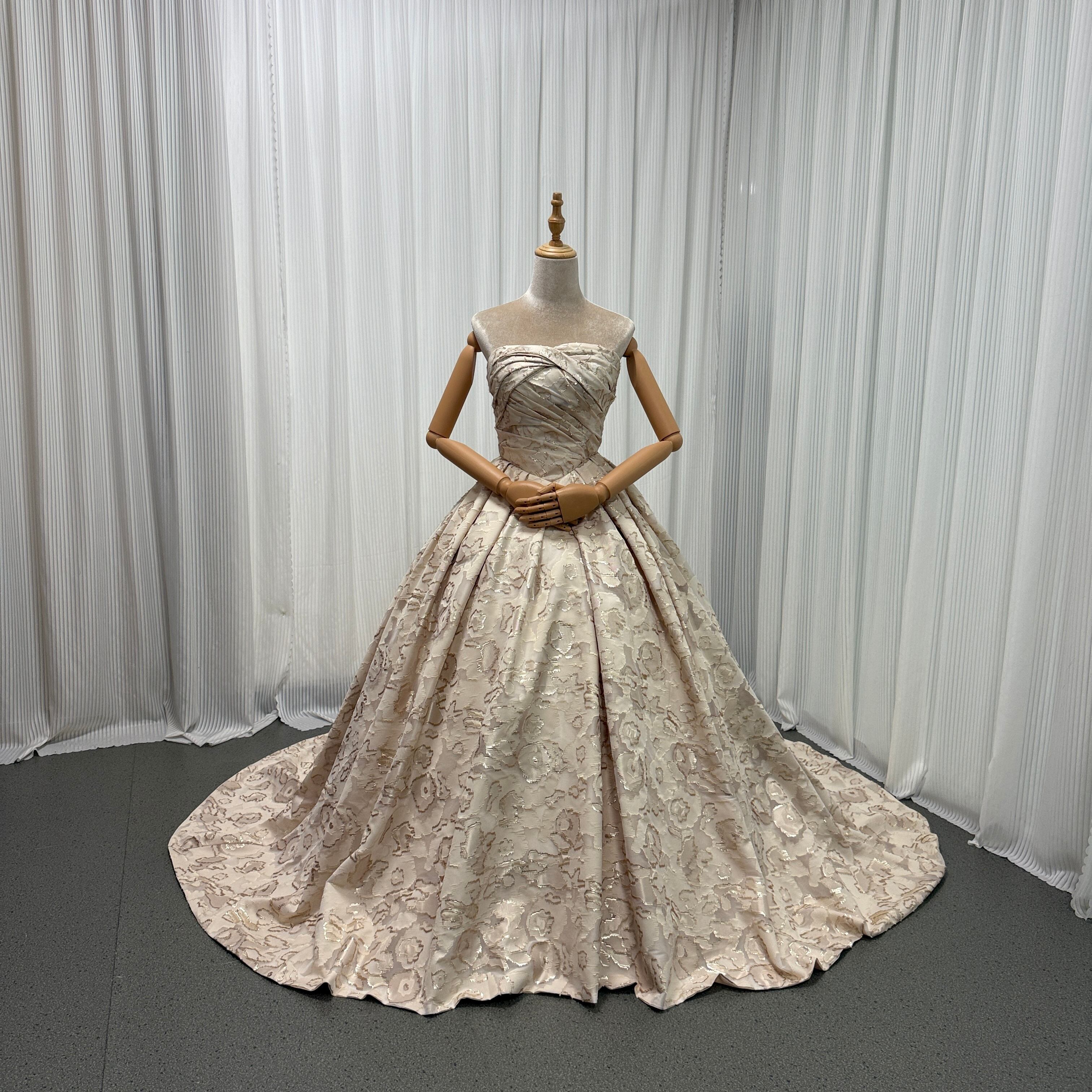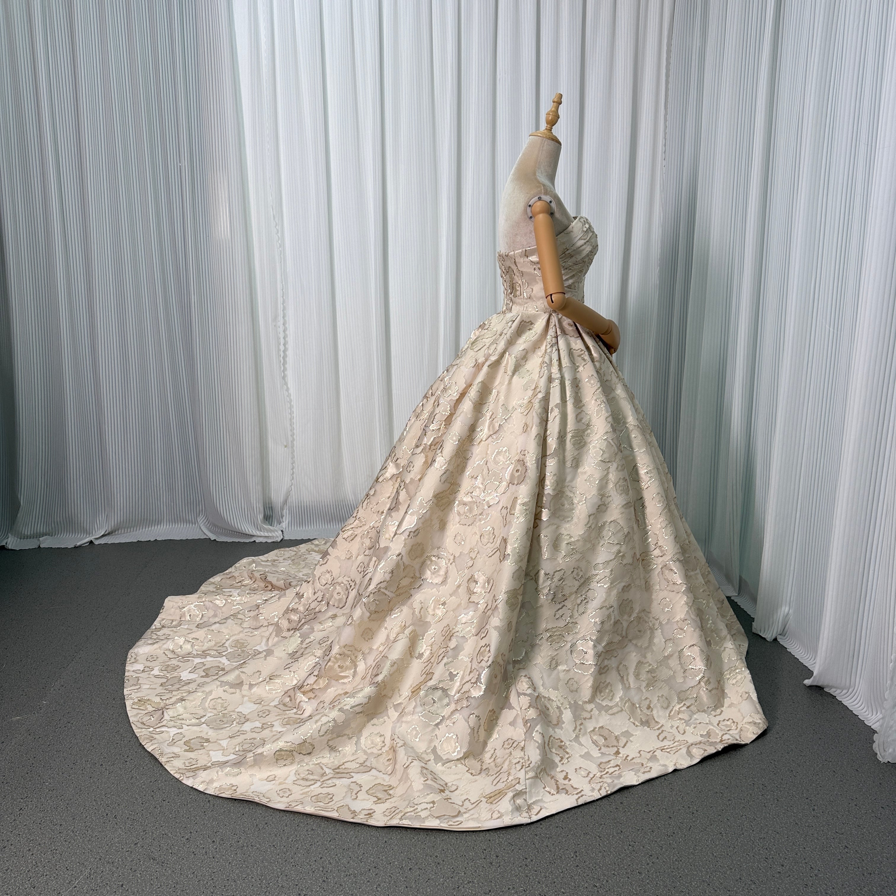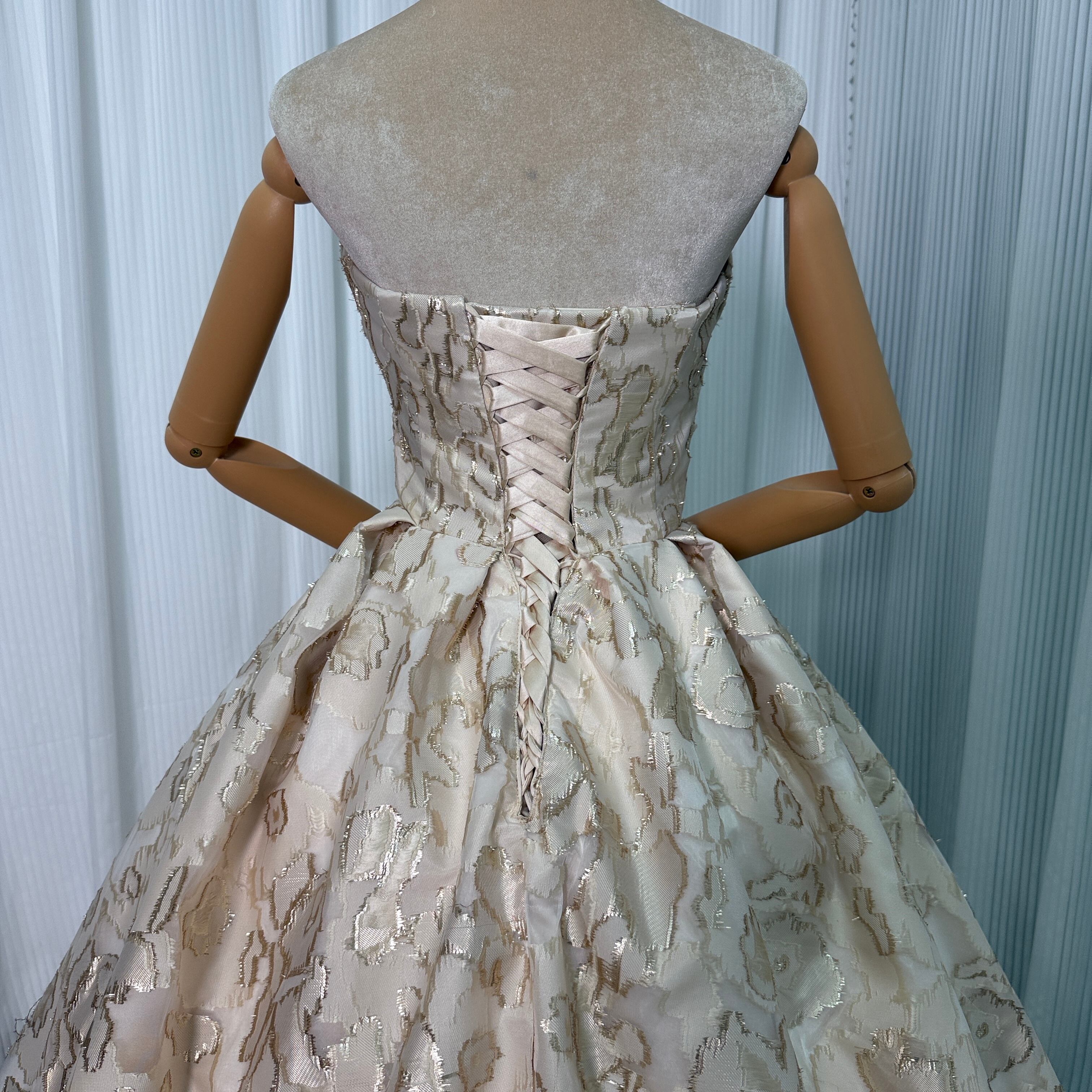 カラードレス ジャガード生地 ビスチェドレス 編み上げ 薄シャンパン色 結婚式 エレガント フランス風
