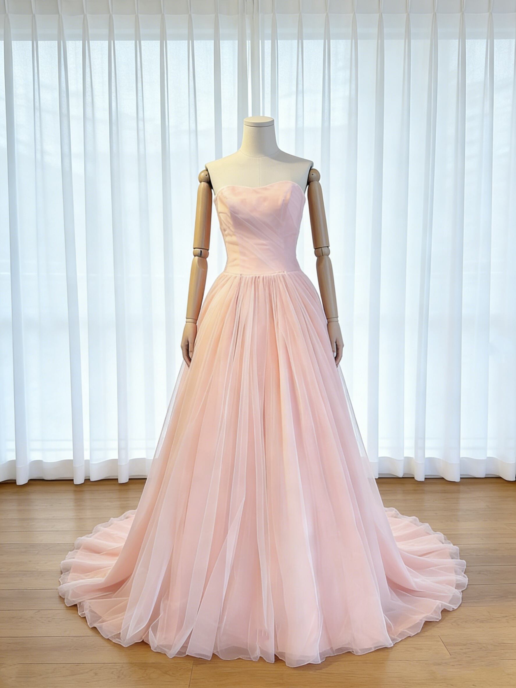 カラードレス ピンク チュールスカート ビスチェドレス ハンドドレープ 前撮り Aライン ミニマリズム