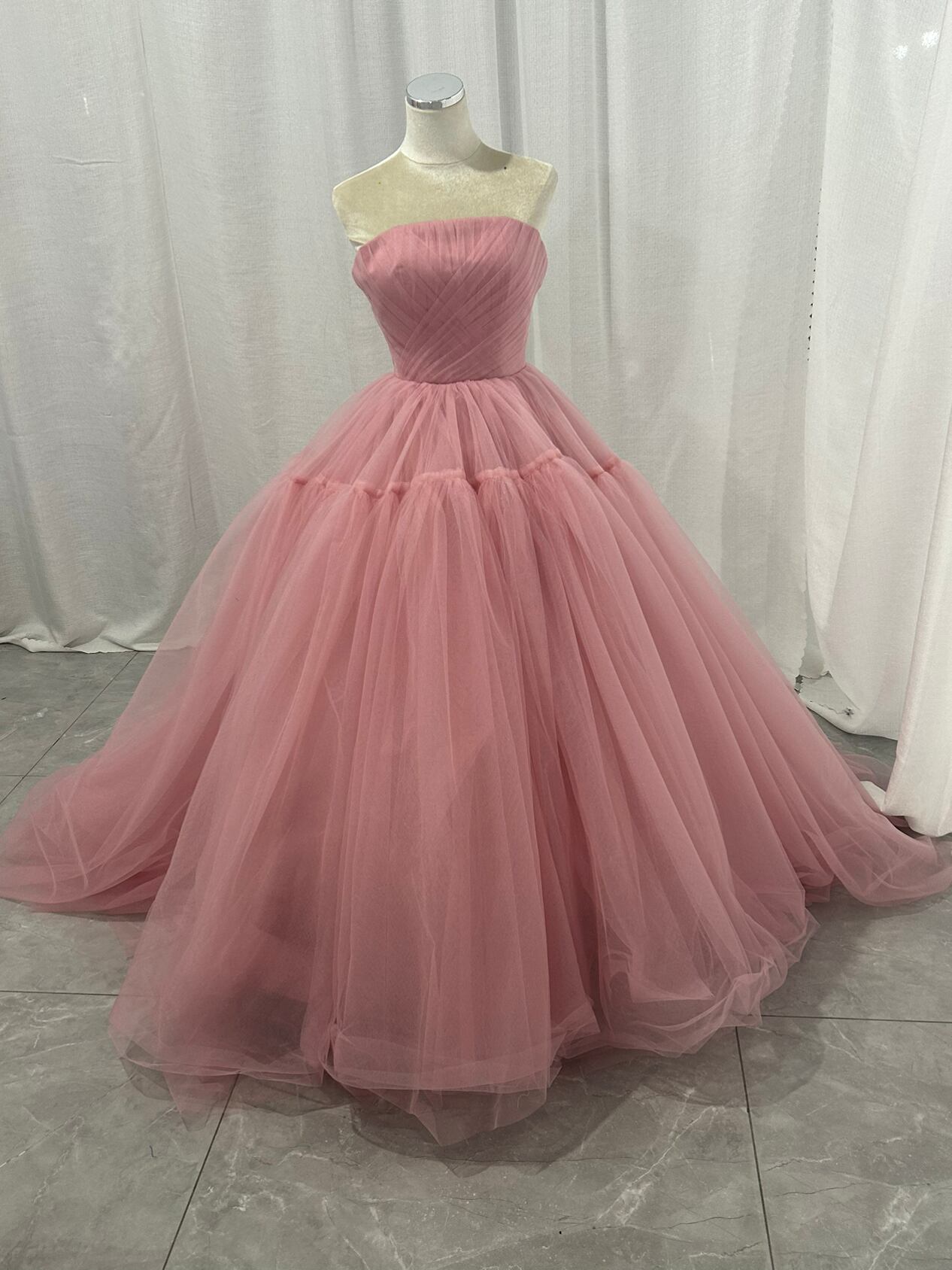 カラードレス ベアトップ ピンク ハンドドレープ ふわふわドレス ファスナー 花嫁 結婚式