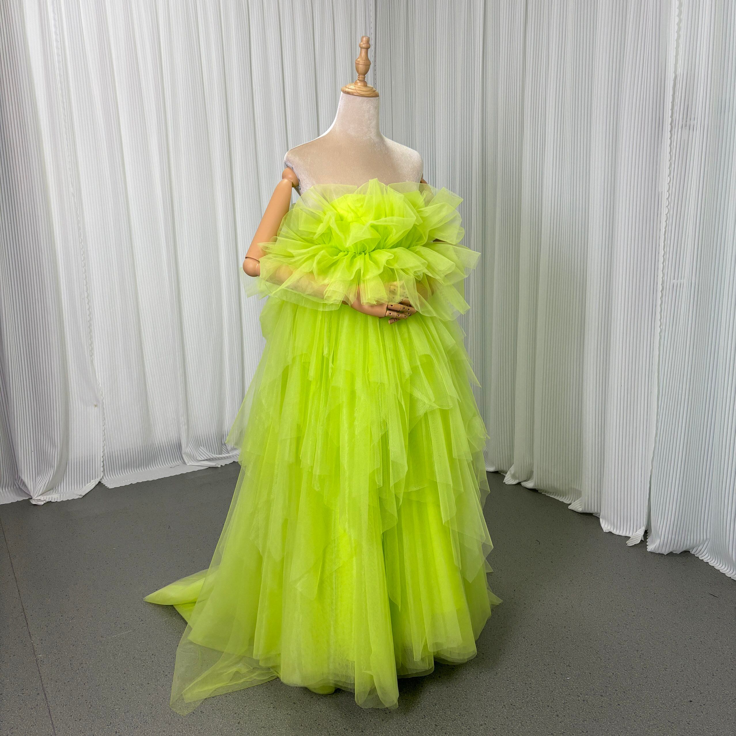 カラードレス ベアトップ グリーン アシンメトリードレス 編み上げ プリンセスライン 前撮り 二次会