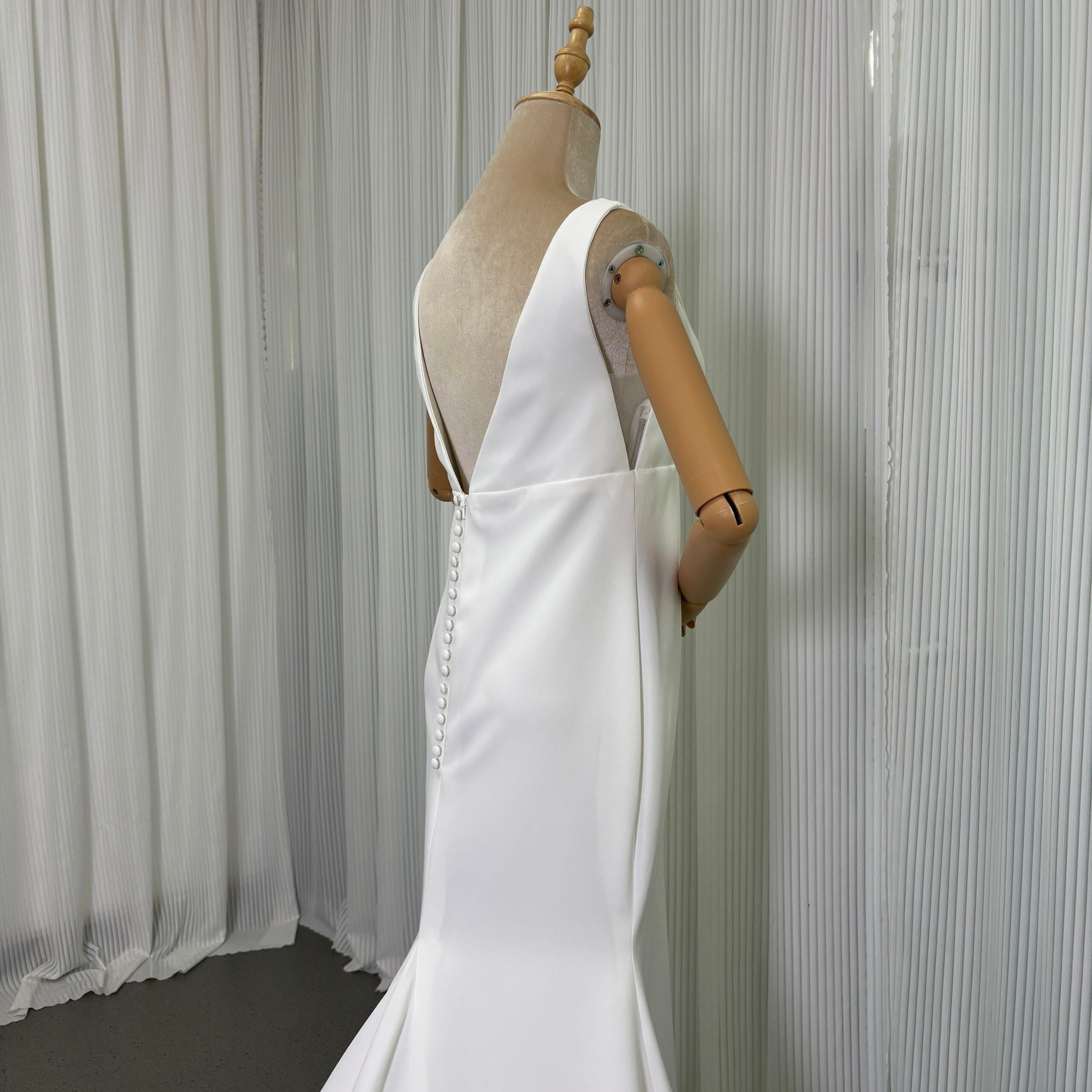 パーティードレス オフホワイト マーメイド バックレス 前撮り ミニマリズム 高品質イタリアサテン 前撮り