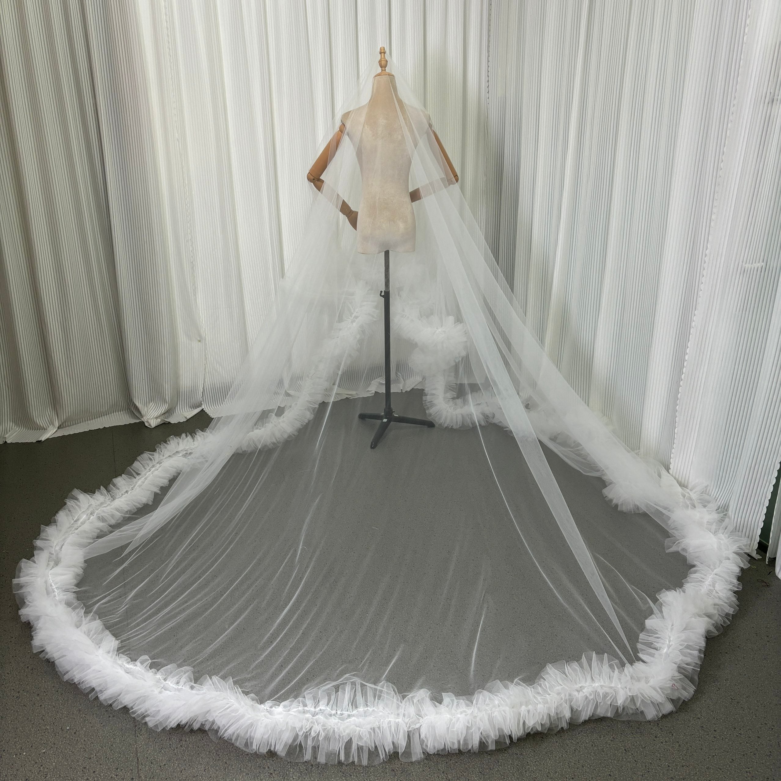 ロングベール ラッフルフリル オフホワイト ソフトチュール 抜群におしゃれ度が際立つ 結婚式 前撮り