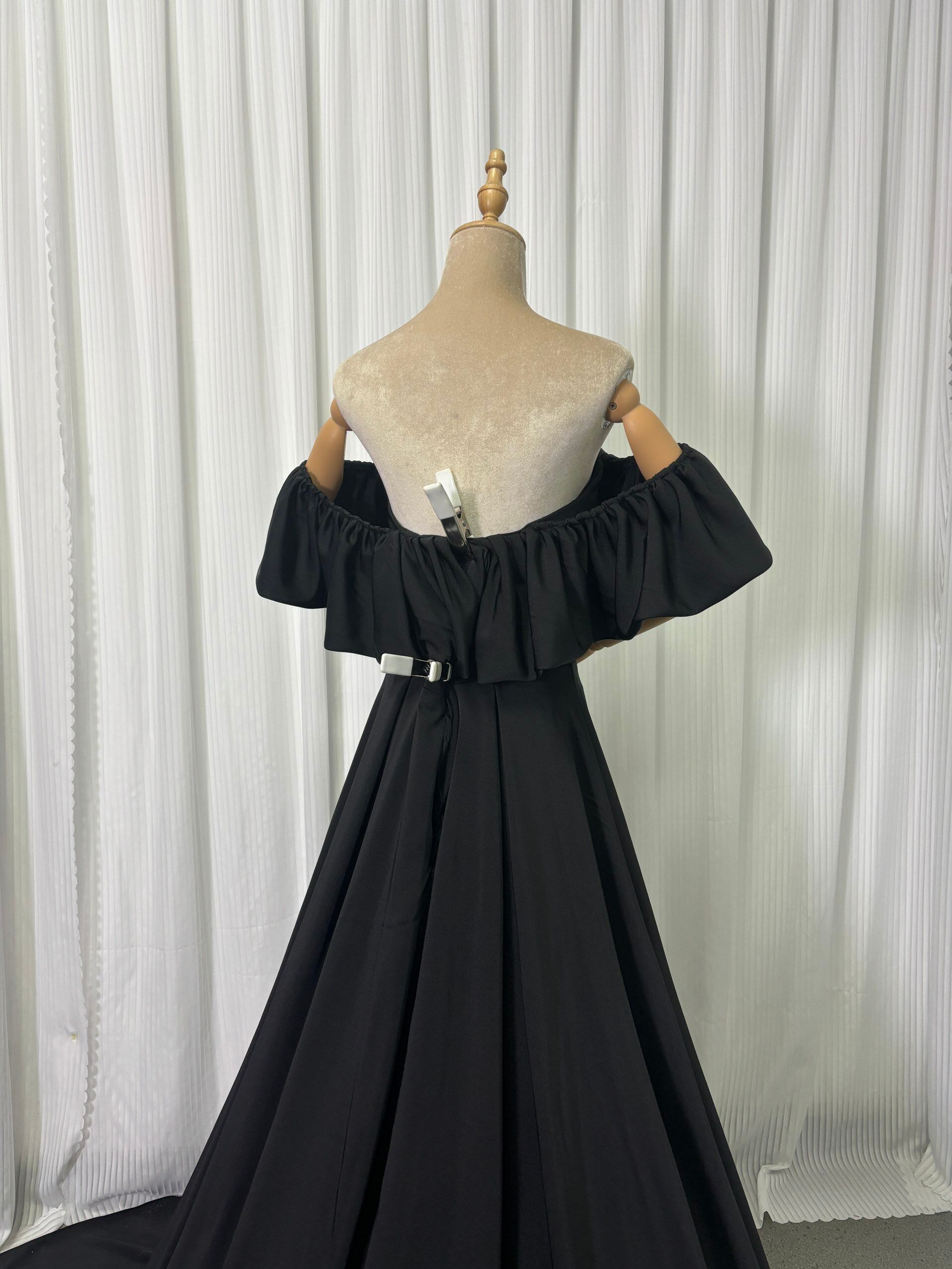 パーティードレス オフショルダー ブラック 高品質イタリアサテン エレガント ブライダル 前撮り