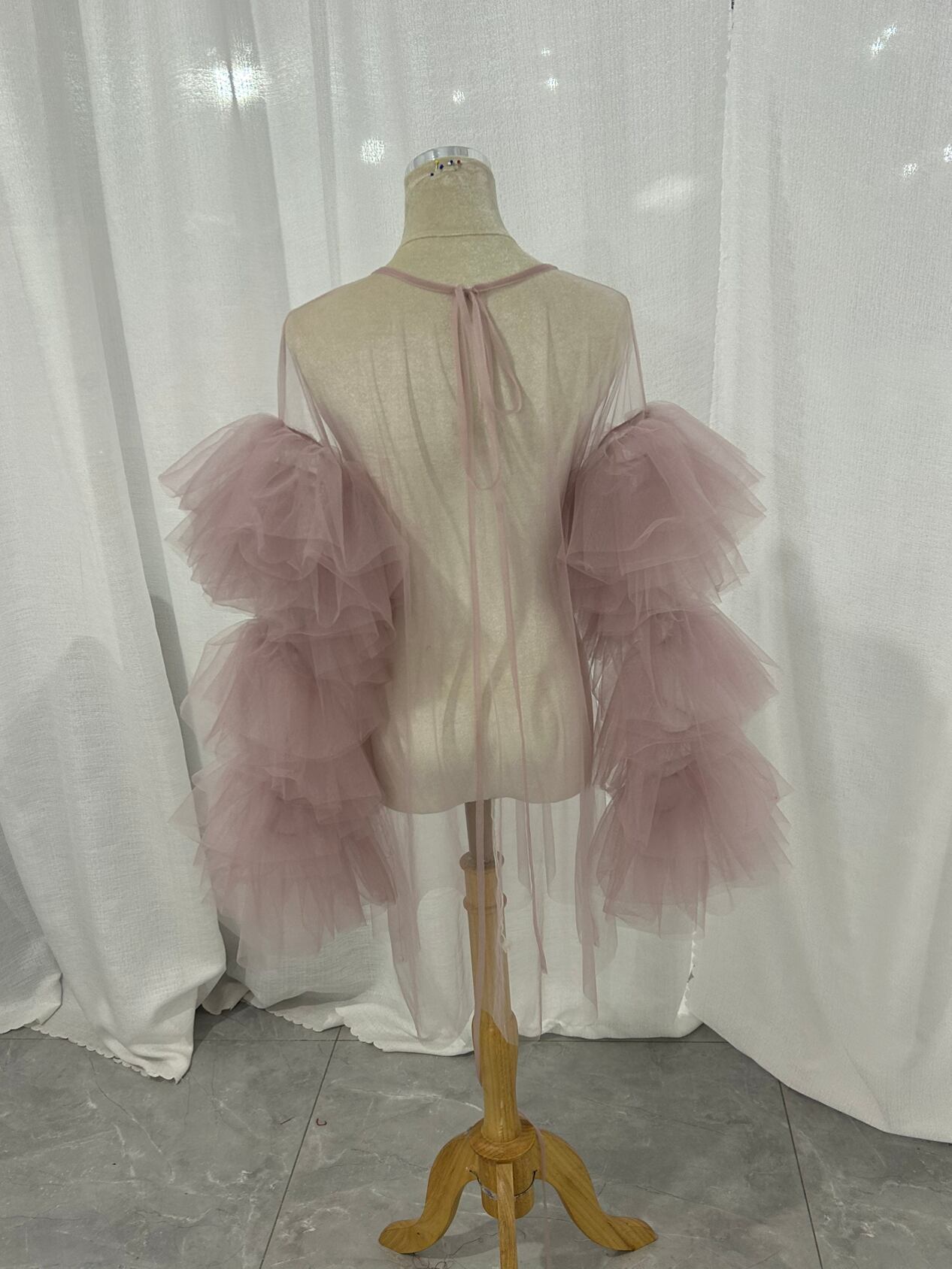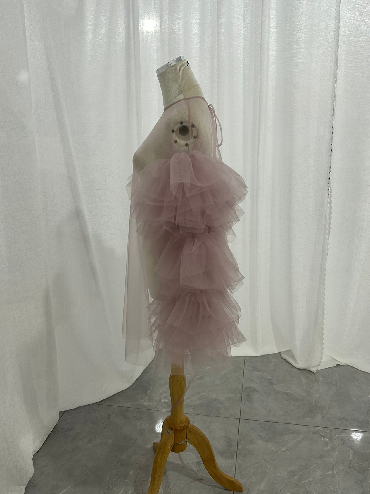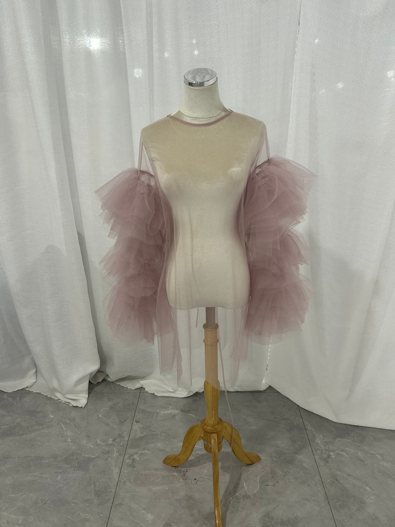 可愛いピンクボレロ ラッフルモチーフのチュールトップス ドレスアレンジ 色オーダー可能