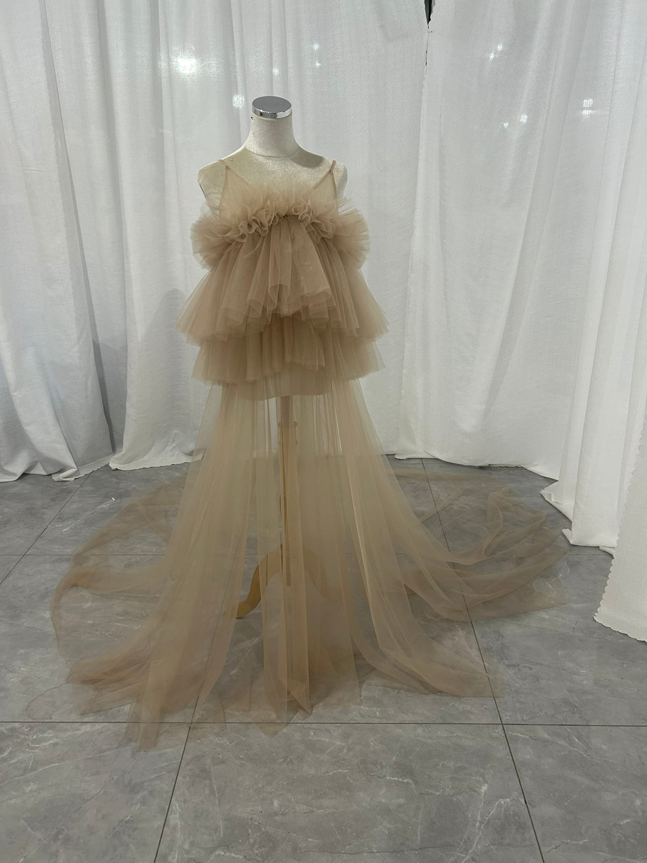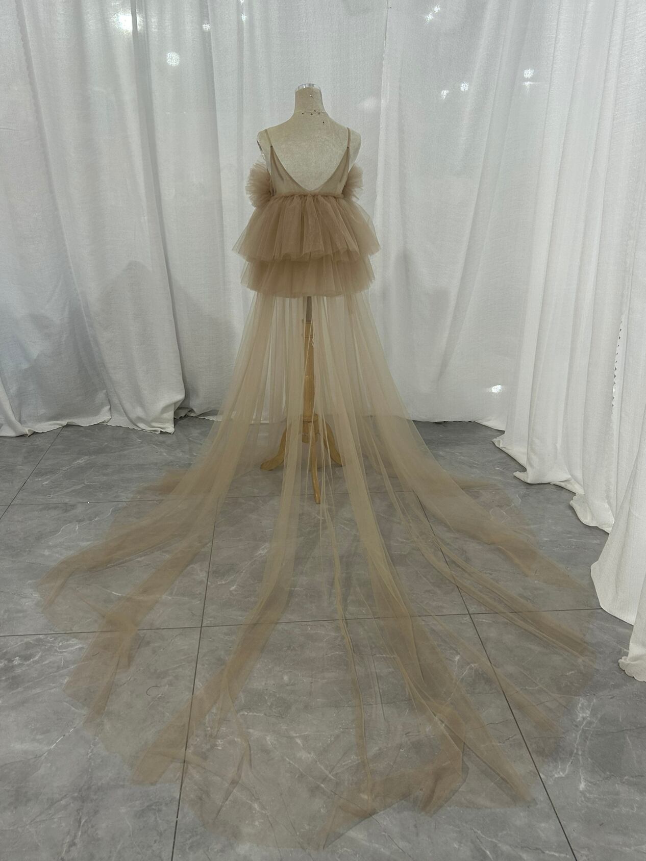 オーバードレス 妊婦 カーキ色 ソフトチュール 前撮り キャミソール ふわふわ