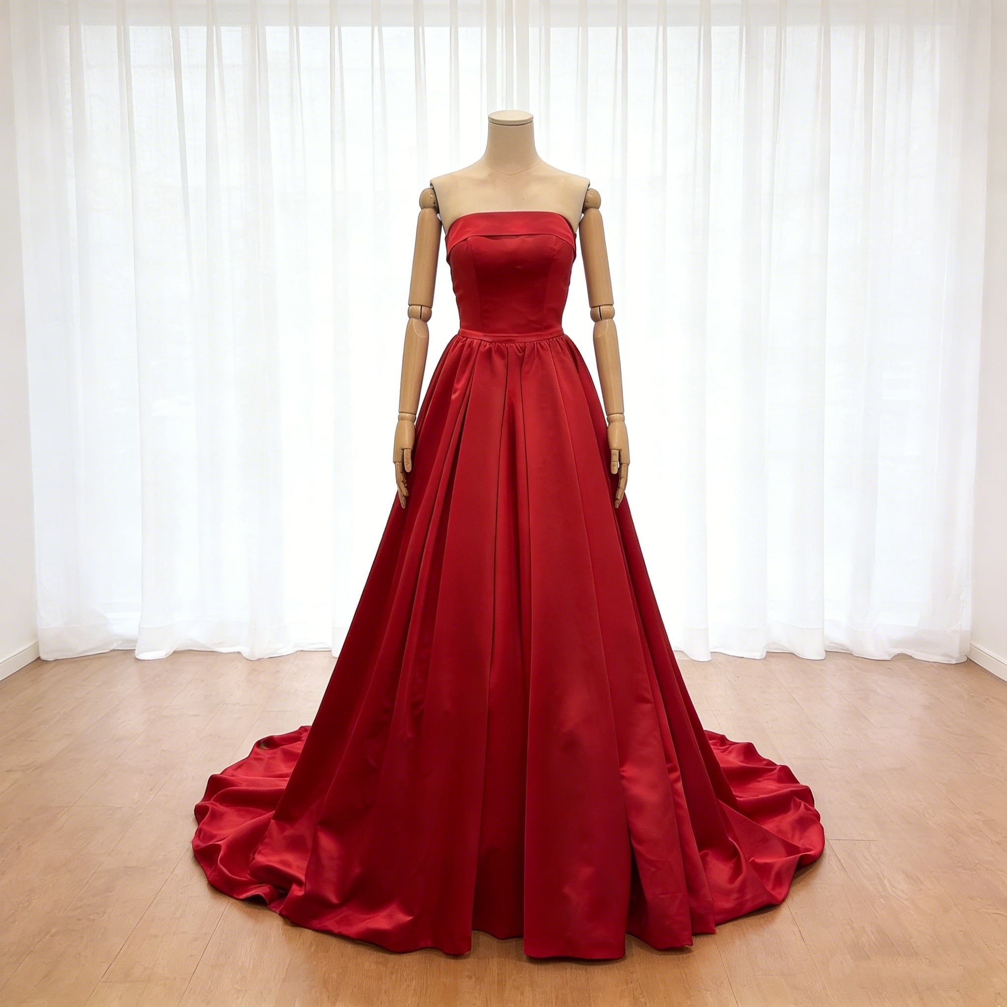 パーティードレス ビスチェドレス 光沢サテン ワインレッド エレガント スレンダーライン 披露宴