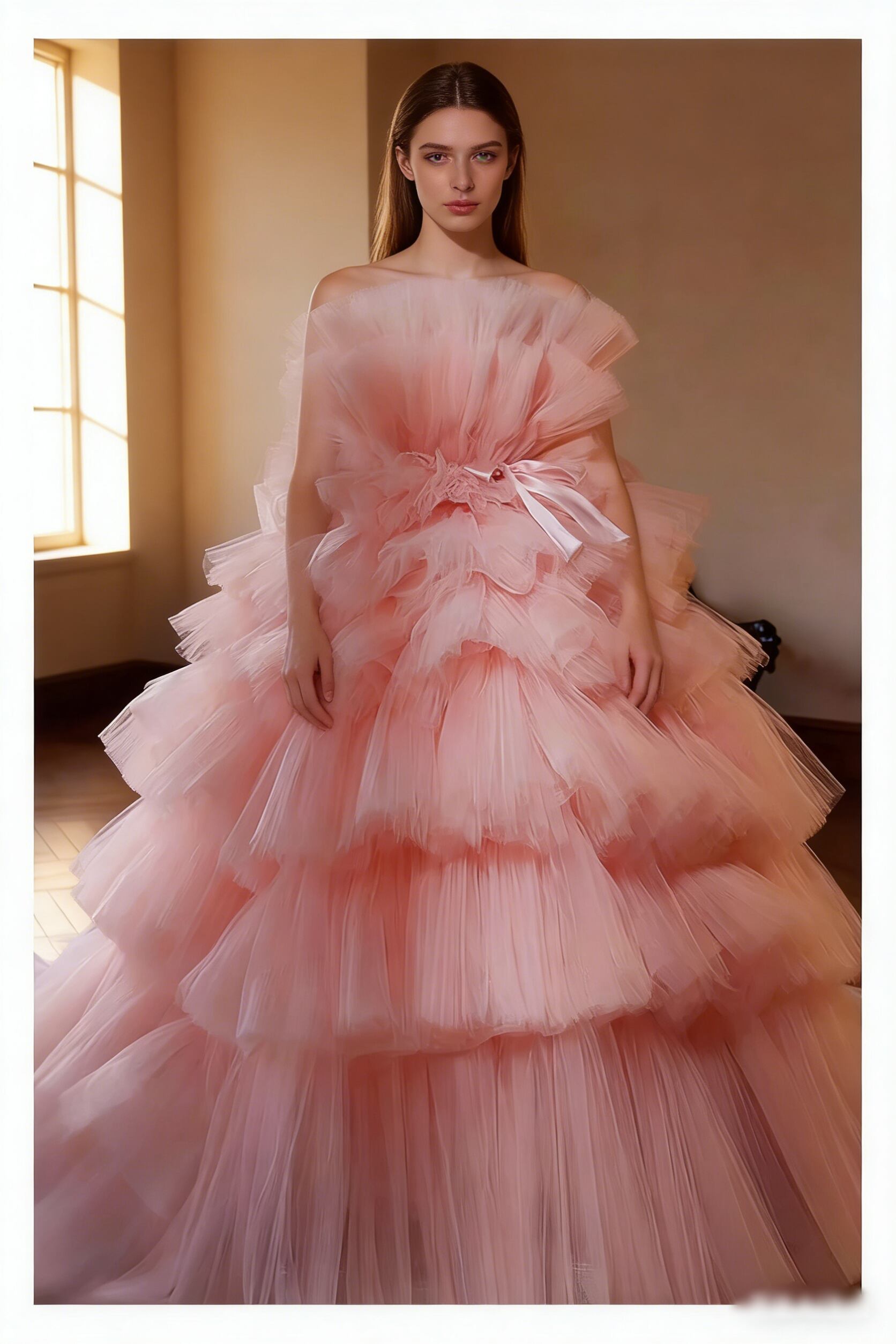 カラードレス ピンク ティアードのドレス プリンセスライン 結婚式 抜群におしゃれ度が際立つ
