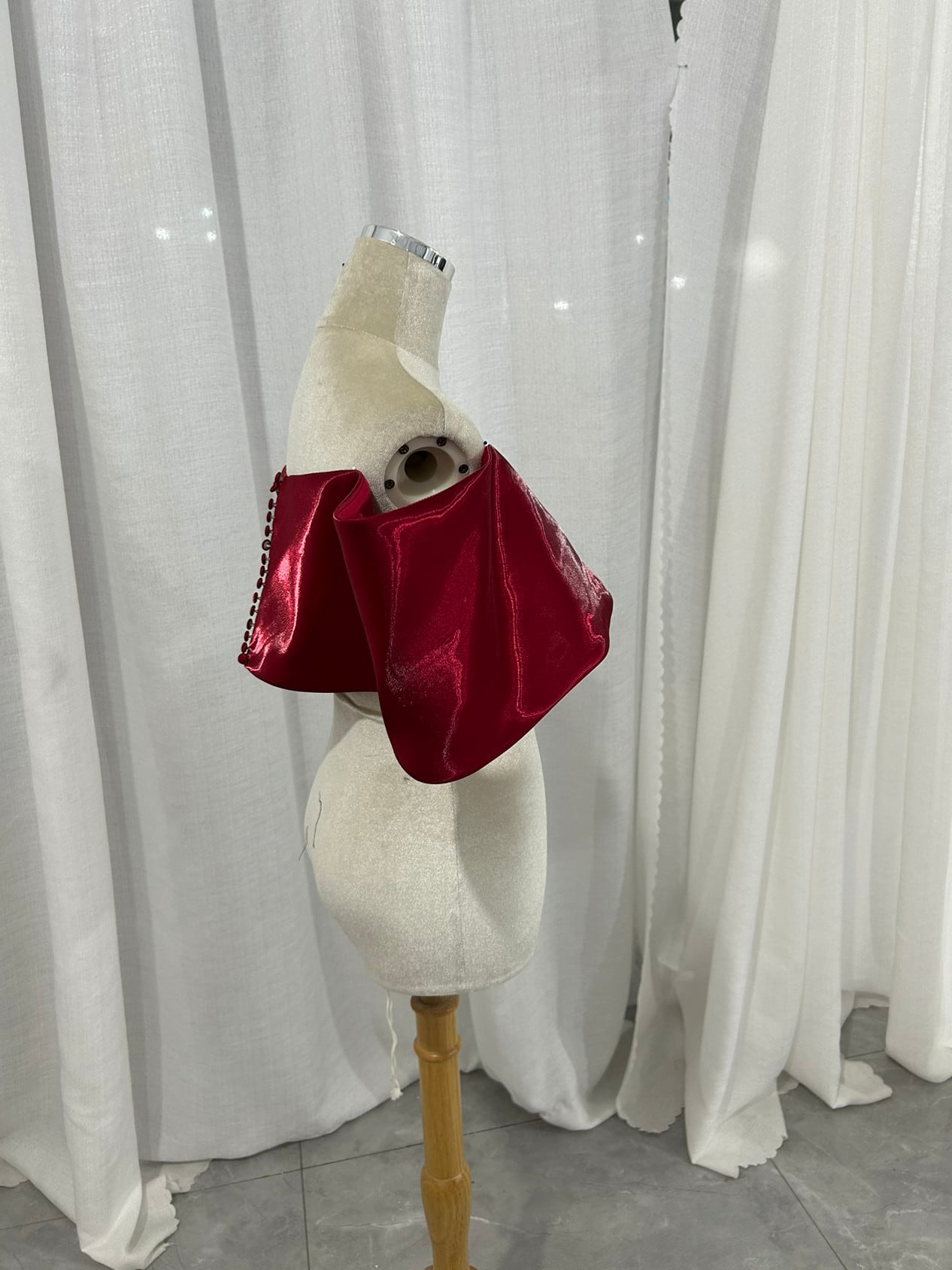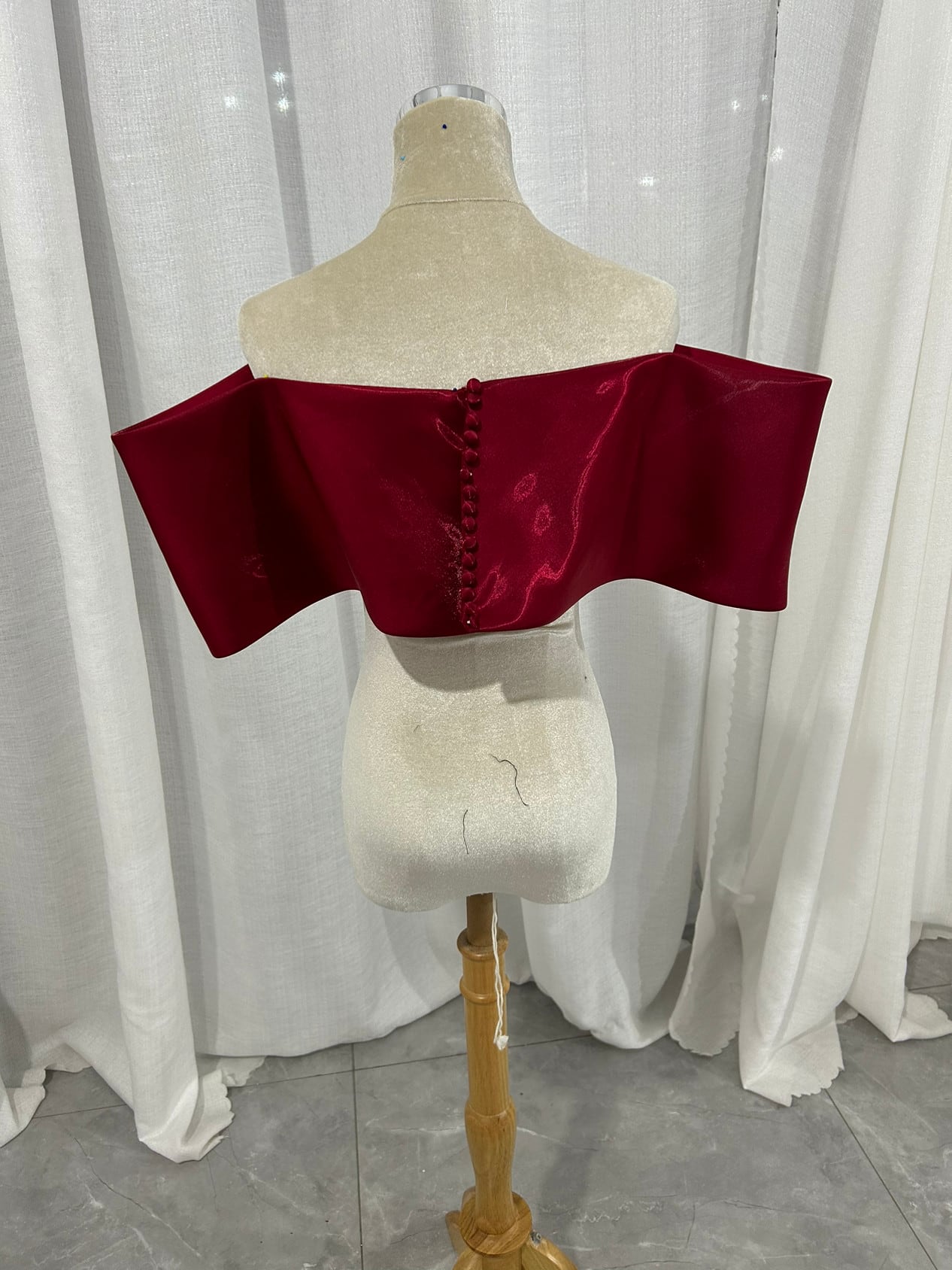 華やか! カラードレス ワインレッド 光沢サテン 光沢サテン 前撮り 花嫁/ウェディングドレス