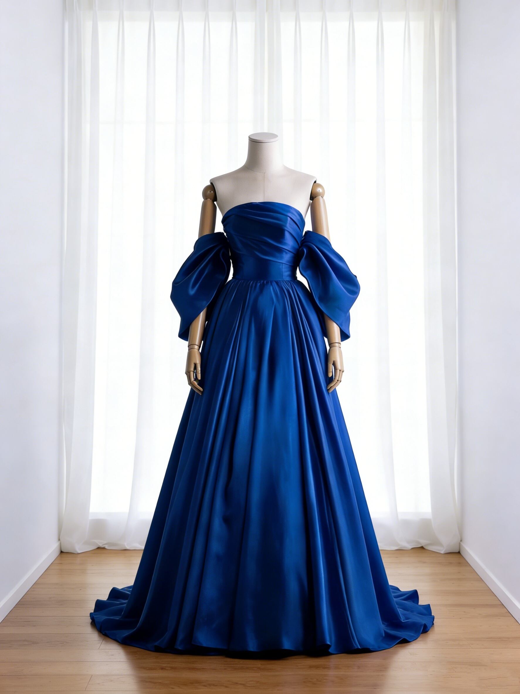 カラードレス ネイビー フリル袖 光沢サテン エレガント アンティークなドレス ブライダル 前撮り