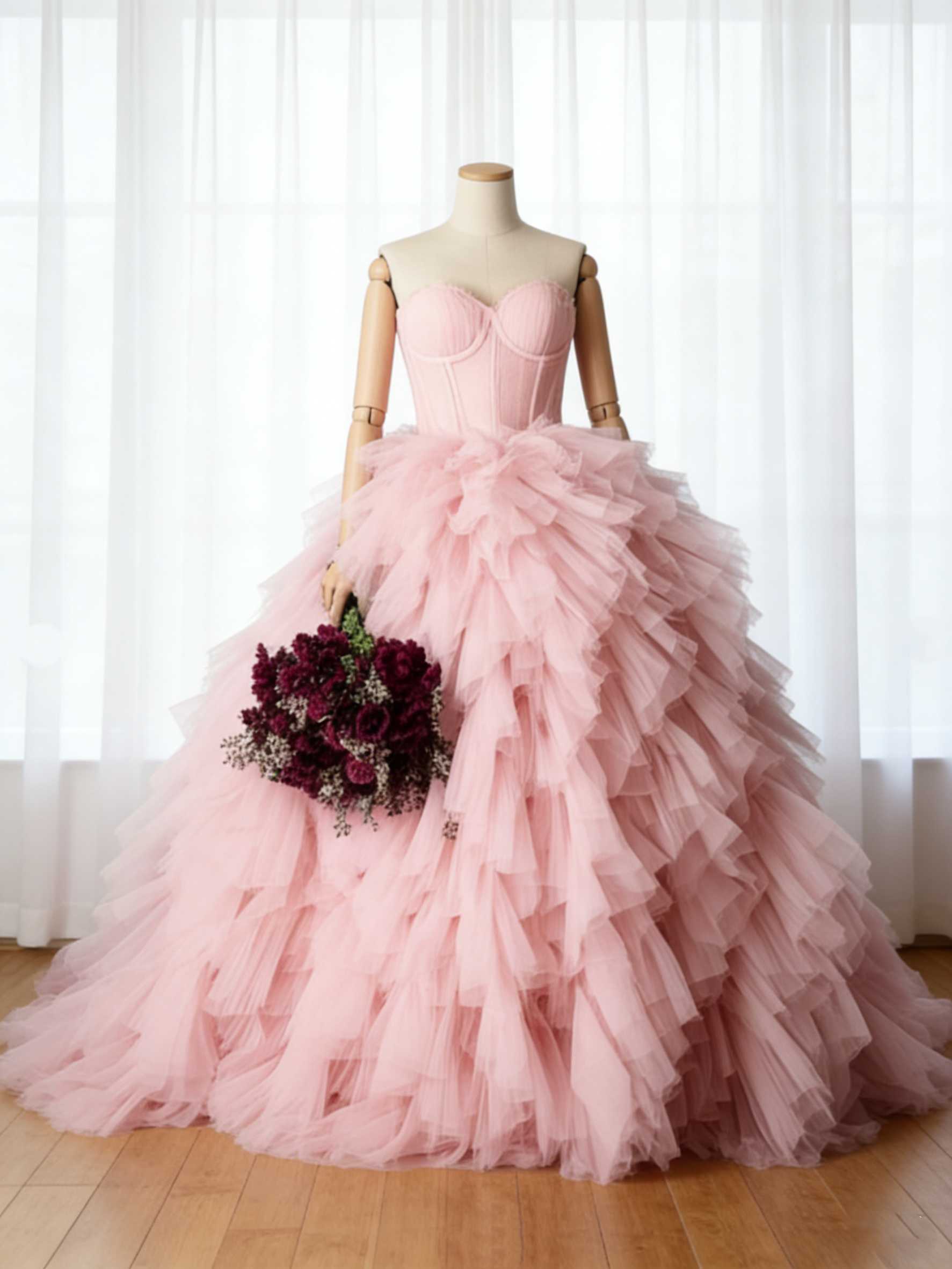 カラードレス ピンク もこもこドレス ビスチェドレス プリンセスライン 結婚式/披露宴
