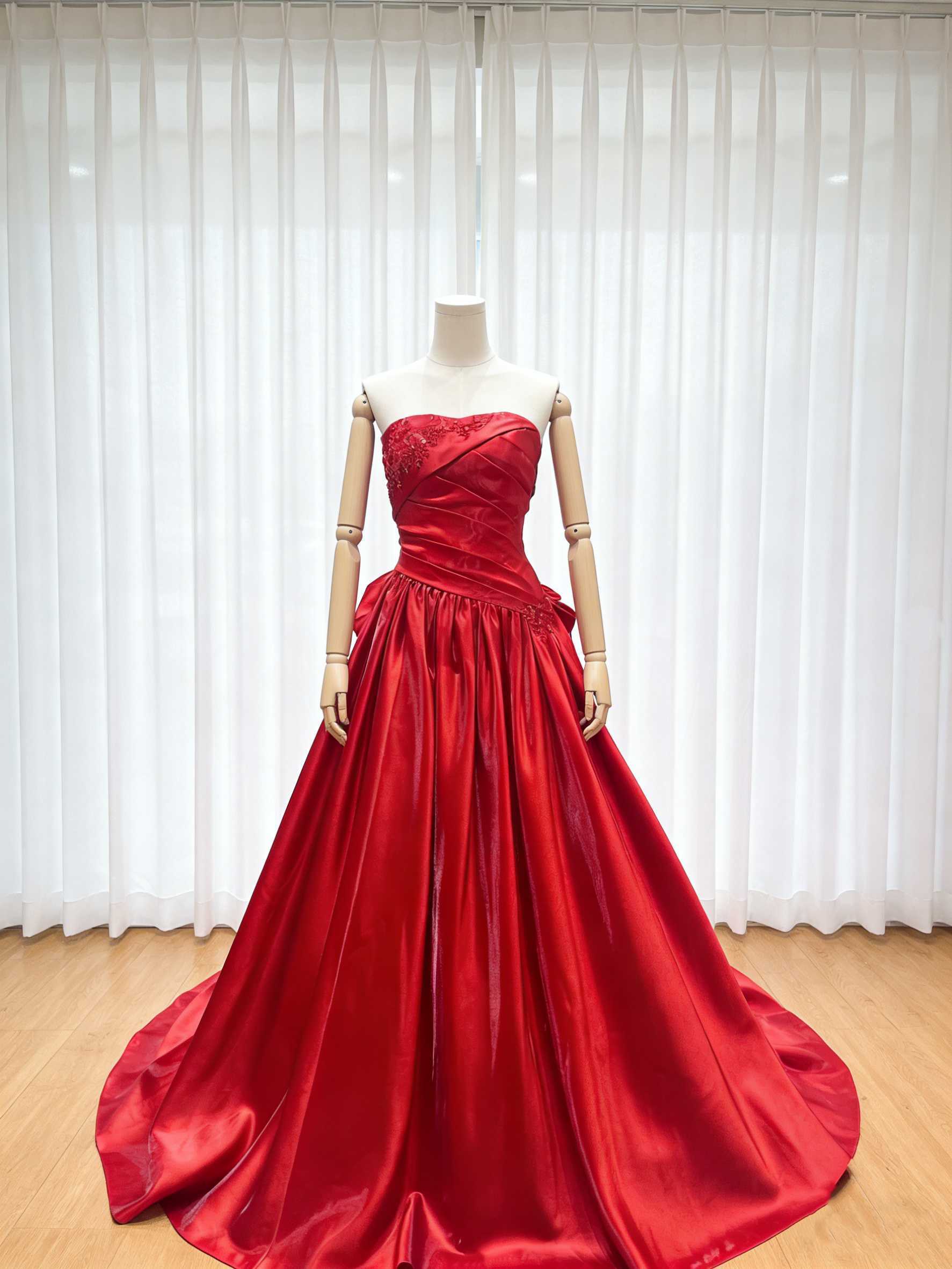 カラードレス ベアトップ ワインレッド ミカドサテン アンティークなドレス オーダーメイド可能 前撮り